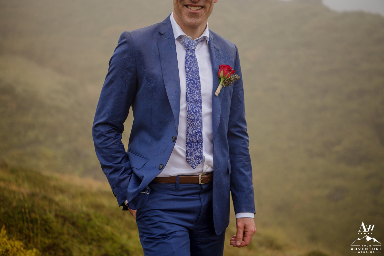 This lovely bride was a fan of stilettos (I hear ya girl, old habits die hard!) for her Iceland wedding shoes, but partnered them with hiking boots as our day was going to be chock-full of hiking!  Mark pulled out of all the GQ stops and went for another local to Australia designer with having made a custom Calibre blue suit with dapper brown shoes.  Oh la la the excitement to see them together was mounting!!  We could not wait to start their adventurous Iceland elopement!