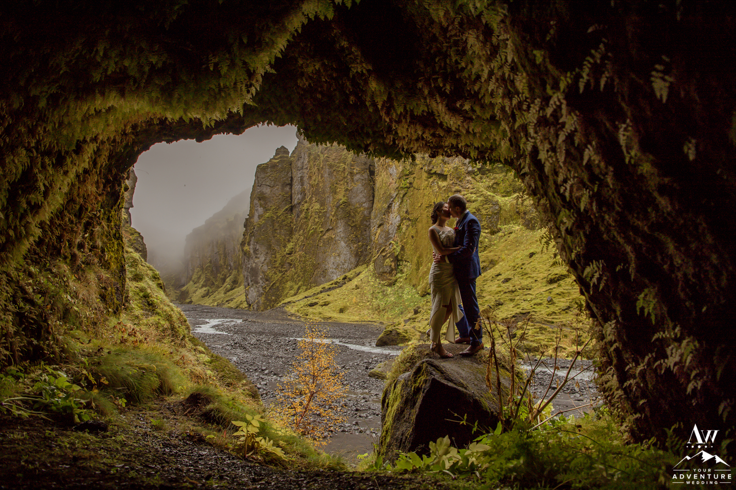A quick drive led to another amazing hike for Biheng and Mark… This time it was to the inside of a stunning canyon and a amazing natural cave.  These two enjoyed exploring both as they had their Iceland wedding portraits taken.