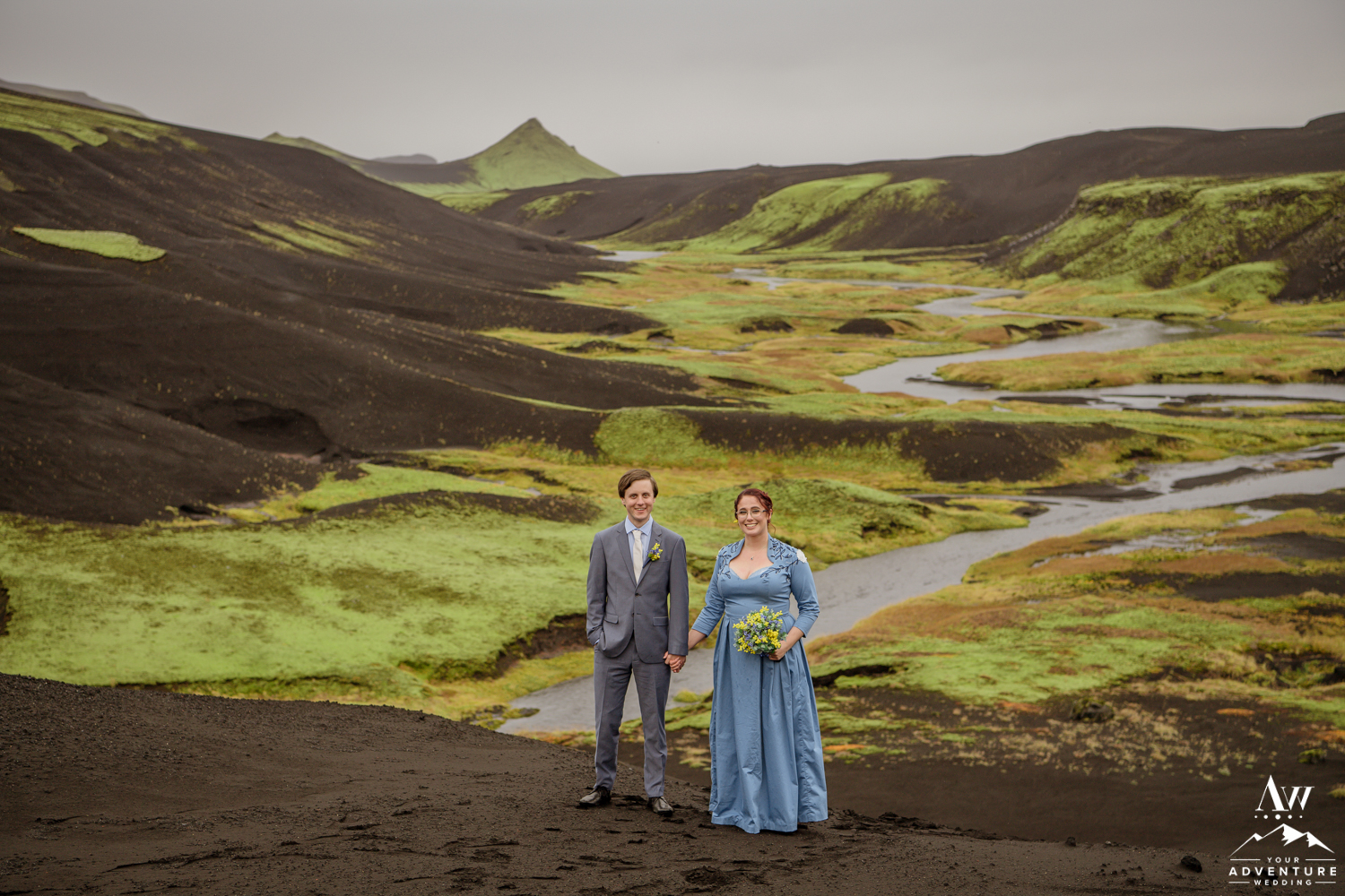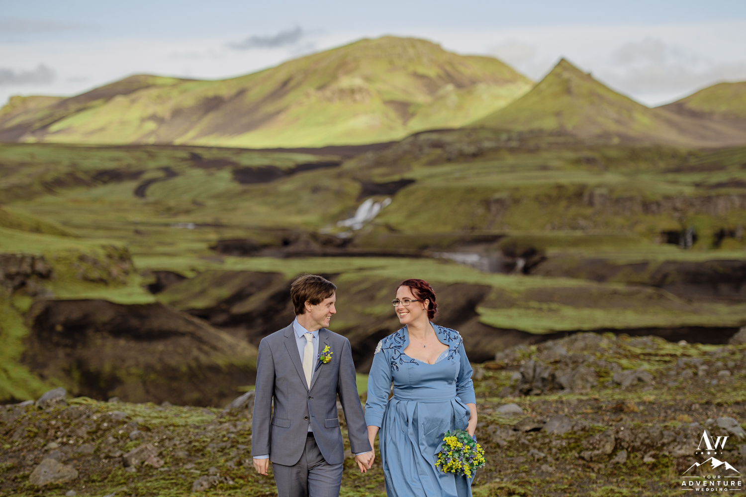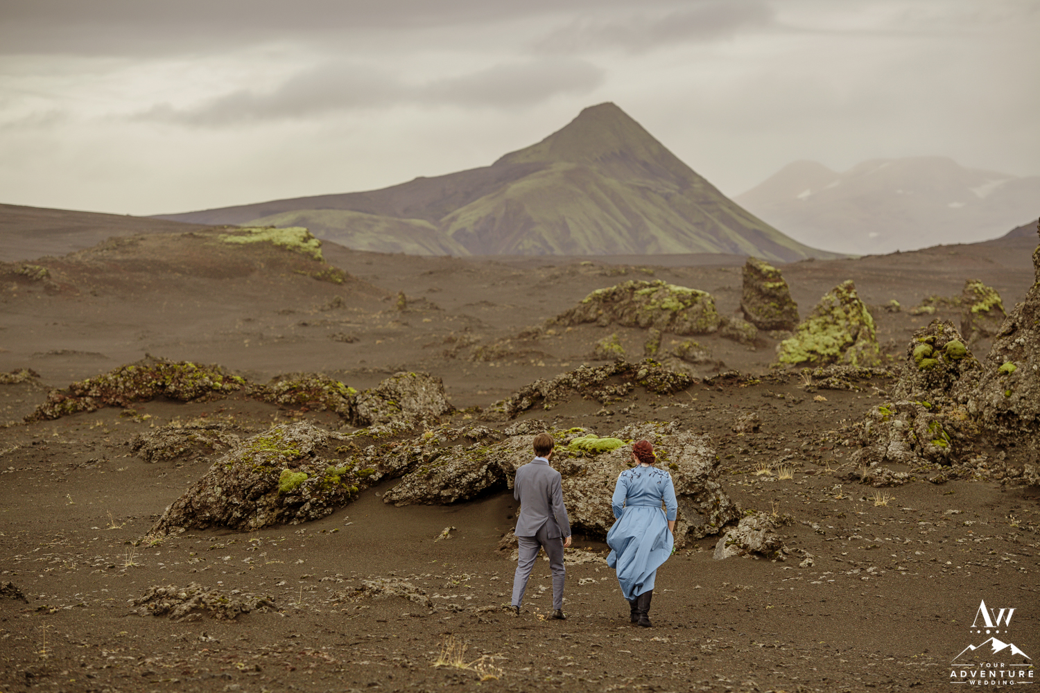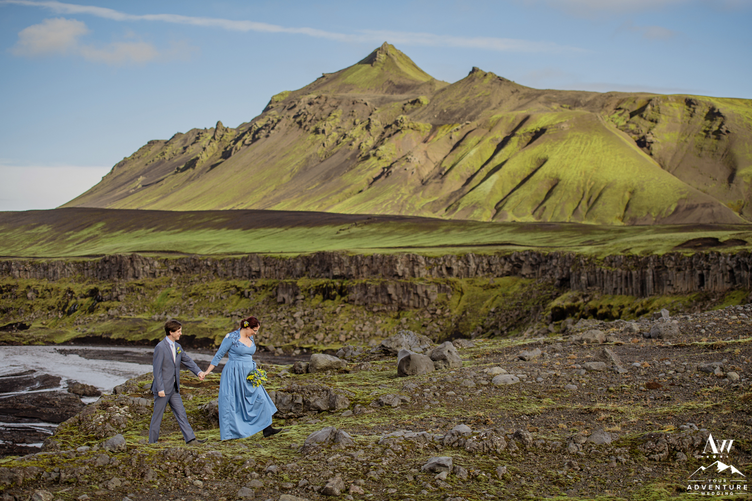It was officially time to head into the formal Icelandic Highlands for a serious adventure wedding day! We never ever look at the weather on the day because we know it will likely change. These two were totally prepared for the skies to let loose but got lucky for the first half of the day. Our first Iceland wedding location brought an endless amount of blue skies and hiking. It was a location that our Iceland Wedding Planner team had only scouted up to this point and Katy and David were glad to be the FIRST photographed there.