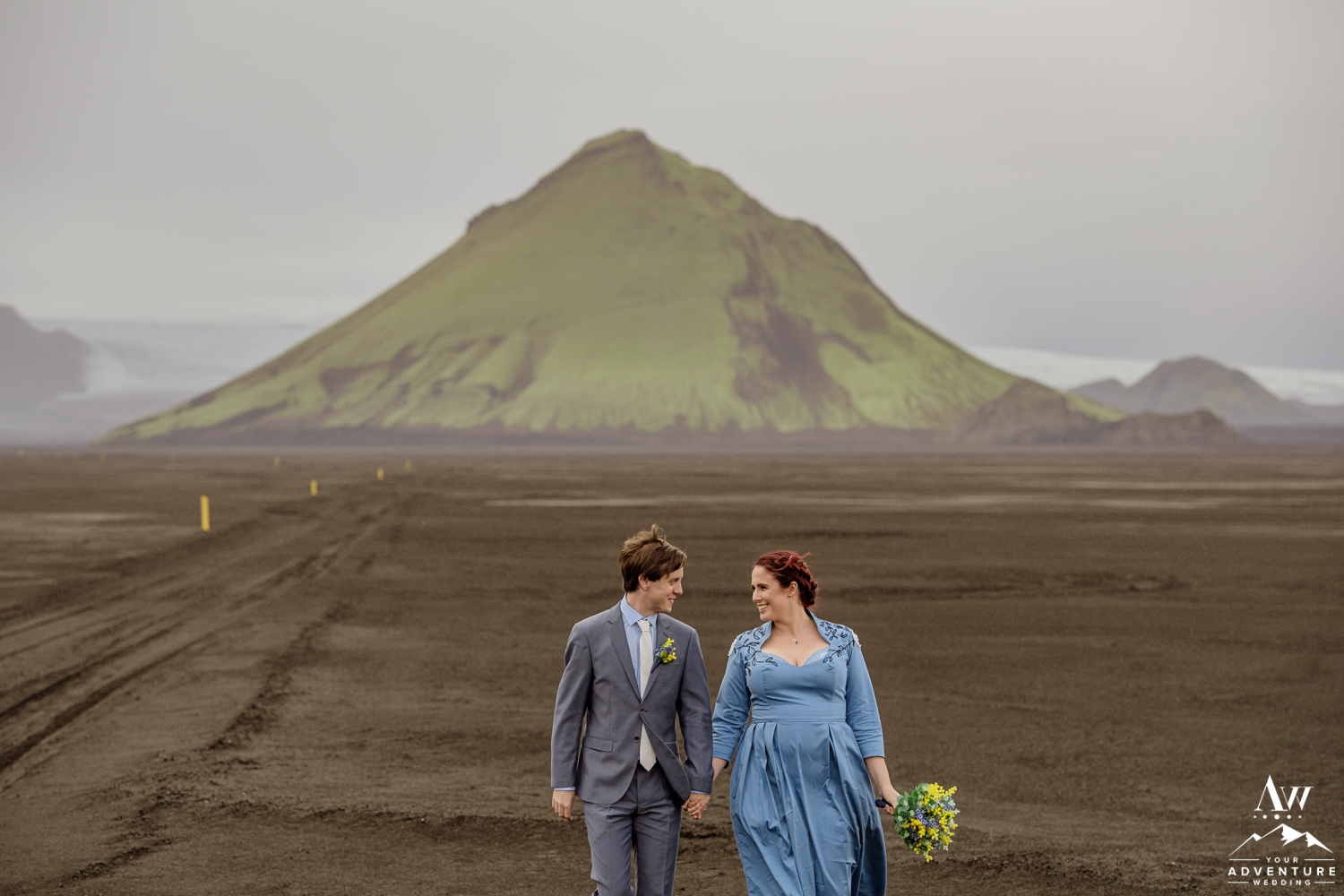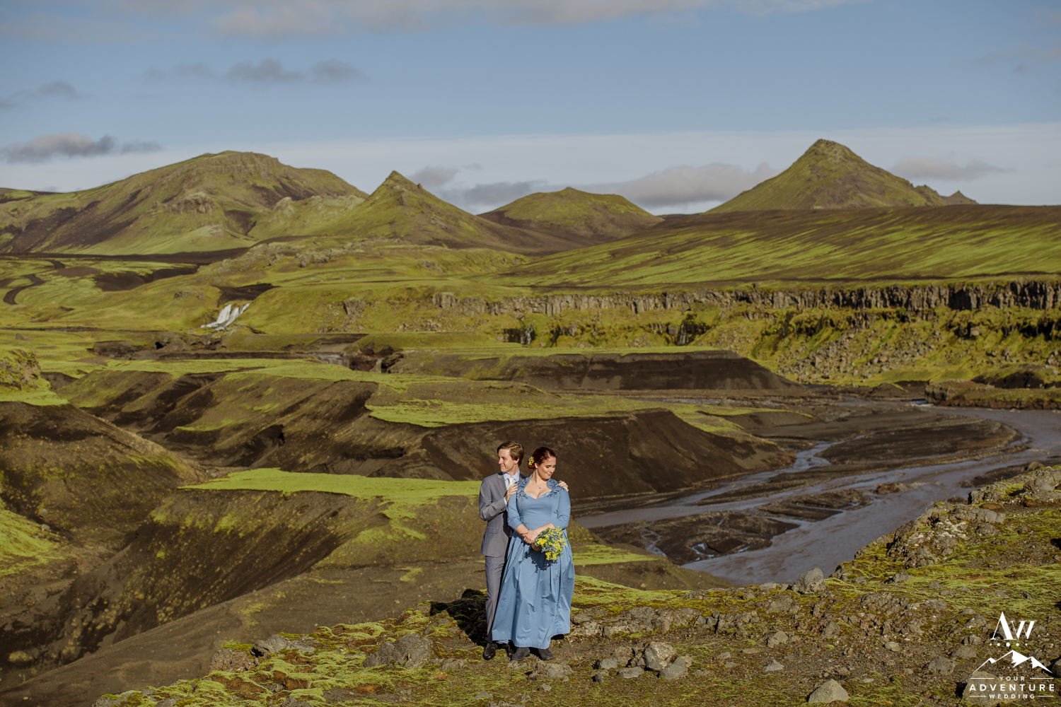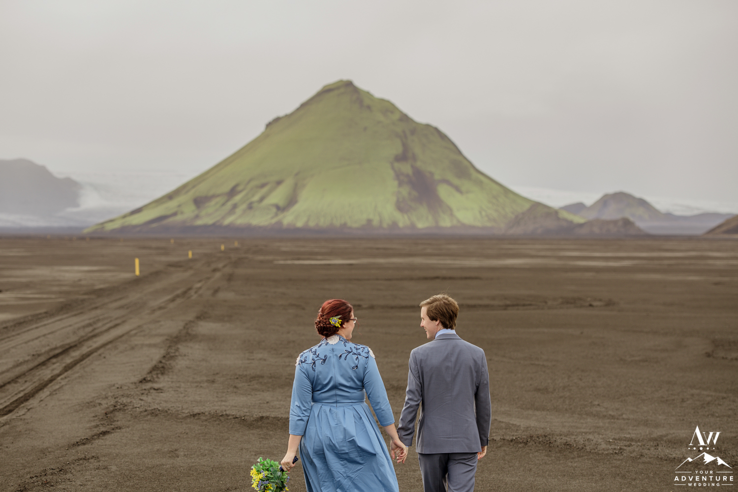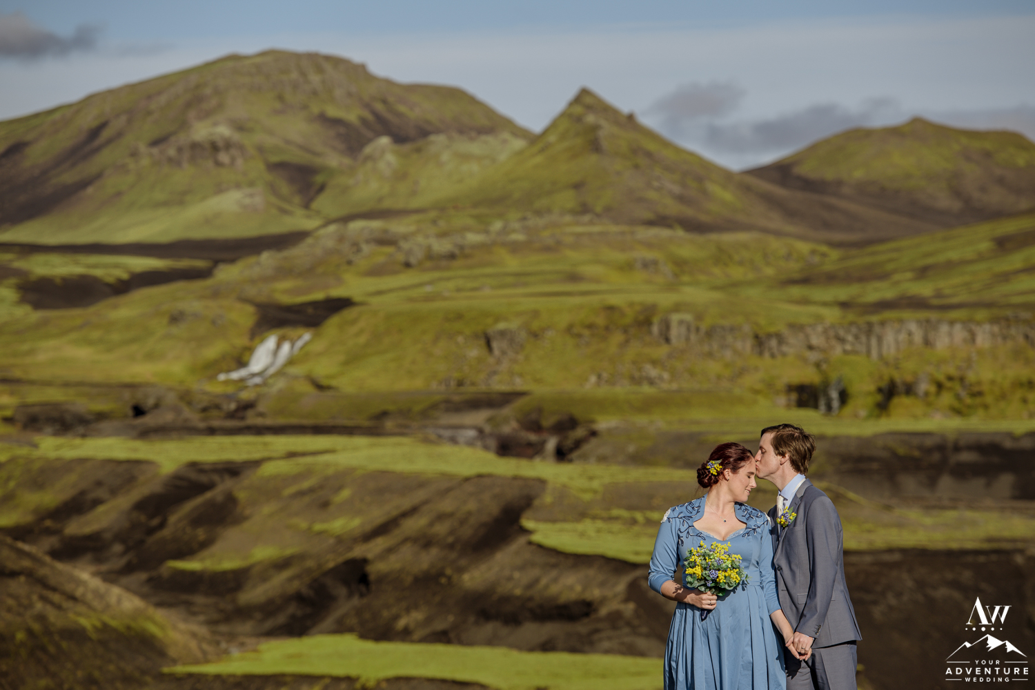 It was officially time to head into the formal Icelandic Highlands for a serious adventure wedding day! We never ever look at the weather on the day because we know it will likely change. These two were totally prepared for the skies to let loose but got lucky for the first half of the day. Our first Iceland wedding location brought an endless amount of blue skies and hiking. It was a location that our Iceland Wedding Planner team had only scouted up to this point and Katy and David were glad to be the FIRST photographed there.