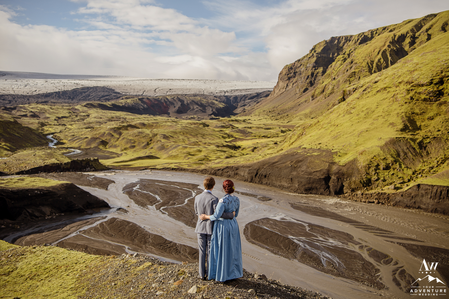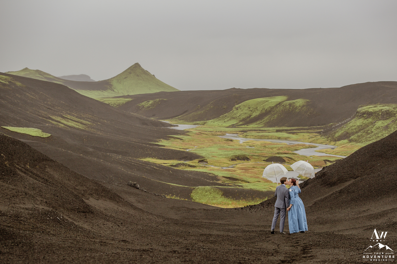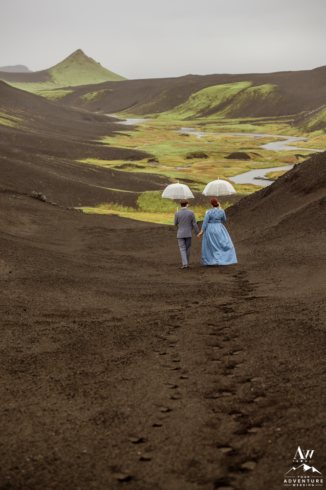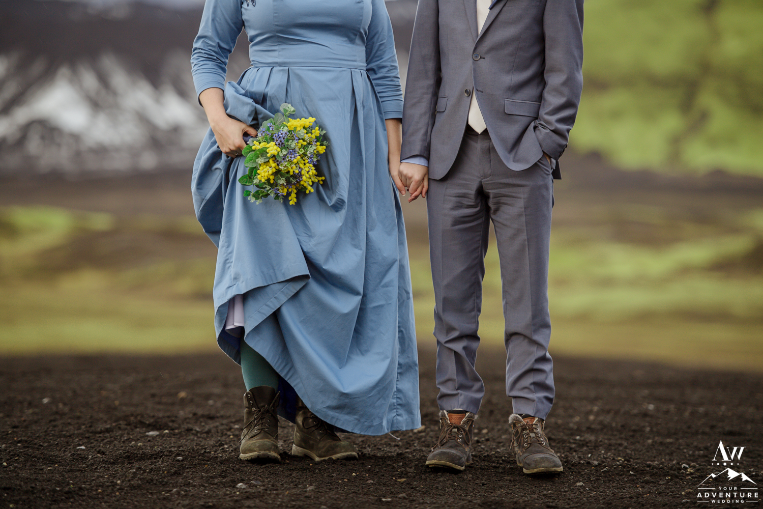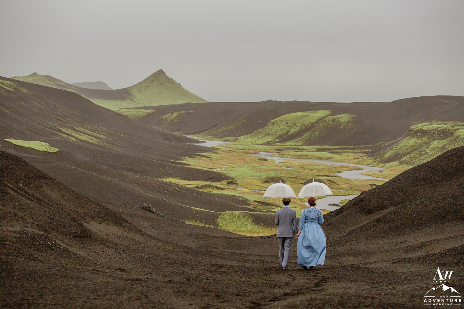 It was officially time to head into the formal Icelandic Highlands for a serious adventure wedding day! We never ever look at the weather on the day because we know it will likely change. These two were totally prepared for the skies to let loose but got lucky for the first half of the day. Our first Iceland wedding location brought an endless amount of blue skies and hiking. It was a location that our Iceland Wedding Planner team had only scouted up to this point and Katy and David were glad to be the FIRST photographed there.