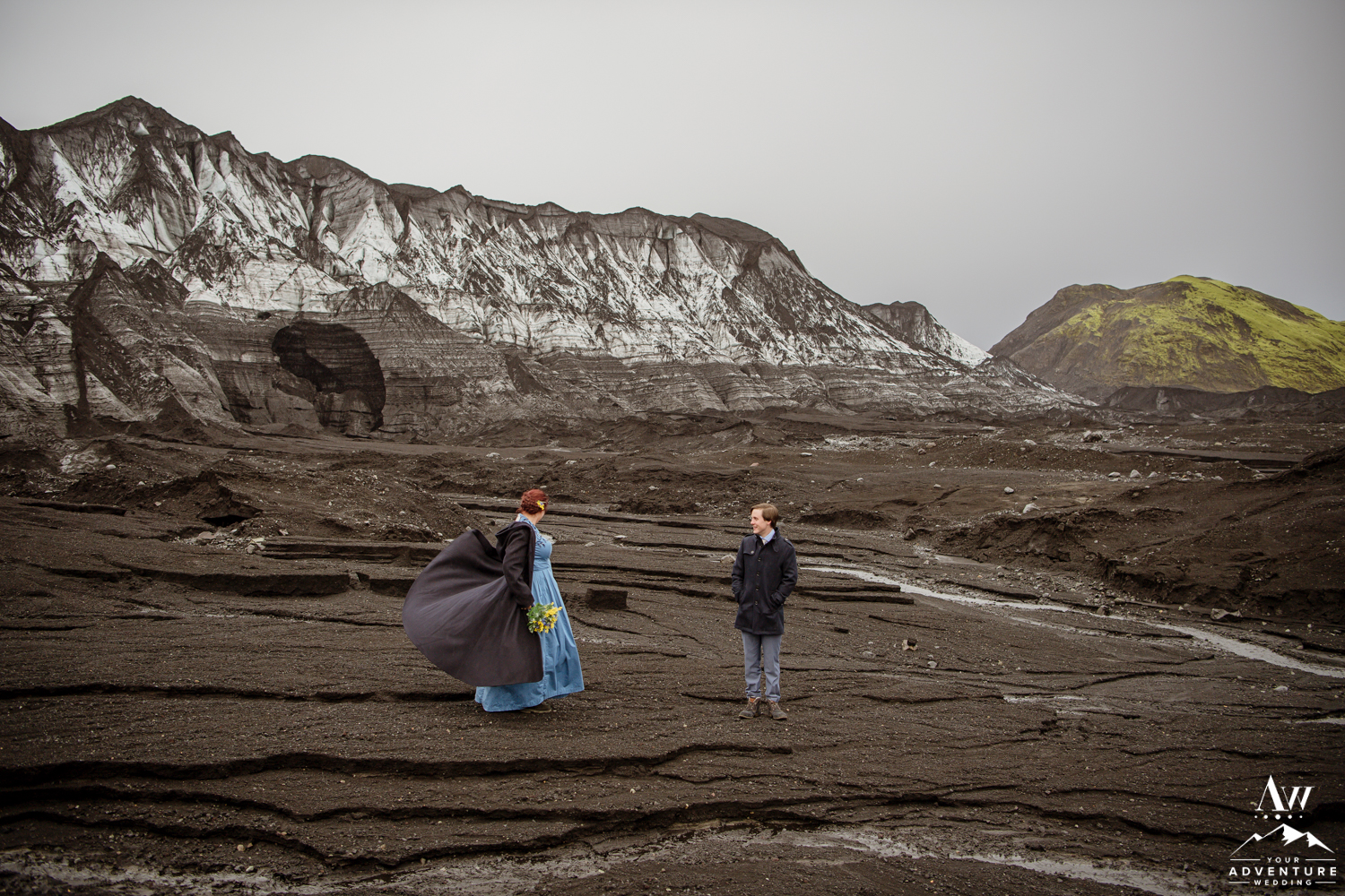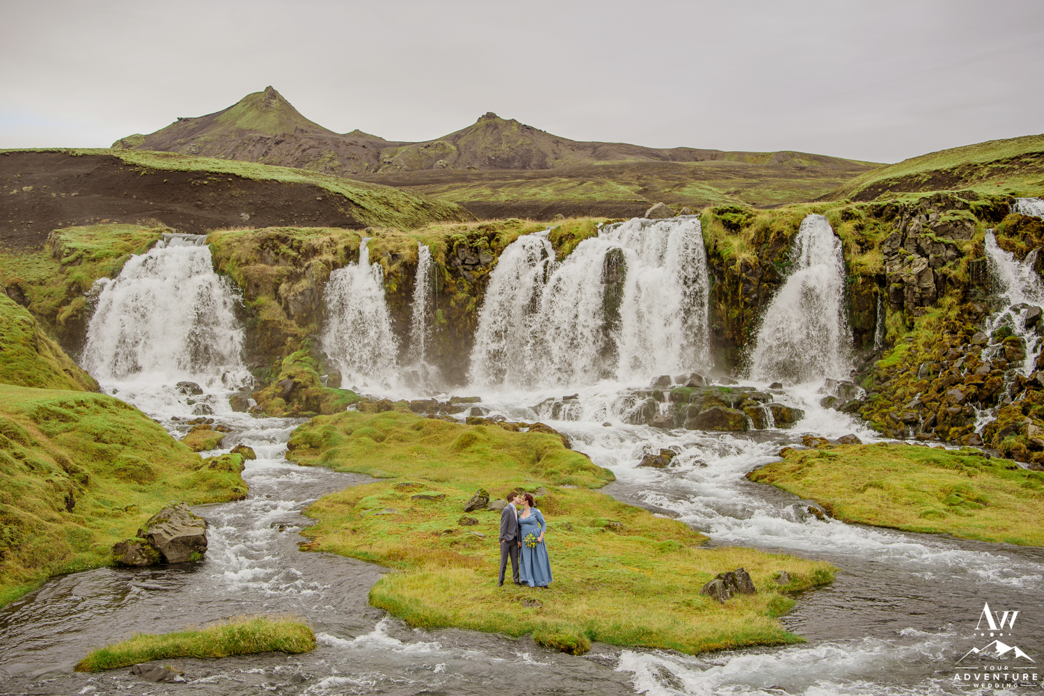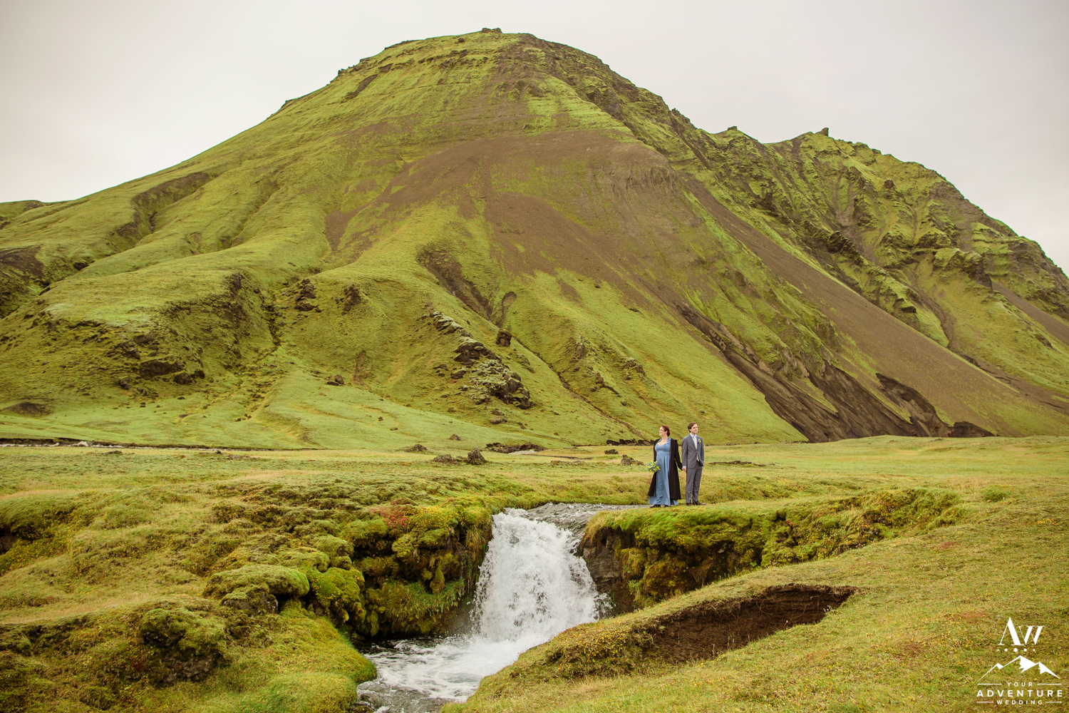 One of the most interesting things about the Icelandic Highlands is how dynamic the landscape is. Which is one of the many reasons why Katy and David were thrilled to adventure through part of them. In a matter of 90-120 minutes, they explored 4 secret waterfalls that all looked completely different from each other, fell in love 3 different sets of amazingly shaped mountains, and ventured into an area that seriously LOOKED LIKE MARS. Yes, Mars. I mean come on, who doesn’t want Iceland adventure wedding photos that look literally “out of this world?”