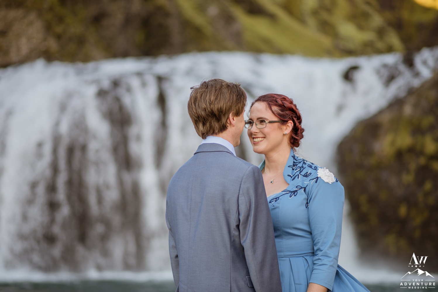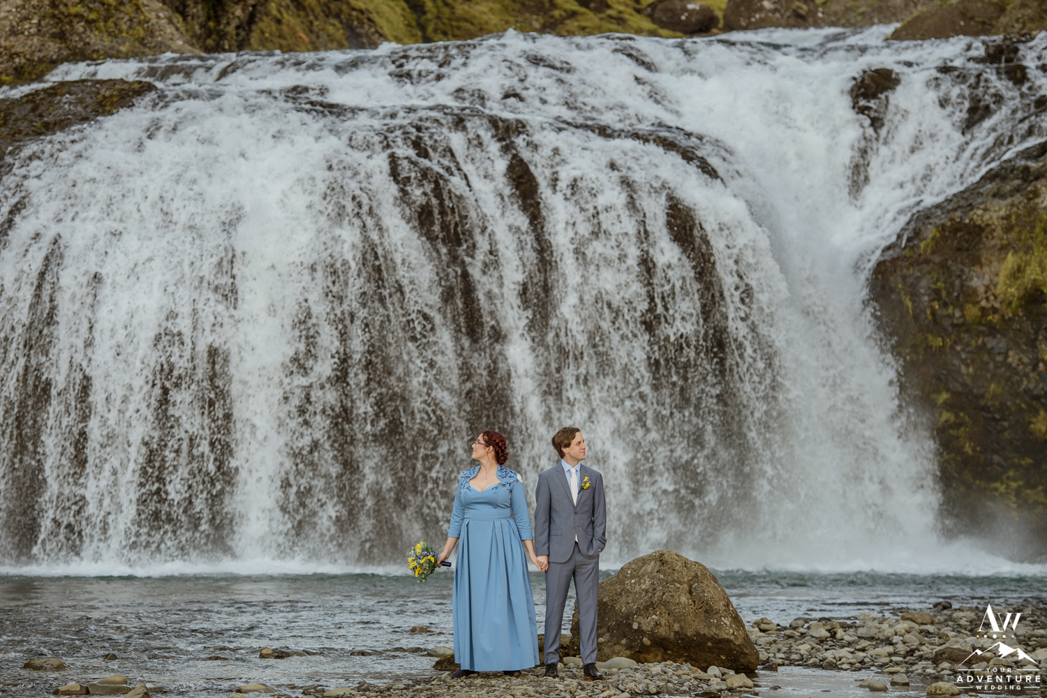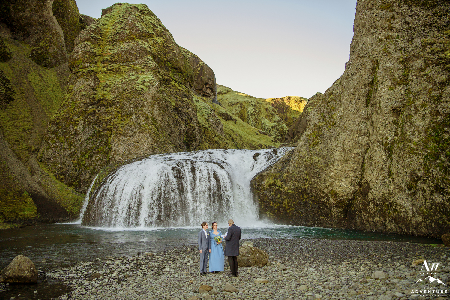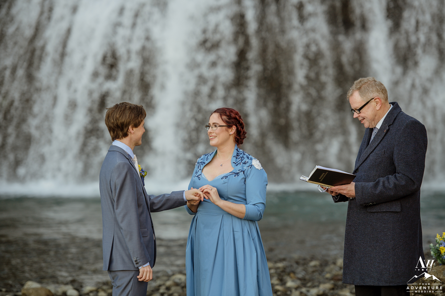 The adventure officially kicked off and everyone was on their way to an offbeat waterfall for the Iceland wedding ceremony. The excitement was high! Upon arrival to the waterfall, they had a nice 5 minute hike to the waterfall. It was there that Pastor Egill performed a moving and inspirational marriage ceremony that was exactly what David and Katy envisioned.