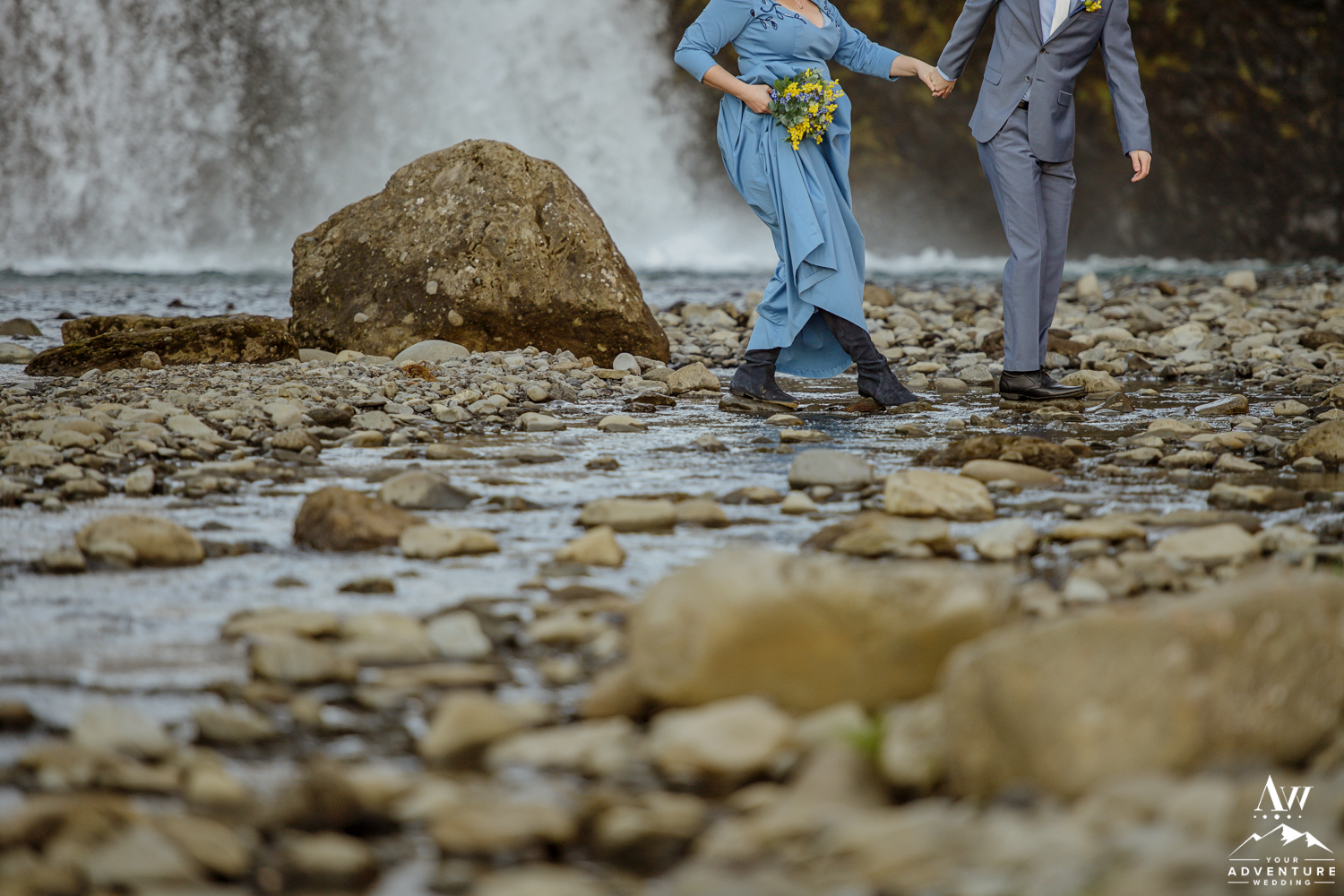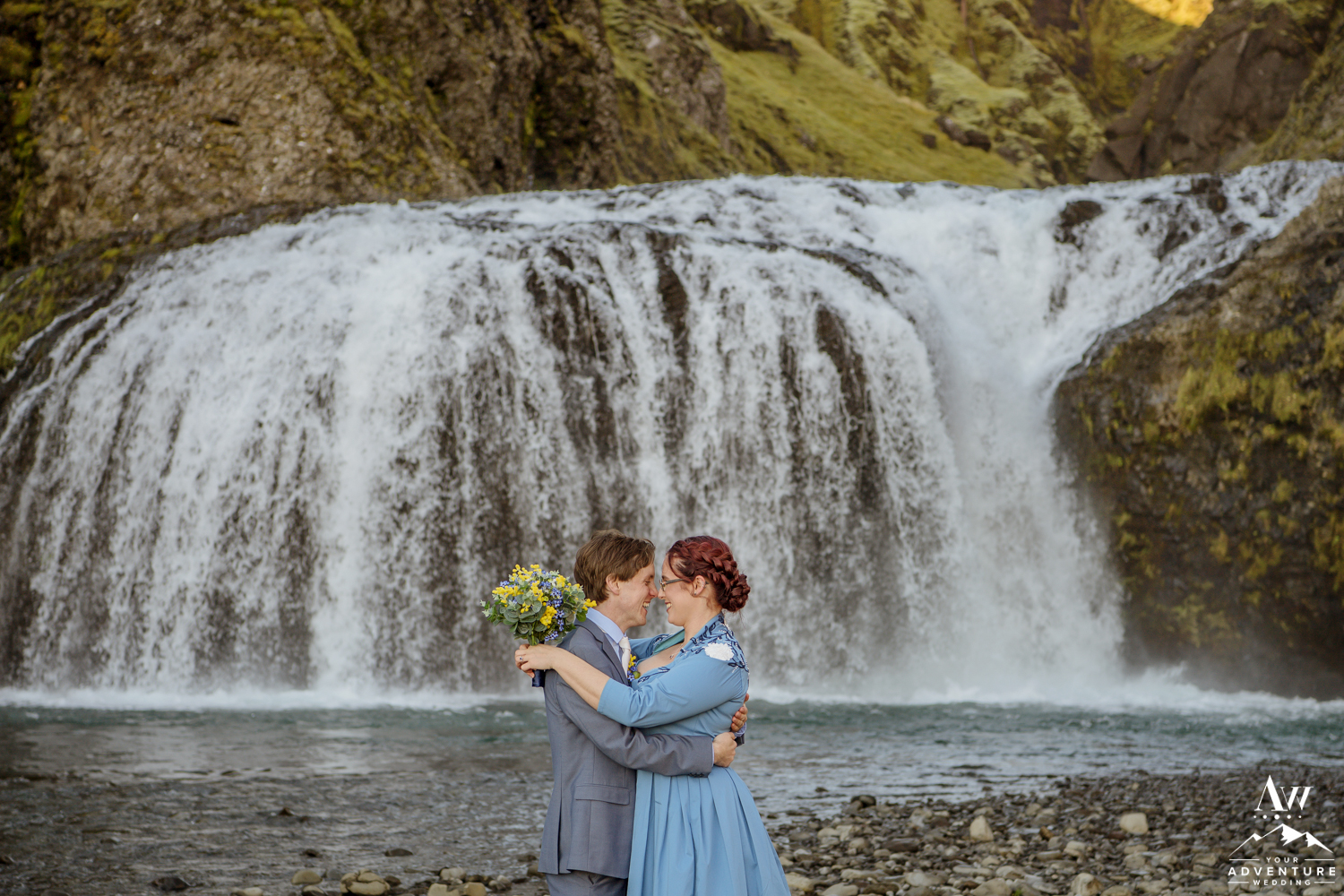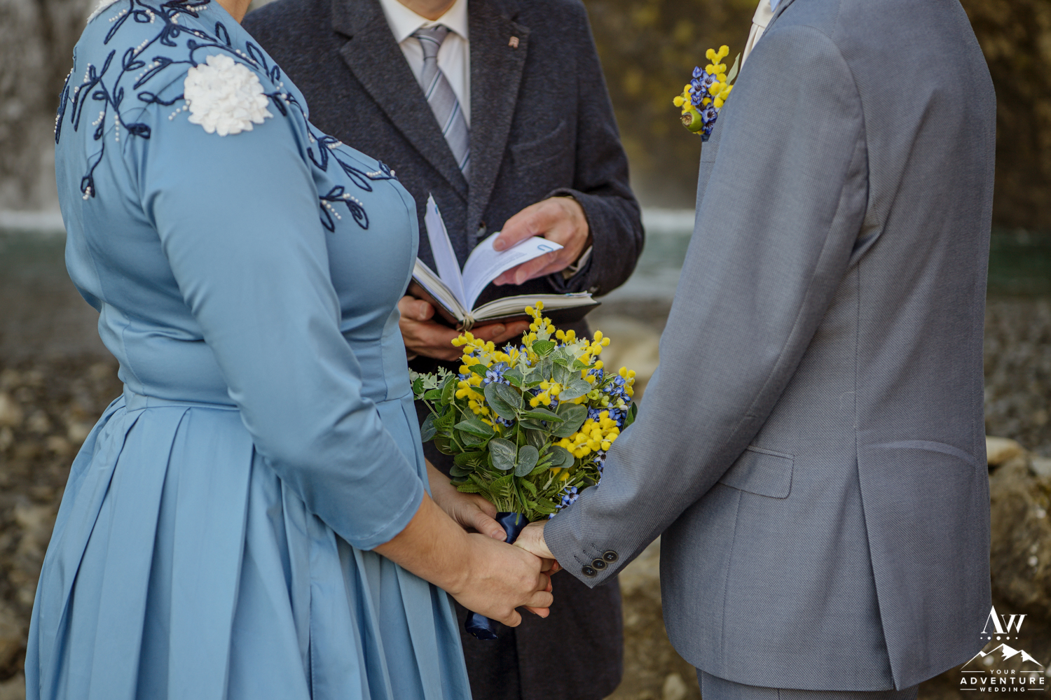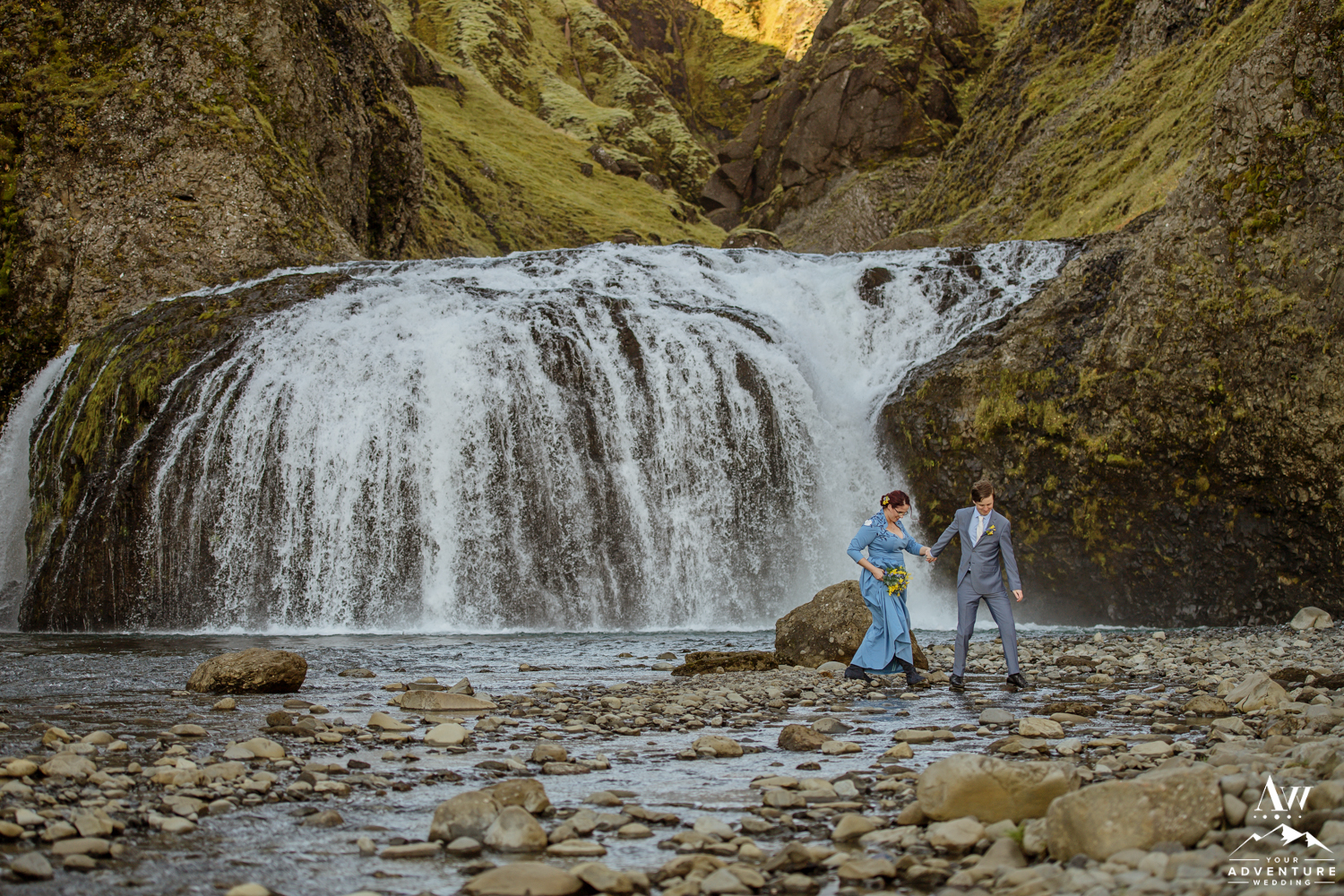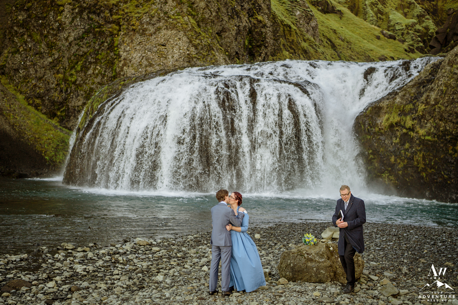 The adventure officially kicked off and everyone was on their way to an offbeat waterfall for the Iceland wedding ceremony. The excitement was high! Upon arrival to the waterfall, they had a nice 5 minute hike to the waterfall. It was there that Pastor Egill performed a moving and inspirational marriage ceremony that was exactly what David and Katy envisioned.