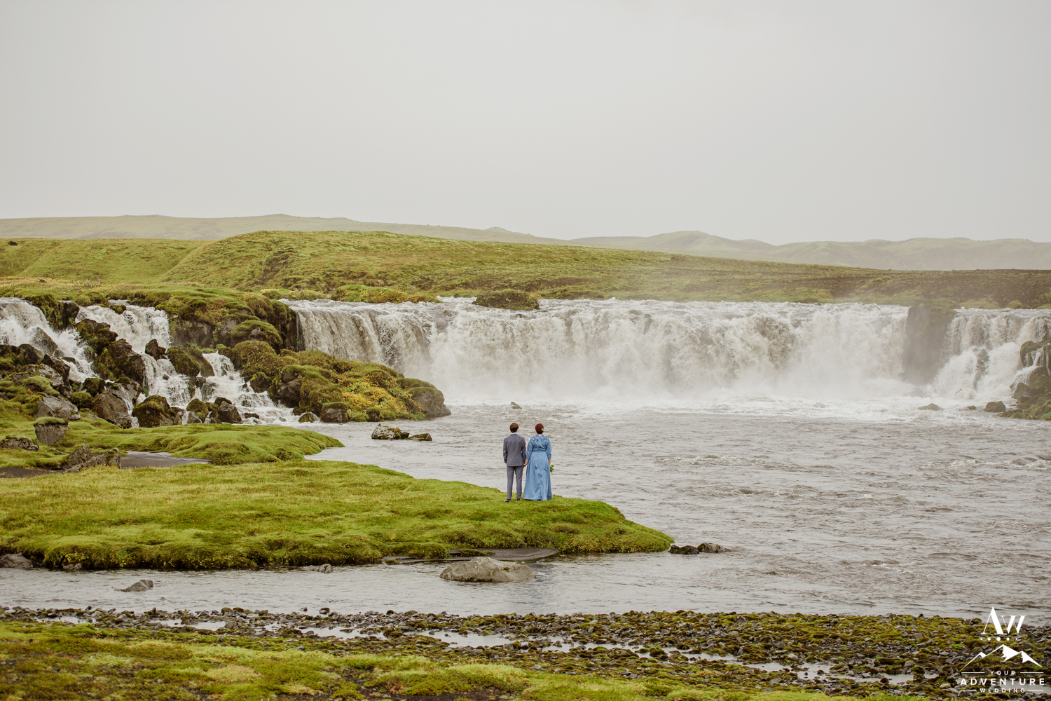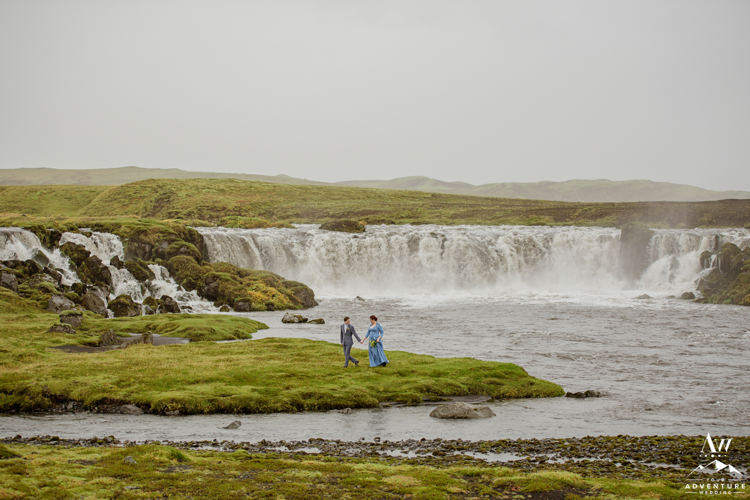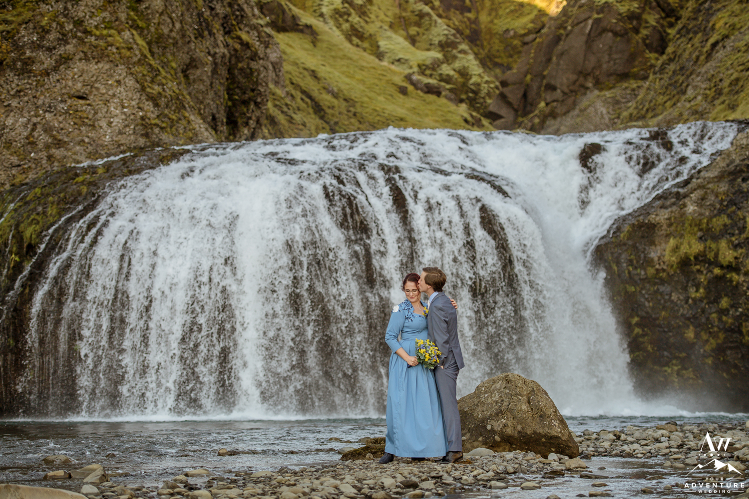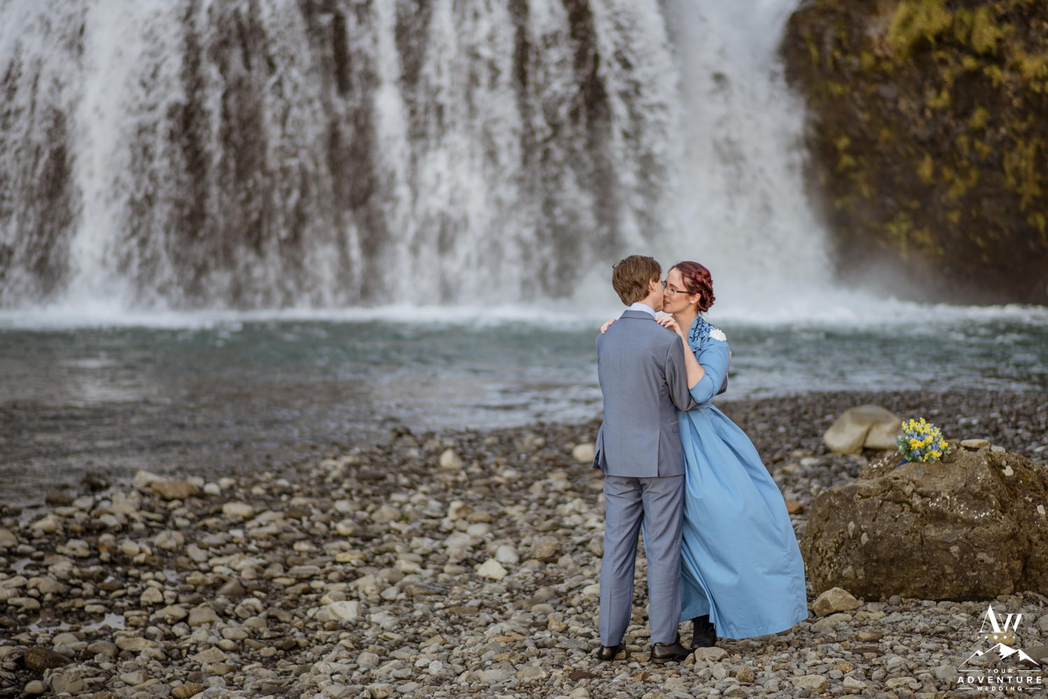 The adventure officially kicked off and everyone was on their way to an offbeat waterfall for the Iceland wedding ceremony. The excitement was high! Upon arrival to the waterfall, they had a nice 5 minute hike to the waterfall. It was there that Pastor Egill performed a moving and inspirational marriage ceremony that was exactly what David and Katy envisioned.