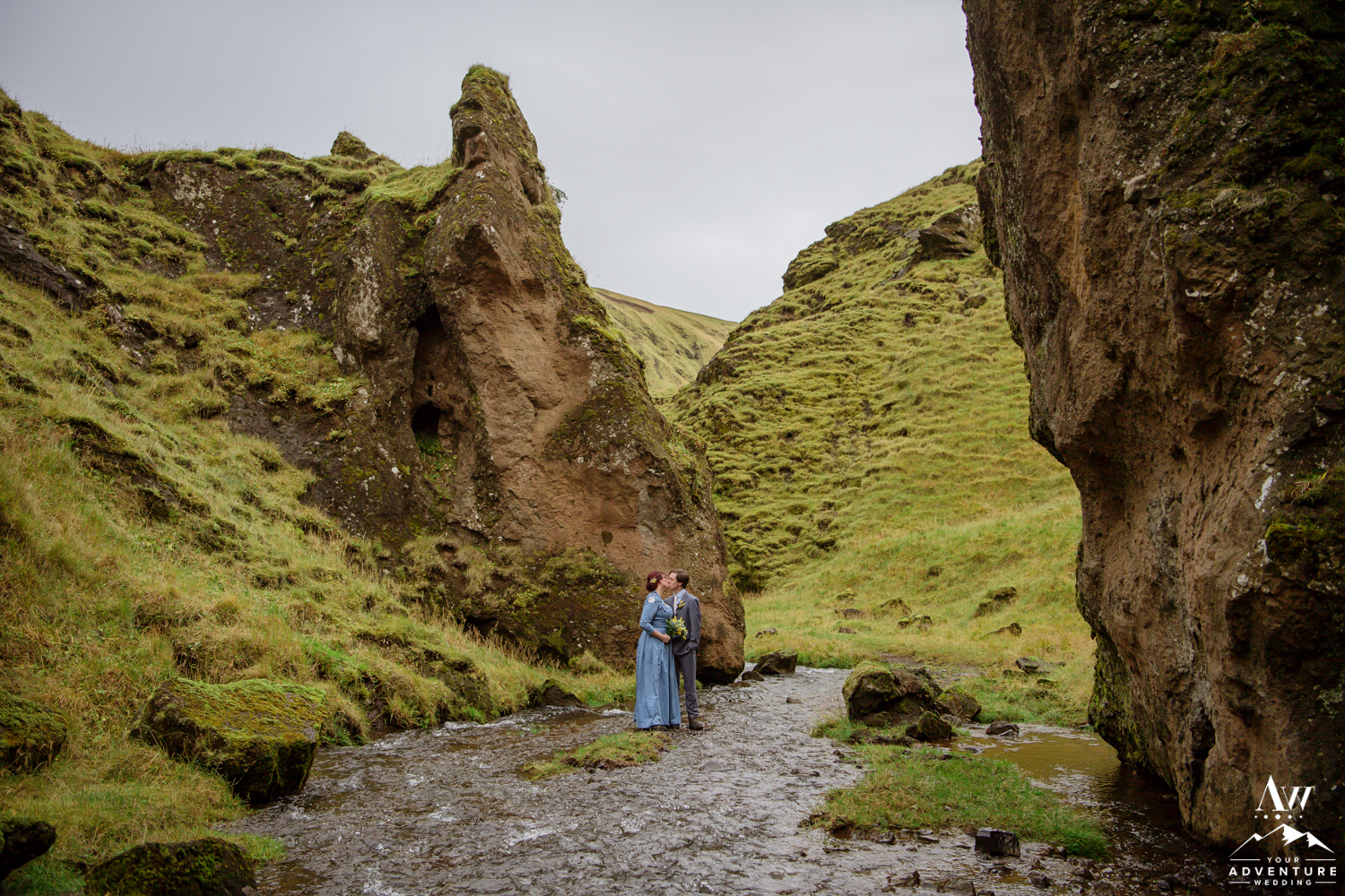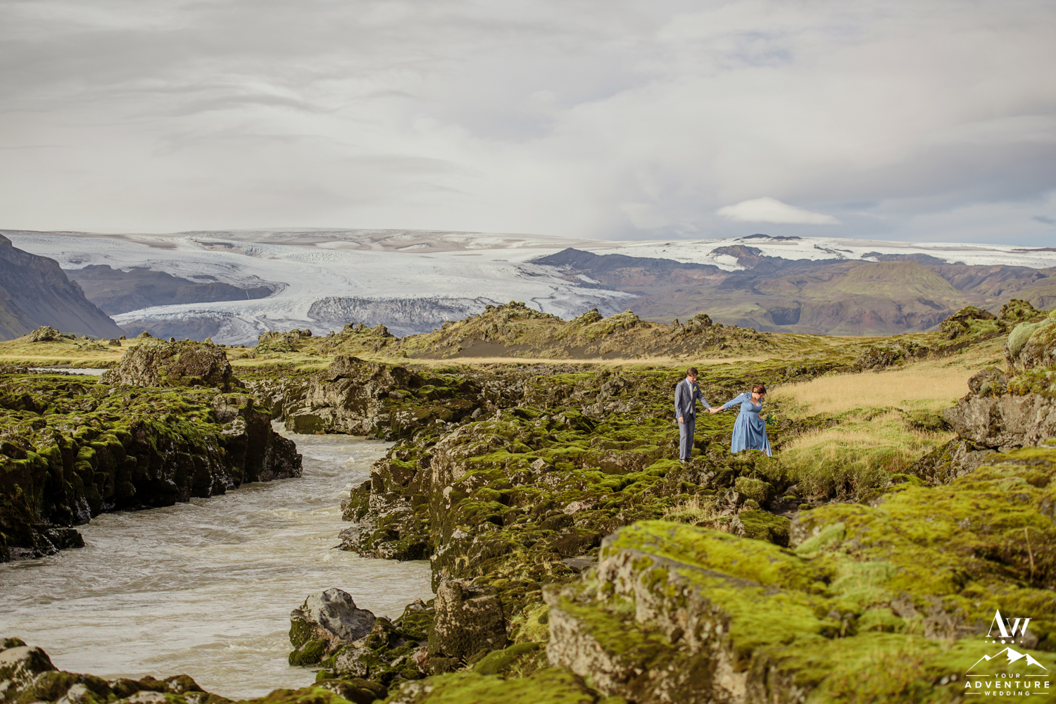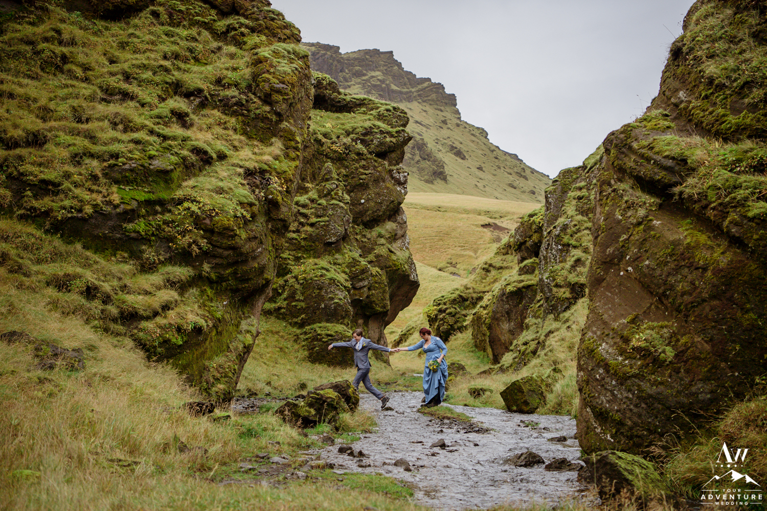 Intimacy is the mission at every Iceland wedding location we explore. We want you to feel like that place only exist for just you and only in the moment in time. The next location our super jeep team took Katy and David was to a private super green canyon! They explored throughout it and savored every second of it during their adventure wedding in Iceland.