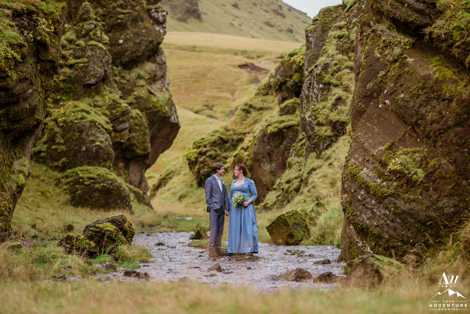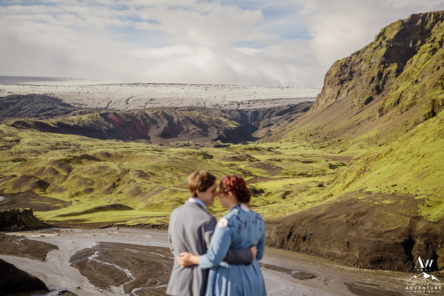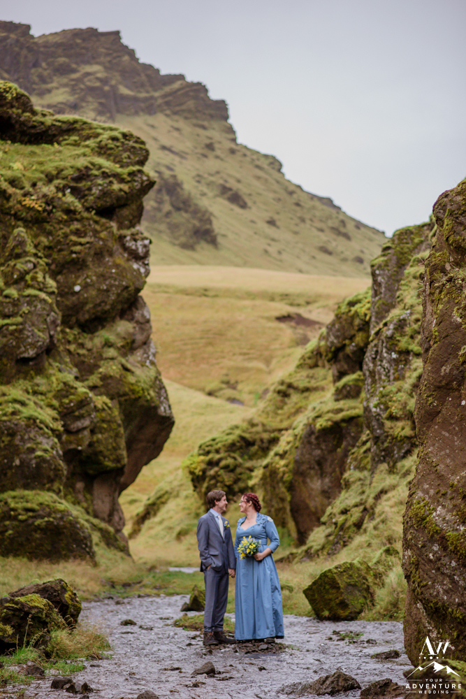 Intimacy is the mission at every Iceland wedding location we explore. We want you to feel like that place only exist for just you and only in the moment in time. The next location our super jeep team took Katy and David was to a private super green canyon! They explored throughout it and savored every second of it during their adventure wedding in Iceland.