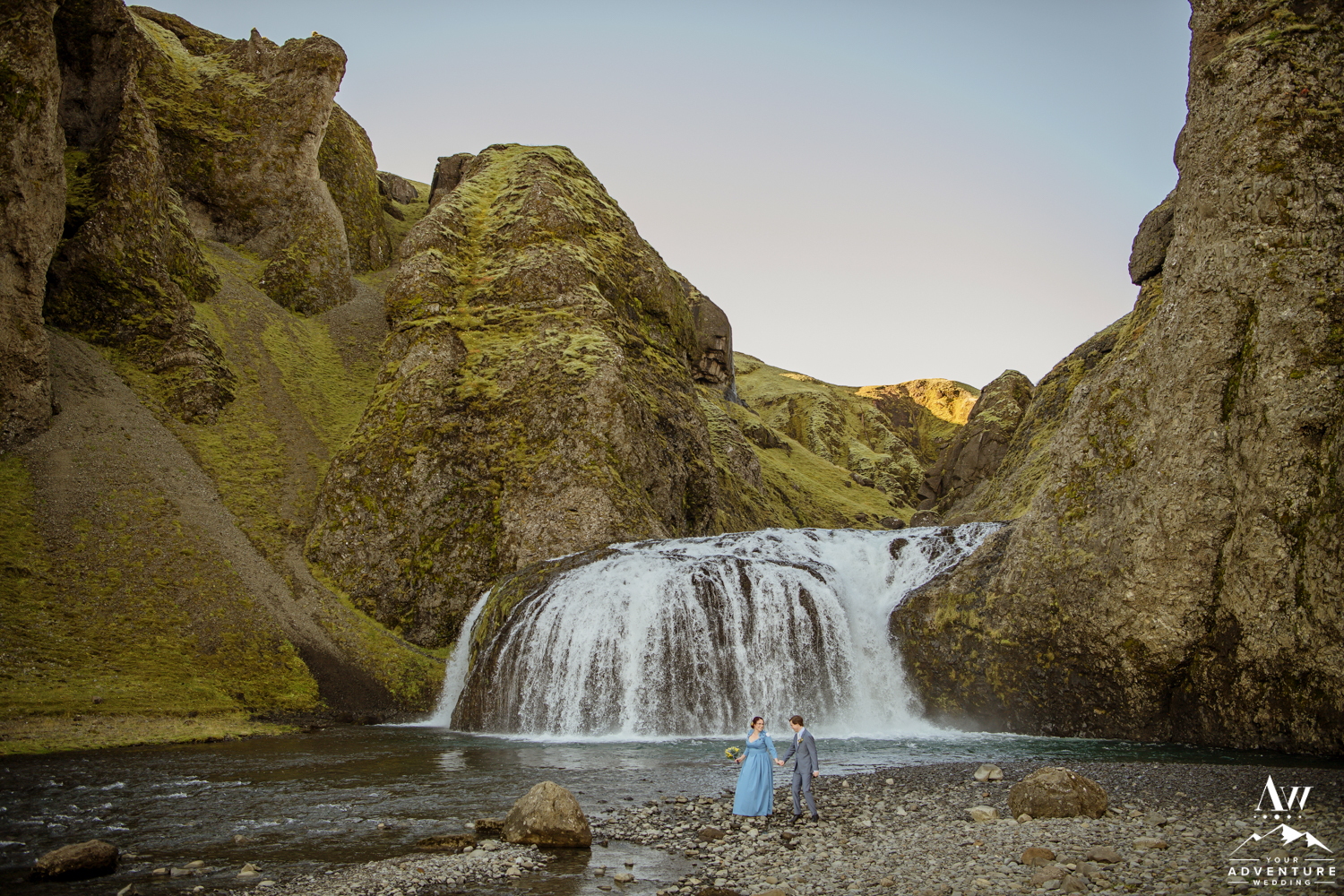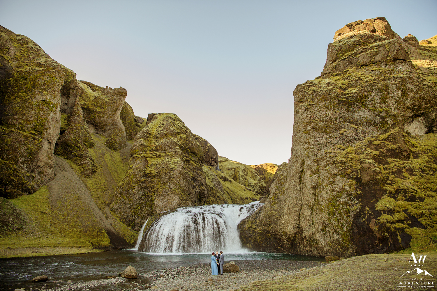 There are secret waterfalls and canyons throughout the Iceland Highlands that will literally and figuratively take your breath away. Our next stop during Katy and David’s elopement in Iceland did just that. The colors, texture, tones, and depth that was within were the perfect backdrop for their Iceland wedding photos!