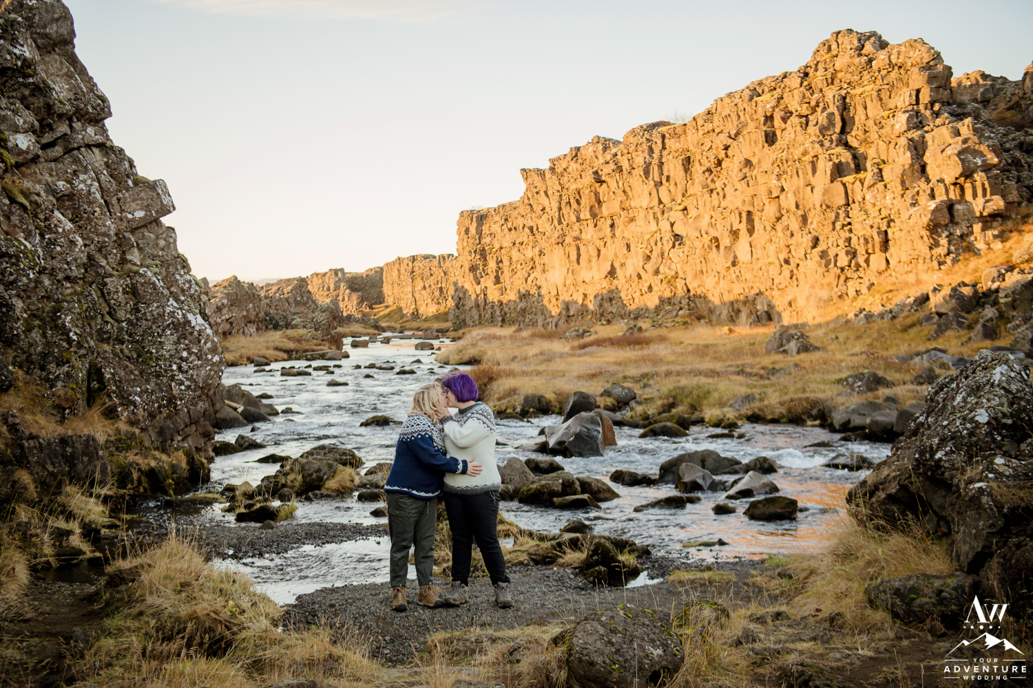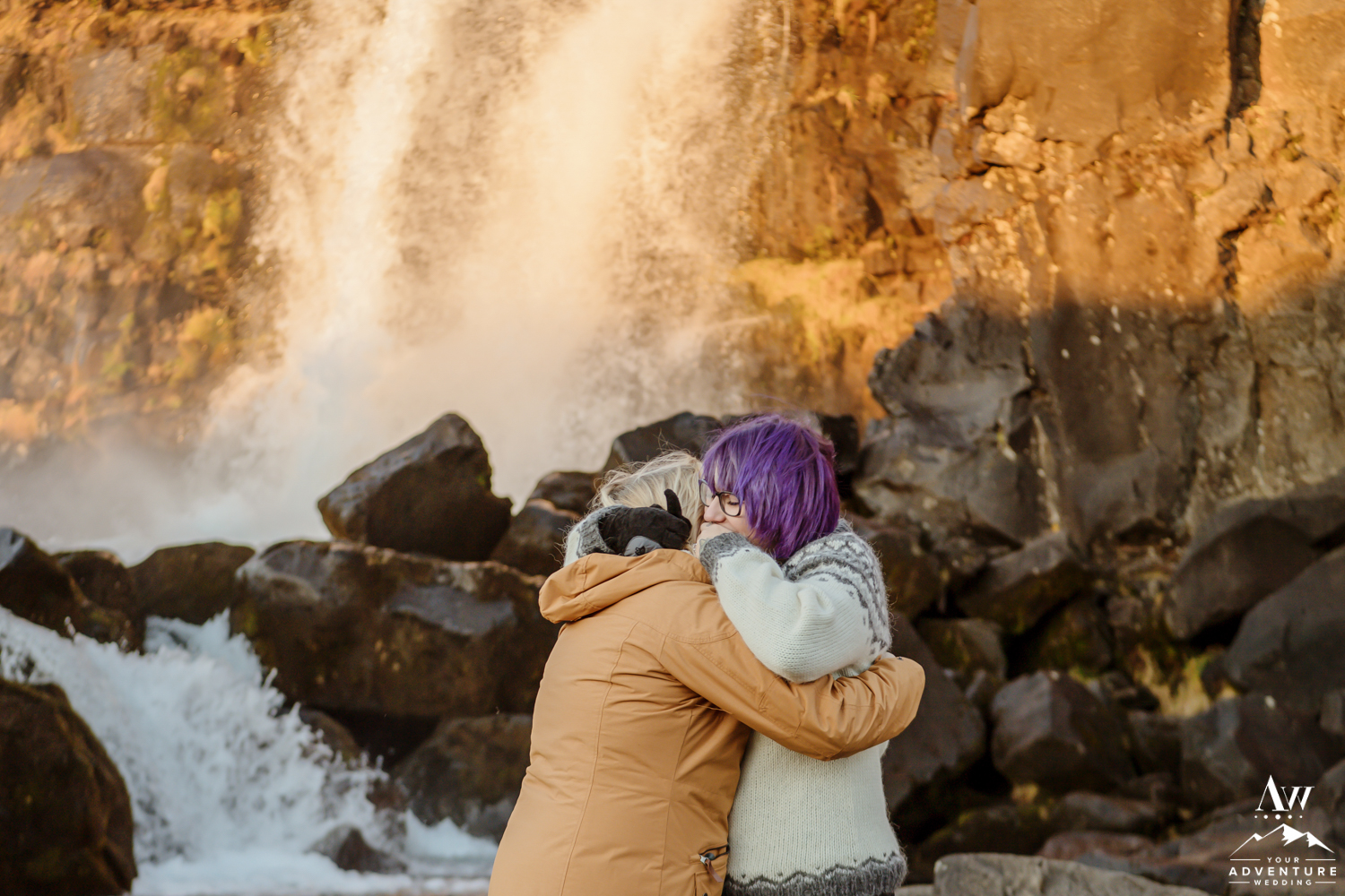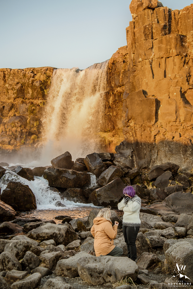 Within Þingvellir National Park, you’ll find Öxarárfoss Waterfall. She sits perfectly between lava rock walls and nearby to the famed tectonic plates. It was meaningful to Jen too I think since she was from the East Coast and Ellie from the West Coast, so it was sort of signifying a coming together too! So now that we had our perfect spot… it was time for Jen to Propose Iceland! Also head over to the fantastic: How She Asked blog (or on our PRESS page) where you’ll read and see more on these two lovelies!