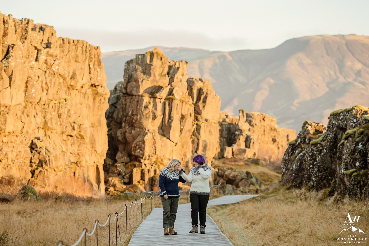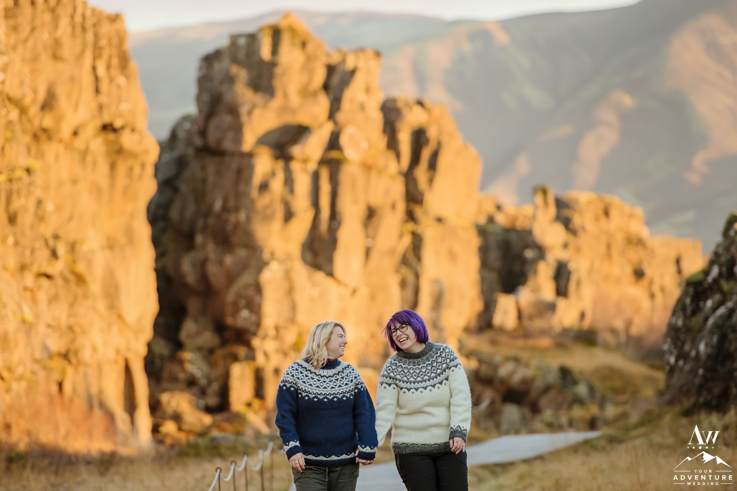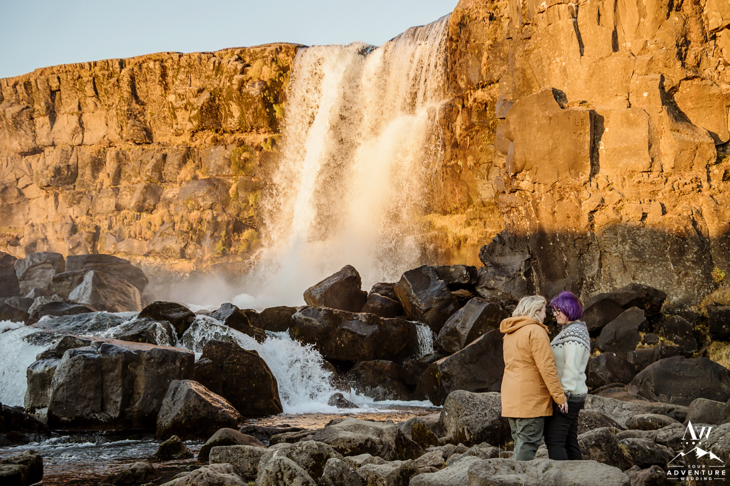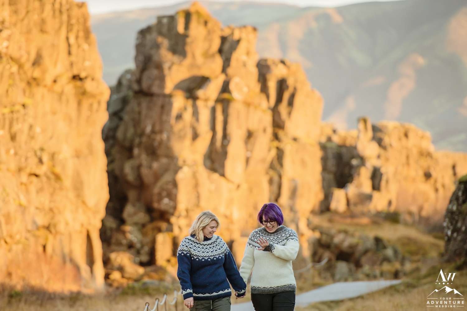 Within Þingvellir National Park, you’ll find Öxarárfoss Waterfall. She sits perfectly between lava rock walls and nearby to the famed tectonic plates. It was meaningful to Jen too I think since she was from the East Coast and Ellie from the West Coast, so it was sort of signifying a coming together too! So now that we had our perfect spot… it was time for Jen to Propose Iceland! Also head over to the fantastic: How She Asked blog (or on our PRESS page) where you’ll read and see more on these two lovelies!