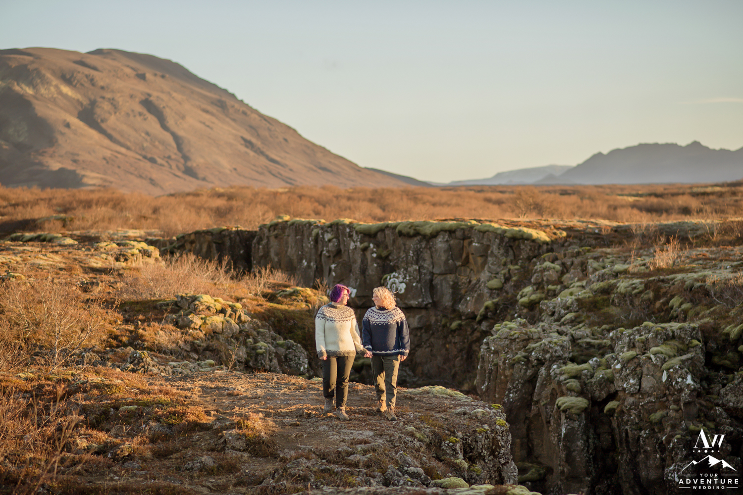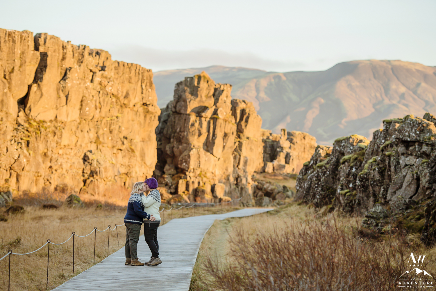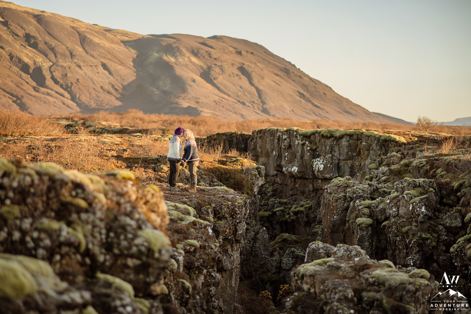 The adventurous Jen contacted us in August last year, hoping to plan a private proposal and have it captured by an Iceland wedding photographer too.  Our Iceland Wedding Planner team was thrilled to craft an unforgettable morning for them to partake in!  After careful consideration of the beautiful offbeat locations our team offers for proposals in Iceland, Jen kept coming back to the beauty and history that Þingvellir National Park (Thingvellir) holds.  The entire park is a UNESCO World Heritage Site as well.  It also held a convenience since they were adventuring around the “Golden Circle” that day and she was hoping the proposal to stay a surprise.