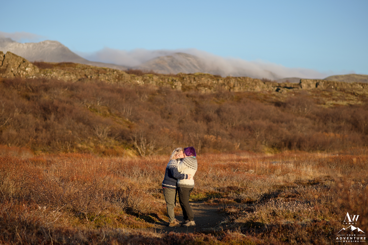 The adventurous Jen contacted us in August last year, hoping to plan a private proposal and have it captured by an Iceland wedding photographer too. Our Iceland Wedding Planner team was thrilled to craft an unforgettable morning for them to partake in! After careful consideration of the beautiful offbeat locations our team offers for proposals in Iceland, Jen kept coming back to the beauty and history that Þingvellir National Park (Thingvellir) holds. The entire park is a UNESCO World Heritage Site as well. It also held a convenience since they were adventuring around the “Golden Circle” that day and she was hoping the proposal to stay a surprise.
