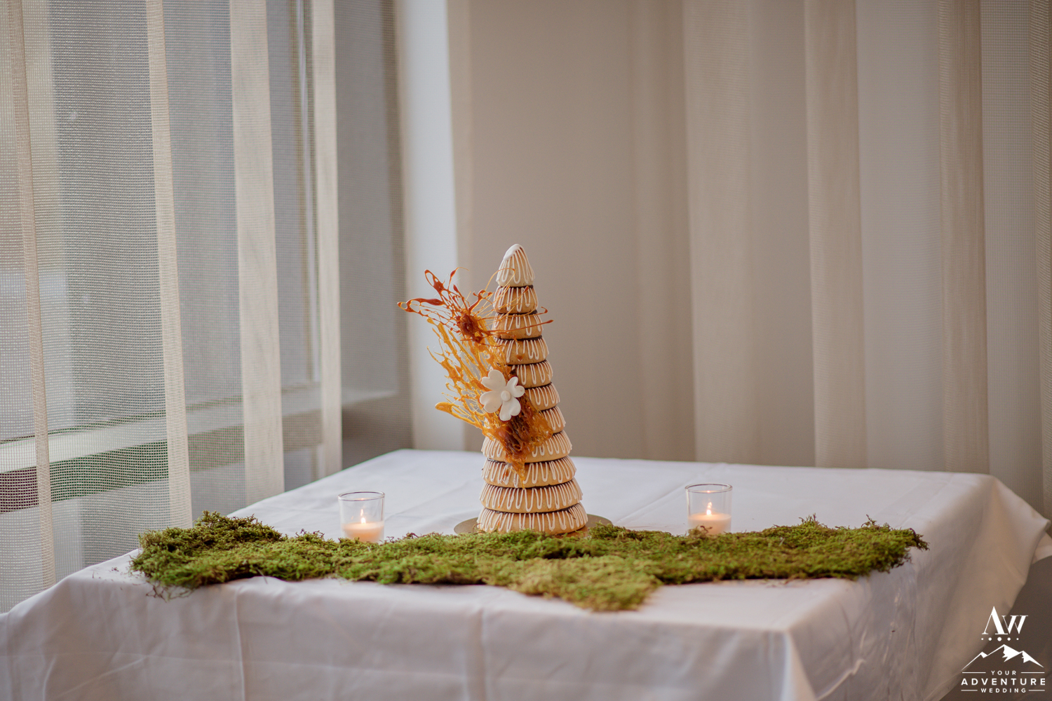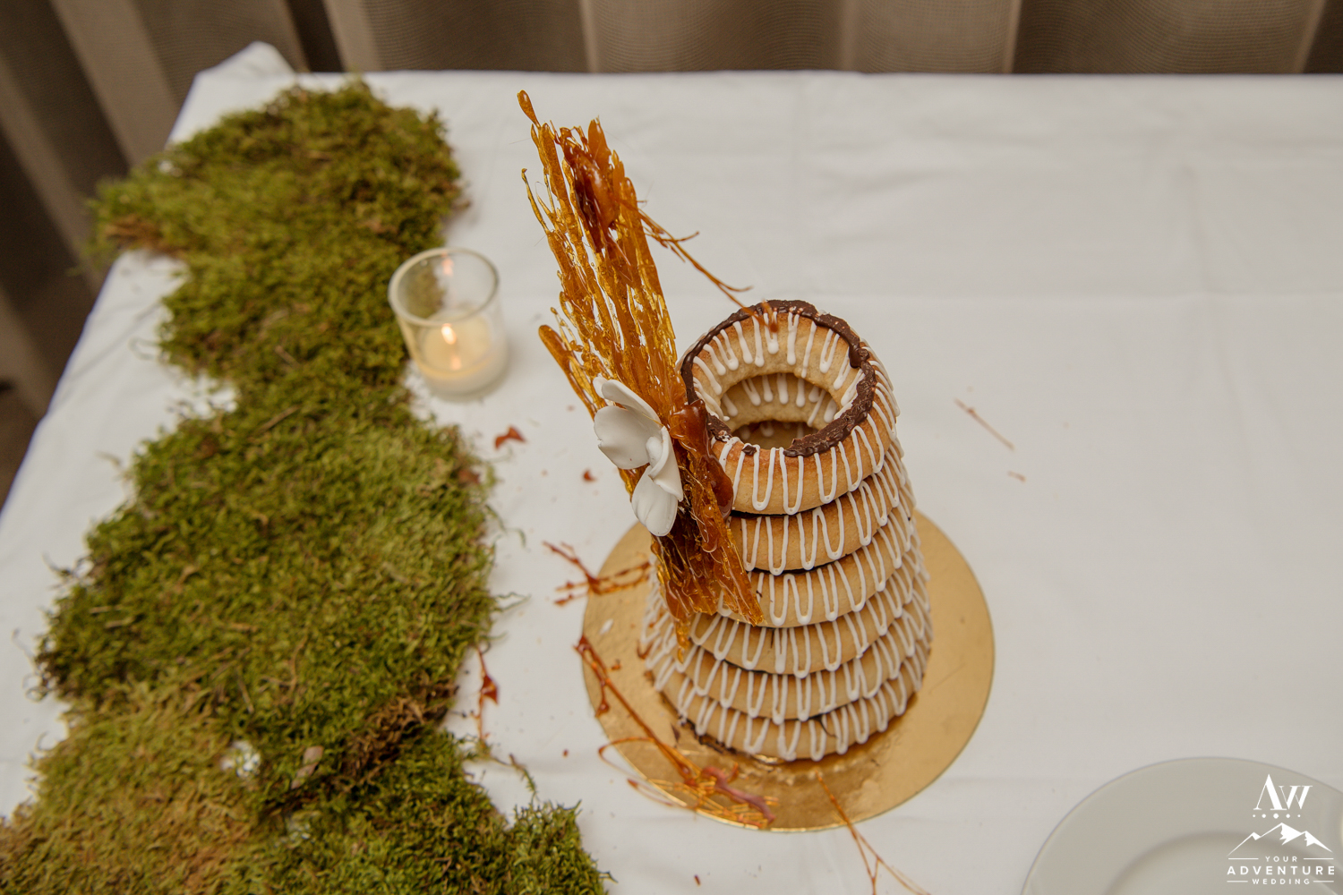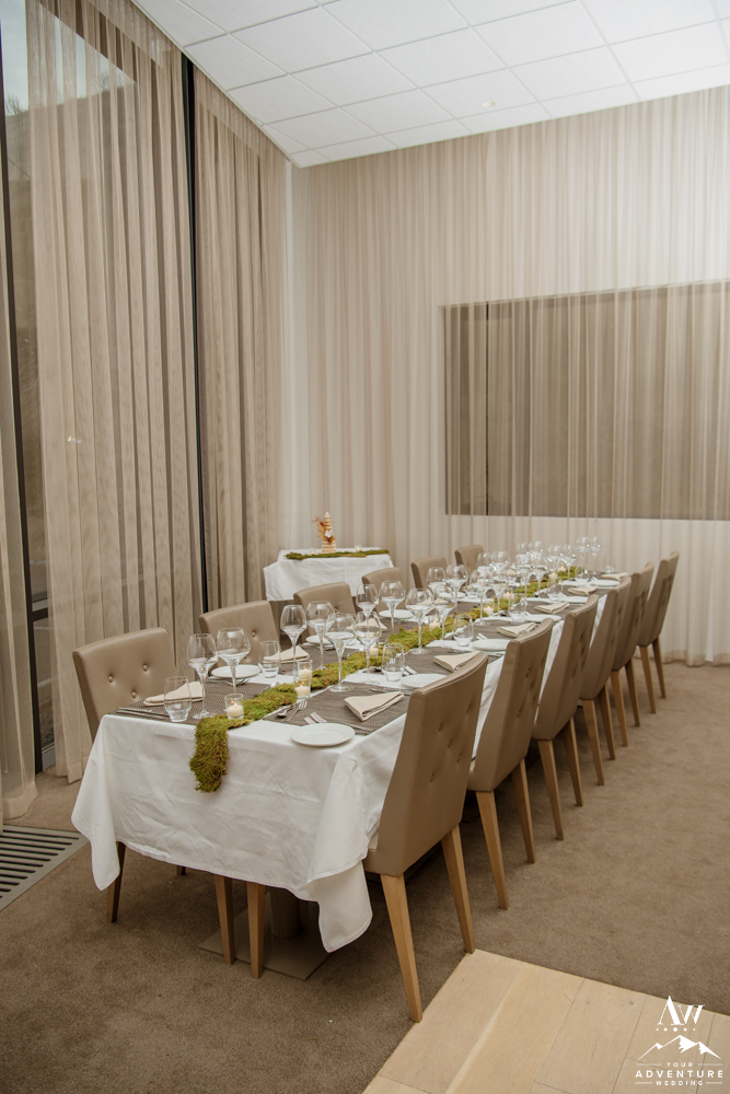 The group arrived back to the hotel in time for a little rest and refresh time to catch a second wind. The lovely Berg restaurant hosted their intimate Iceland wedding reception. Yong and Zosia’s decor theme came from our Iceland wedding rental section of our website HERE, it held a strong theme of bringing the outdoors in with a hint of romantic ambiance mixed in. Their Iceland wedding guests thoroughly enjoyed a 3 course meal and delighted in an Iceland wedding cake (Kransakaka).