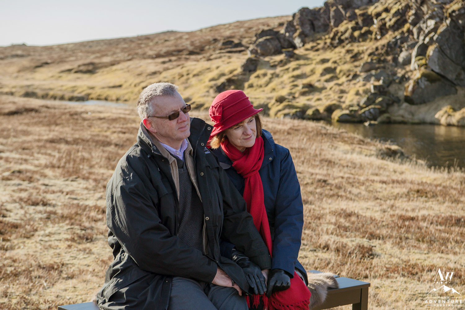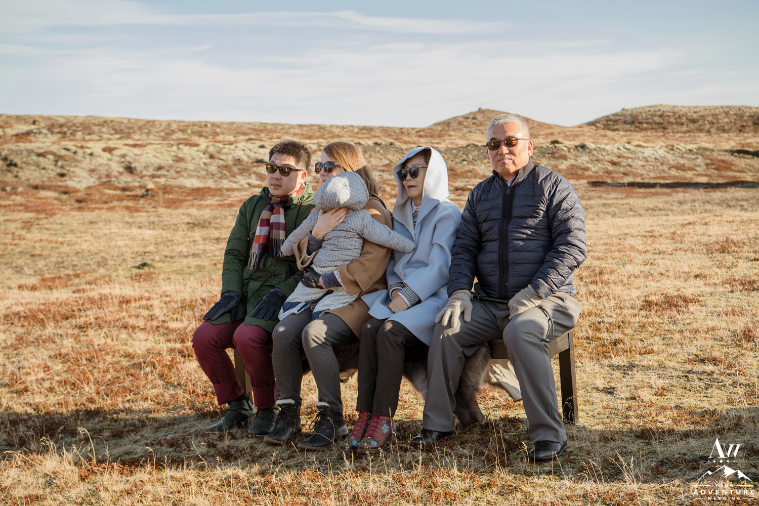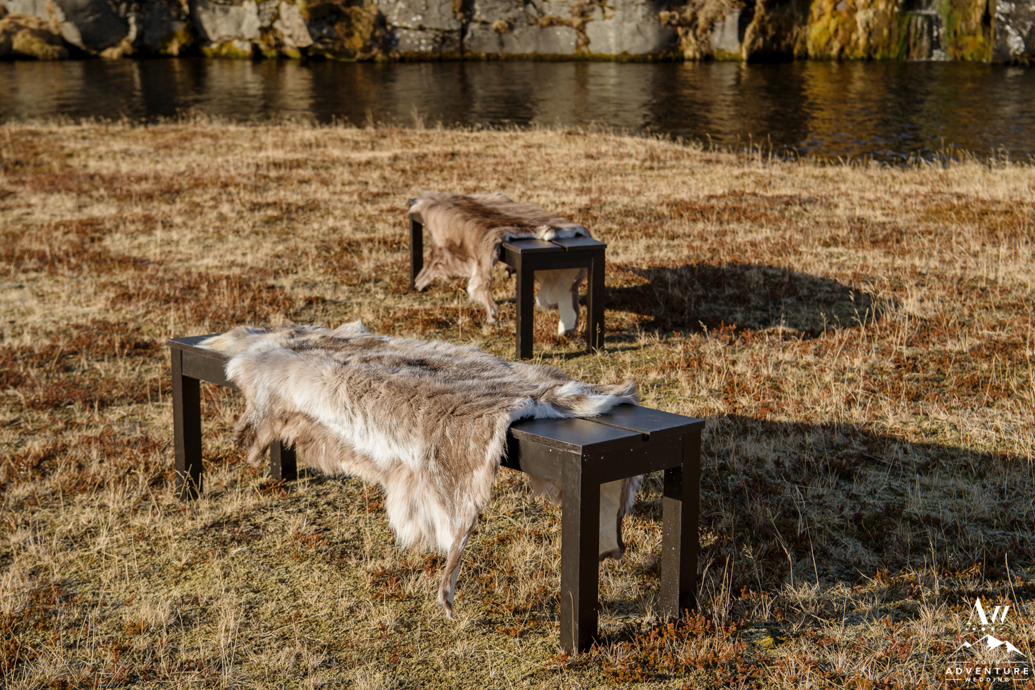 Yong Guck and Zosia, held one of the most intimate Iceland wedding ceremonies we have ever witnessed. The sun was shining, the mountains were sparkling with snow behind the waterfall, and the setup for their ceremony was so sweet! They had rented our fabulous black benches with reindeer furs. To keep the closeness of family feeling during the private waterfall wedding ceremony, our Iceland Wedding Planner team formed a half circle with the benches. Yong and Zosia had wanted a meaningful and sweet ceremony and that is exactly what Pastor Egill created in front of that private waterfall!