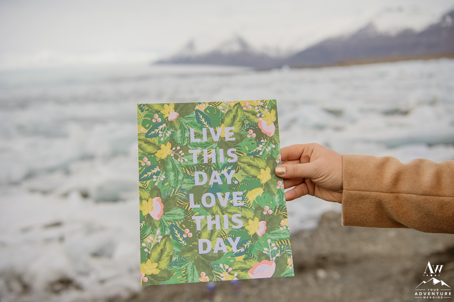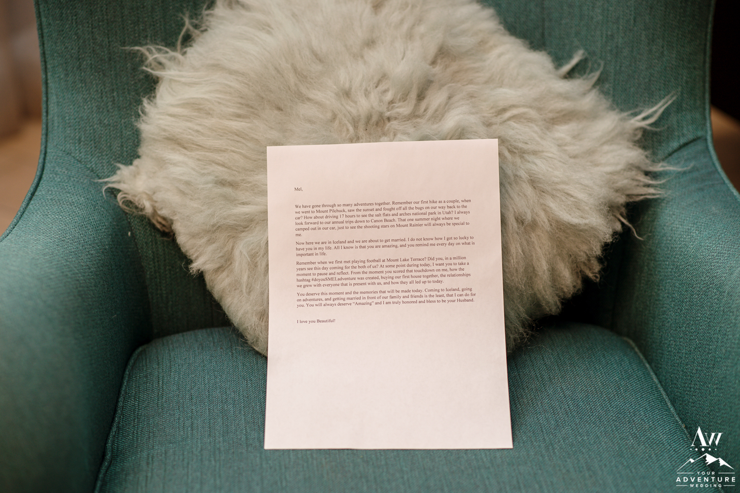 April is often an overlooked month to get married in Iceland. But it shouldn’t be! Yes, it’s a bit colder than other months, but if coming before April 15th, there are still chances to see Northern Lights activity possibly along with having the opportunity to visit ice caves! Mel and Sam had one of the best weather days in the month, they were very lucky! The night before during their Iceland wedding welcome dinner, they handed out sweet little welcome bags to their guests that said “And so the Adventure Begins…” The guests loved their Iceland wedding welcome bags!