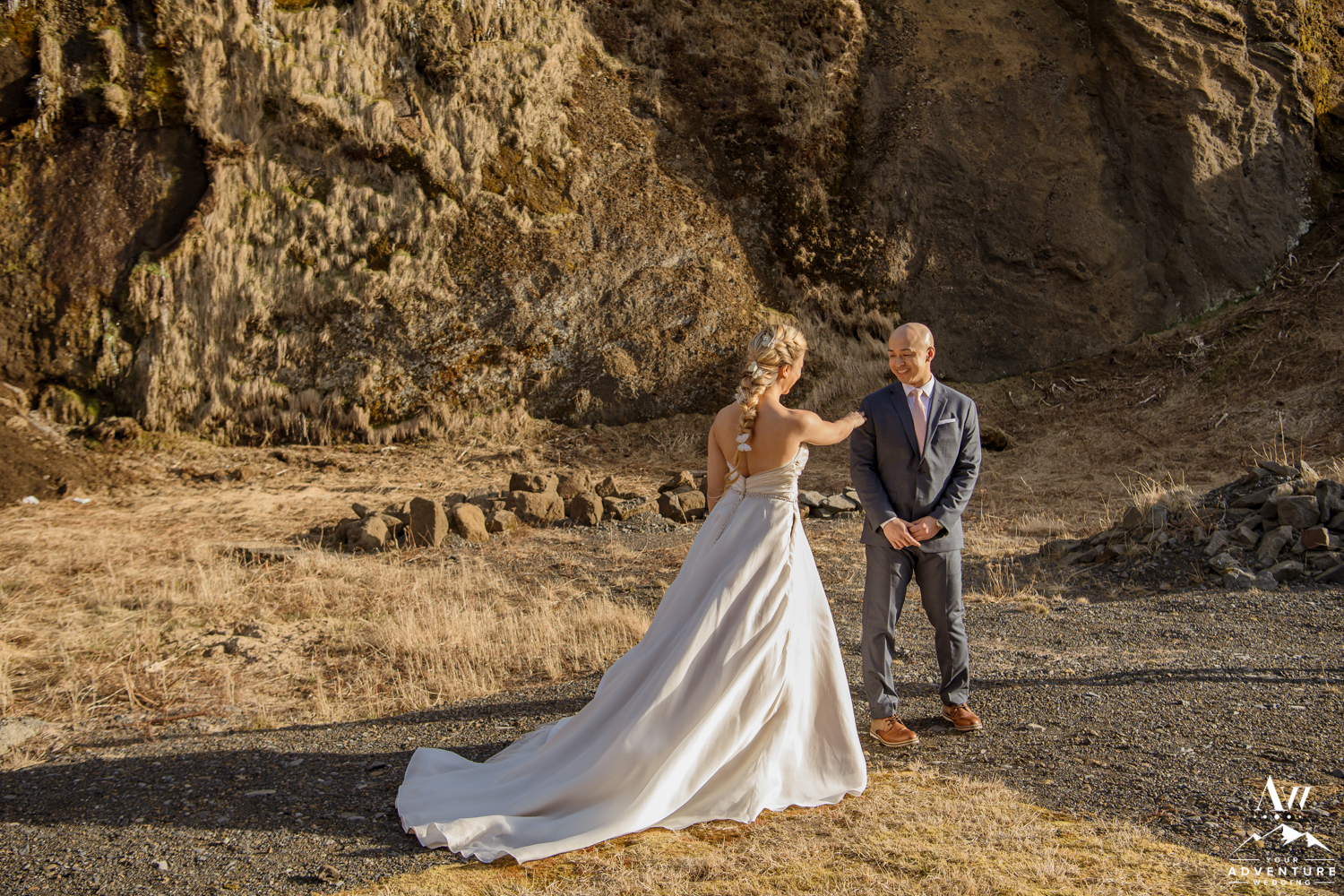 One of the only traditional things Mel and Sam wanted to have happen before their intimate Iceland destination wedding was to have a formal moment where they saw each other before. So we had scheduled a sunrise first look on that beautiful April spring morning. It was so sweet to see them have their moment together before all of the amazing adventures began!