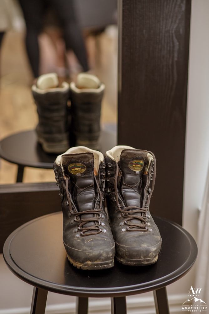 Dennis and Bonnie’s Iceland adventure wedding begins around 5am with our hair and makeup team arriving to Hotel Grimsborgir.  Hotel Grimsborgir is a fabulous luxury hotel in Southern Iceland and they treated our clients like VIP’s! Our Iceland wedding photographers were excited to document all of their super fun details from the elegant Iceland wedding dress to the dapper groom suit right down to the freaking hiking boots!