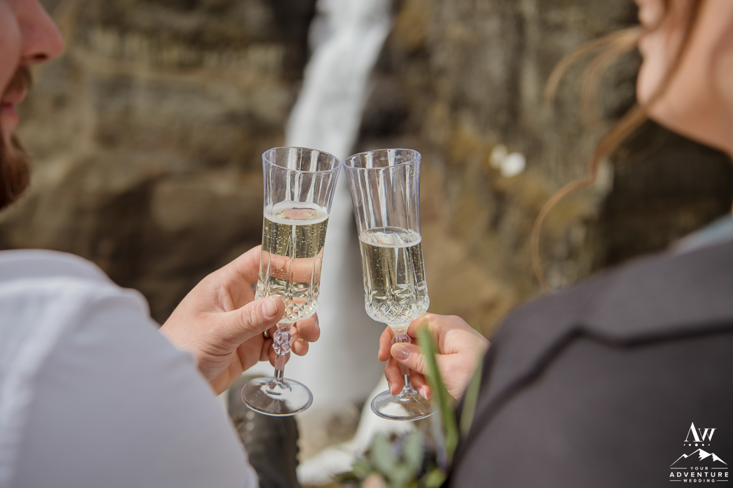 After eating lunch on the way to the next stop, they traveled to their third offbeat waterfall to delight in a little champagne picnic.  No better view for a glass of bubbles and little adventure wedding celebration!