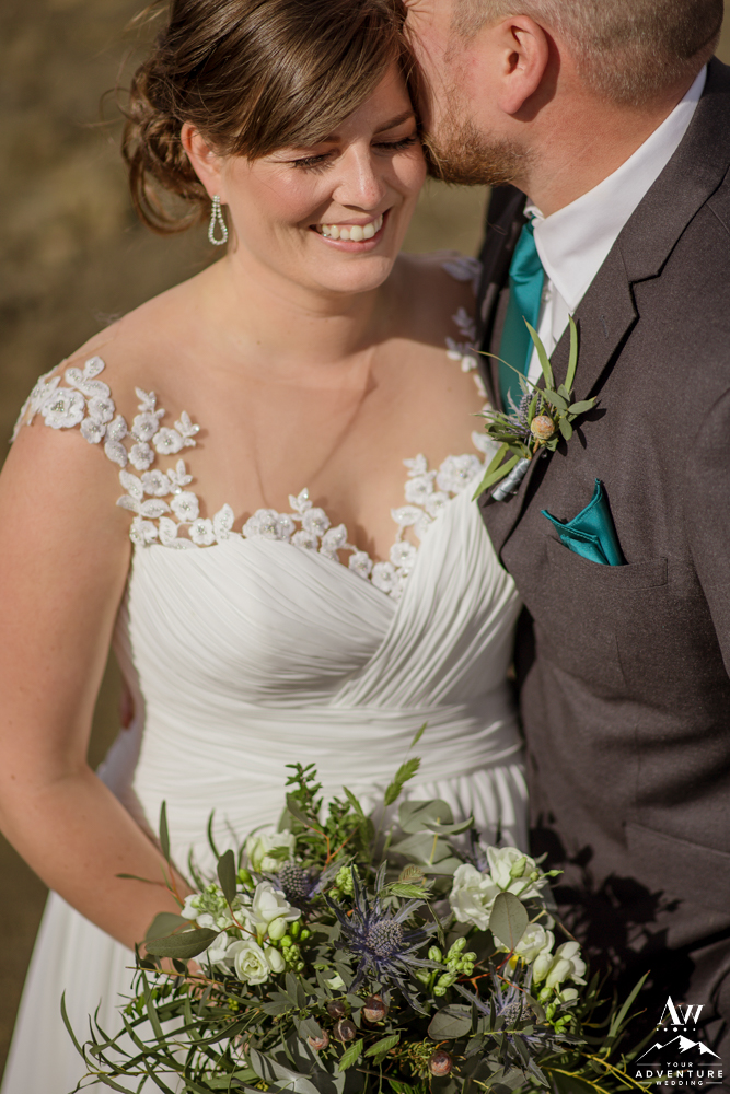 Right before the Iceland adventure wedding began the super jeep arrived and packed up for the day while Bonnie and Dennis snuck in a “first look” in front of a lovely mountain!  It’s nice to have a quite moment of unveiling the full amazing Iceland wedding day look!