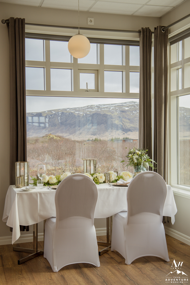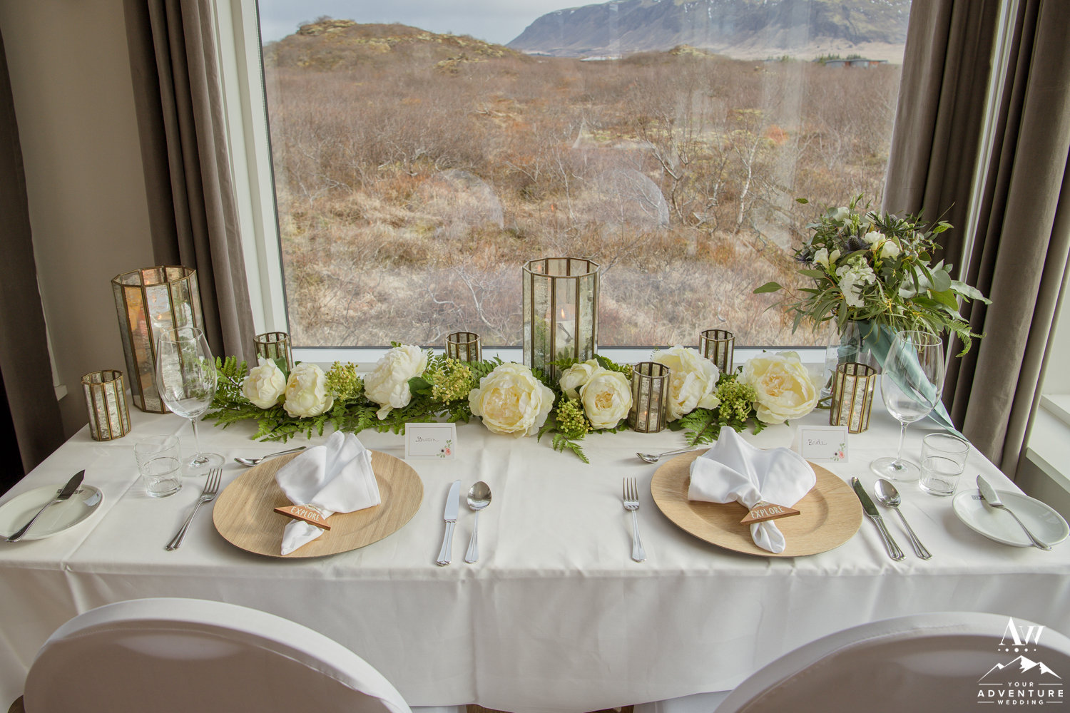 After having a truly stunning Iceland adventure wedding, Bonnie and Dennis had about one hour to rest, refresh, and relax before their intimate reception for two began at Hotel Grimsborgir.  Our Iceland Wedding Planner team believe that even though you may be eloping in Iceland without any guests, does not mean you shouldn’t be spoiled and have pretty decor to delight in during dinner.  Even if it’s just something soft and elegant, it makes the day feel complete and full of romance!  After having a delicious dinner Bonnie and Dennis treated themselves to a traditional Skyr cake for dessert!  What a perfect end to a very adventurous elopement in Iceland!