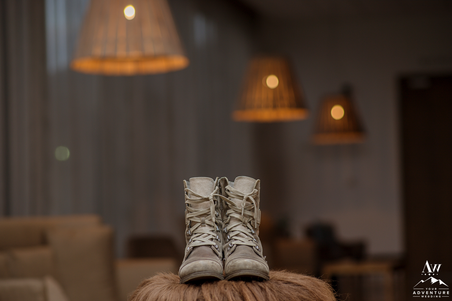 That April morning began around 5am with our Iceland Wedding Planner hair and makeup team dolling Heather up for her adventurous elopement! The Iceland wedding photographer was thrilled to be capturing all of the pretty little details Heather and Dane had brought from Australia and was totally in love with her blue Iceland wedding dress and groom details!