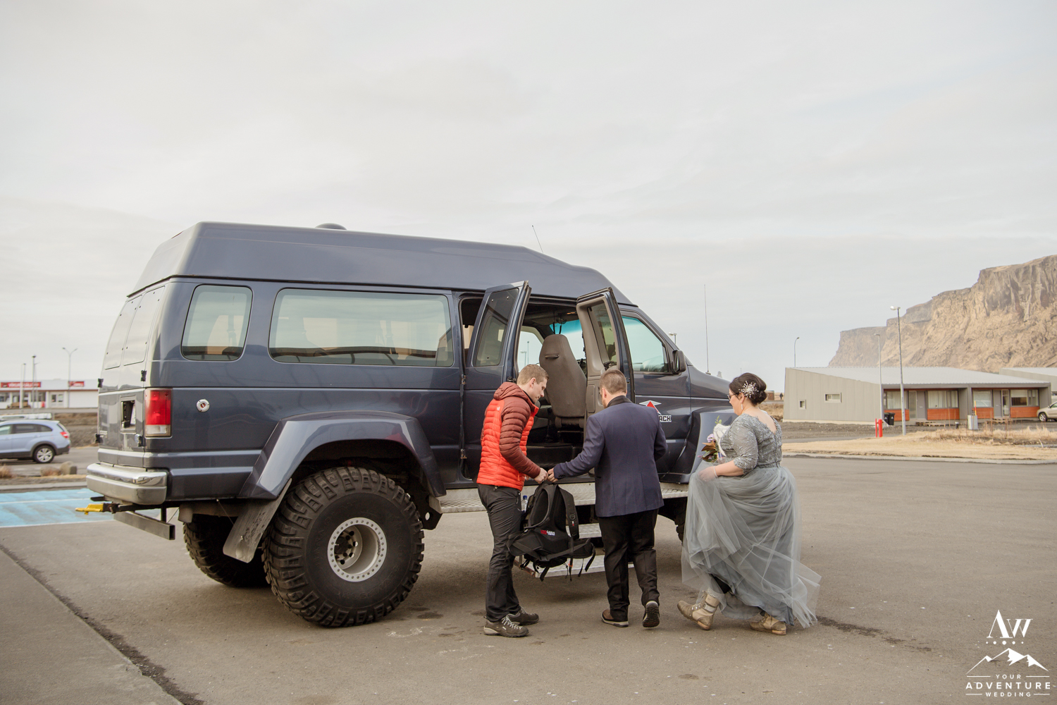 By 8am the Iceland wedding super jeep team arrived and Heather and Dane excitedly jumped in ready to embark on their wedding adventure! The super jeep was filled with many laughs and endless smiles as we got closer and closer to their private waterfall ceremony spot for their Iceland wedding.