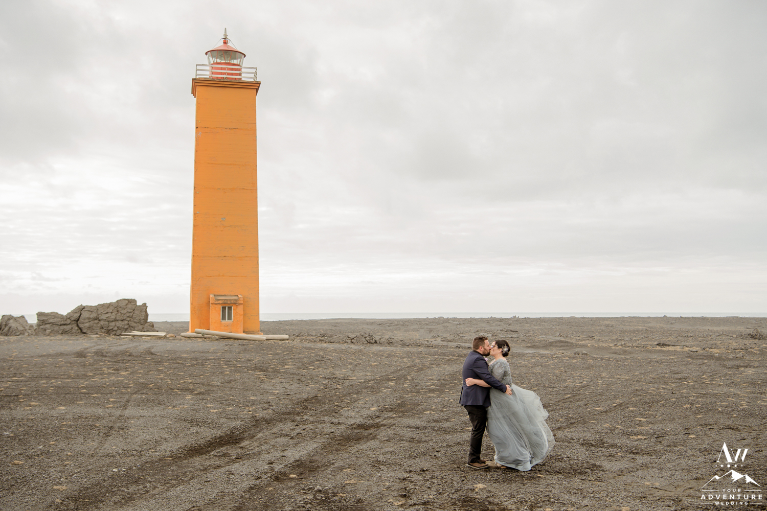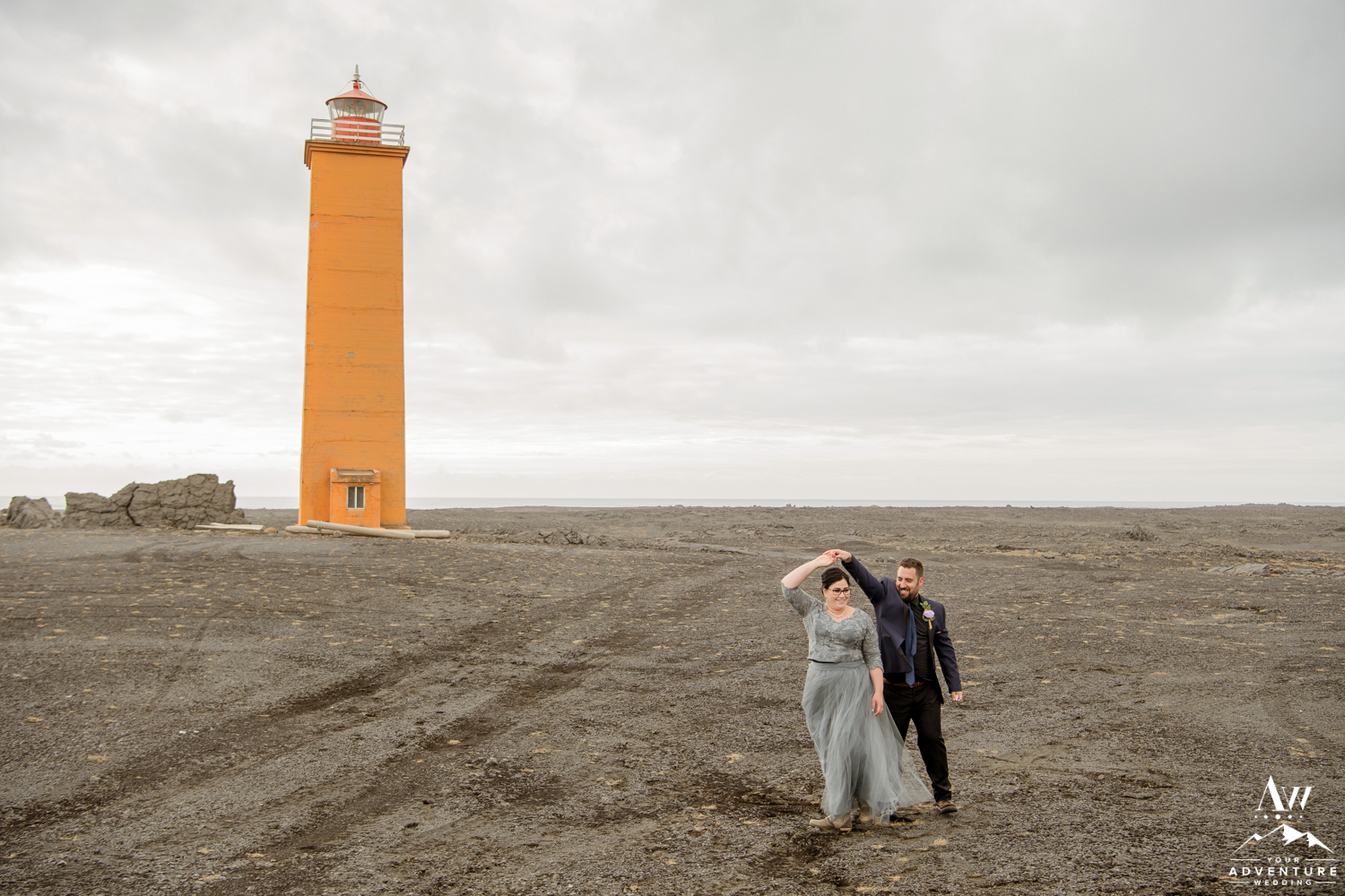Having your first dance twirling together on a black desert in front of a historic lighthouse is such a dreamy thing to do on your Iceland elopement adventure! Props to Heather and Dane for going against the traditional norms of having their first dance indoors!