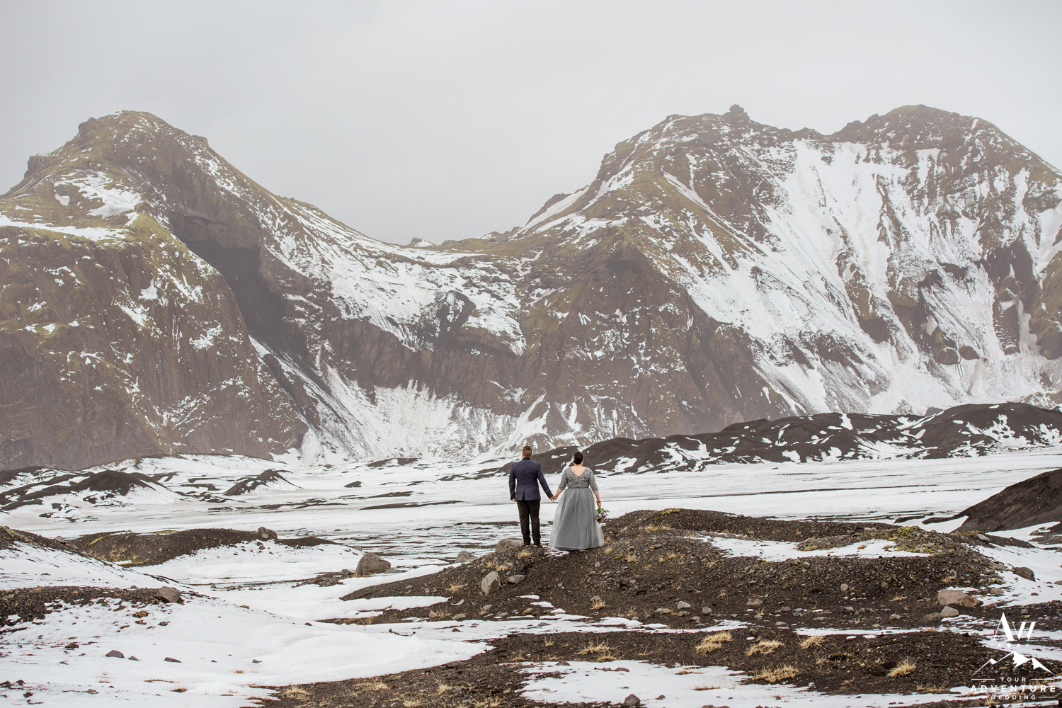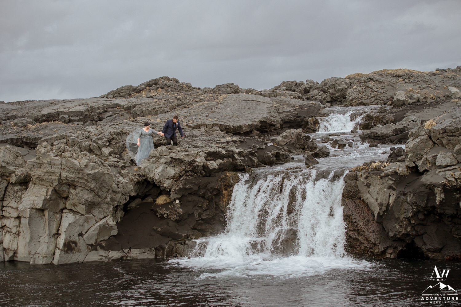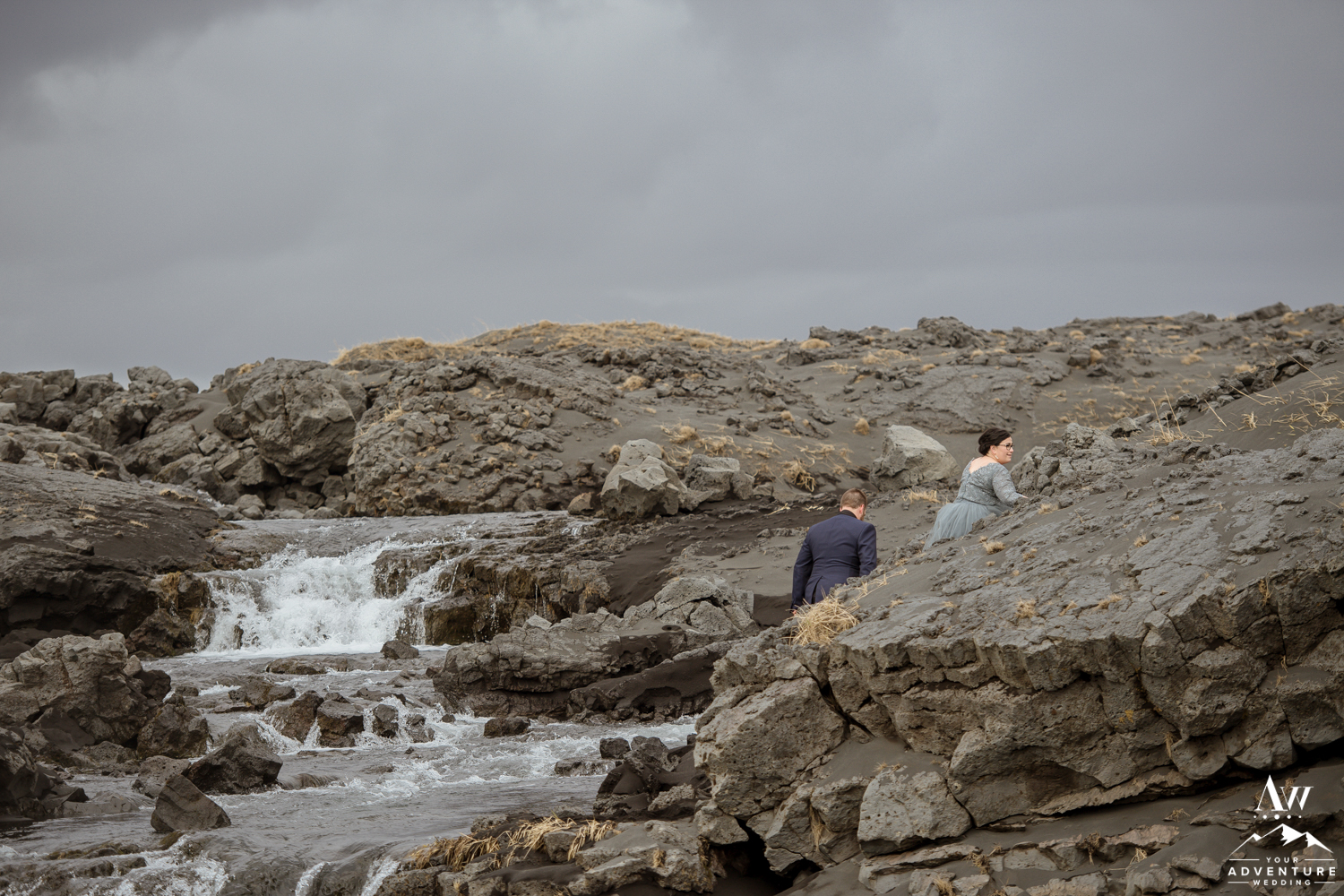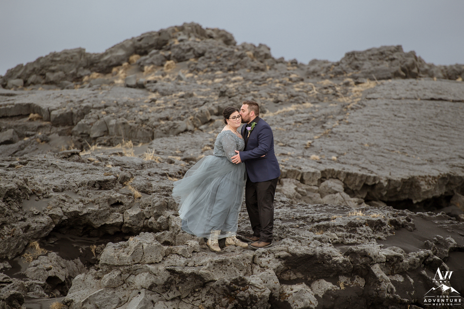 Special Note: The bride and groom (and all Iceland wedding photo and film teams) wore helmets in all dangerous and/or unstable spots as directed by our adventure wedding safety team. The bride and groom only took their helmets off in 100% safe areas for a few minutes for Iceland wedding photos and video. Our Your Adventure Wedding team takes safety very seriously!