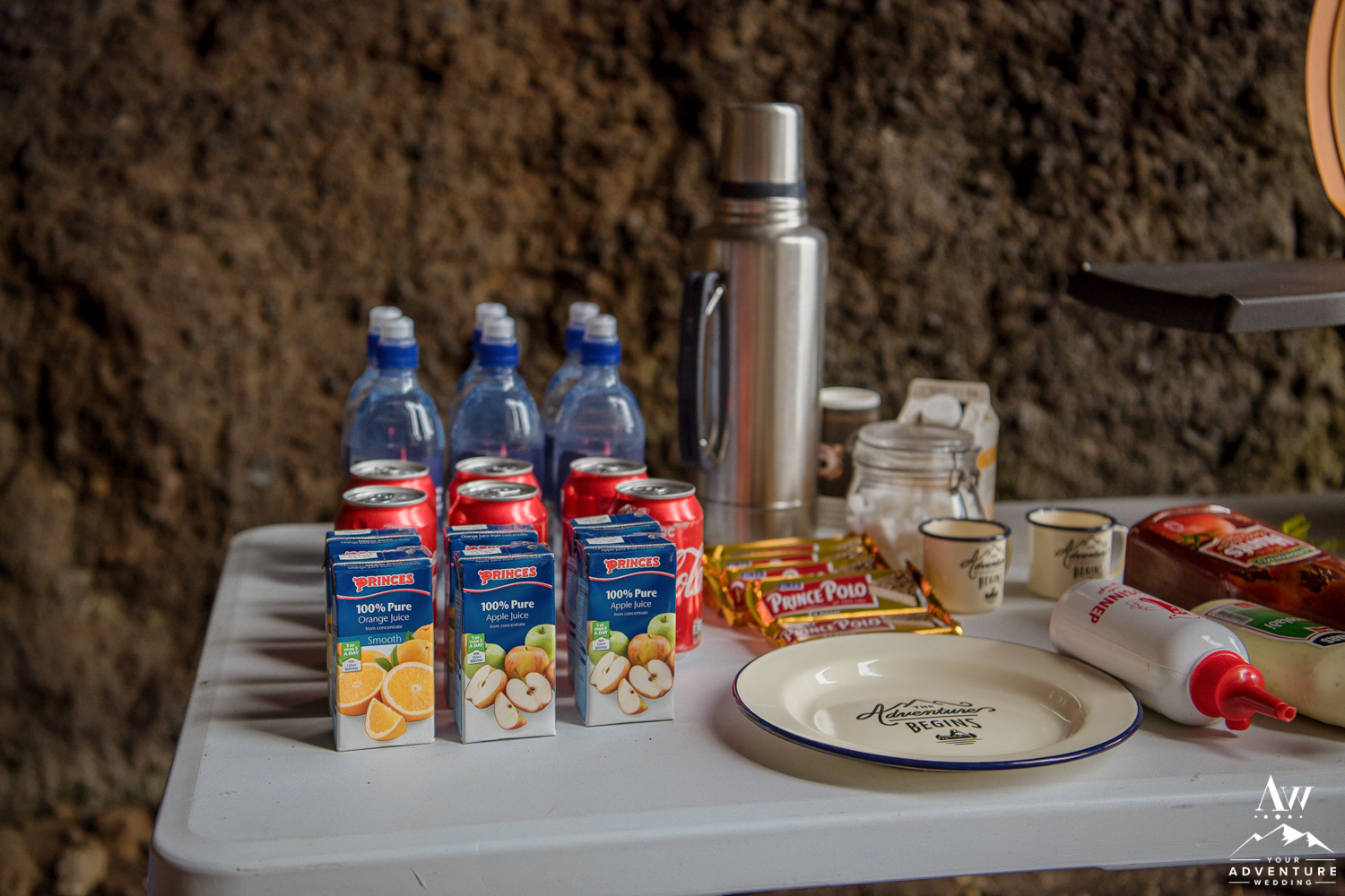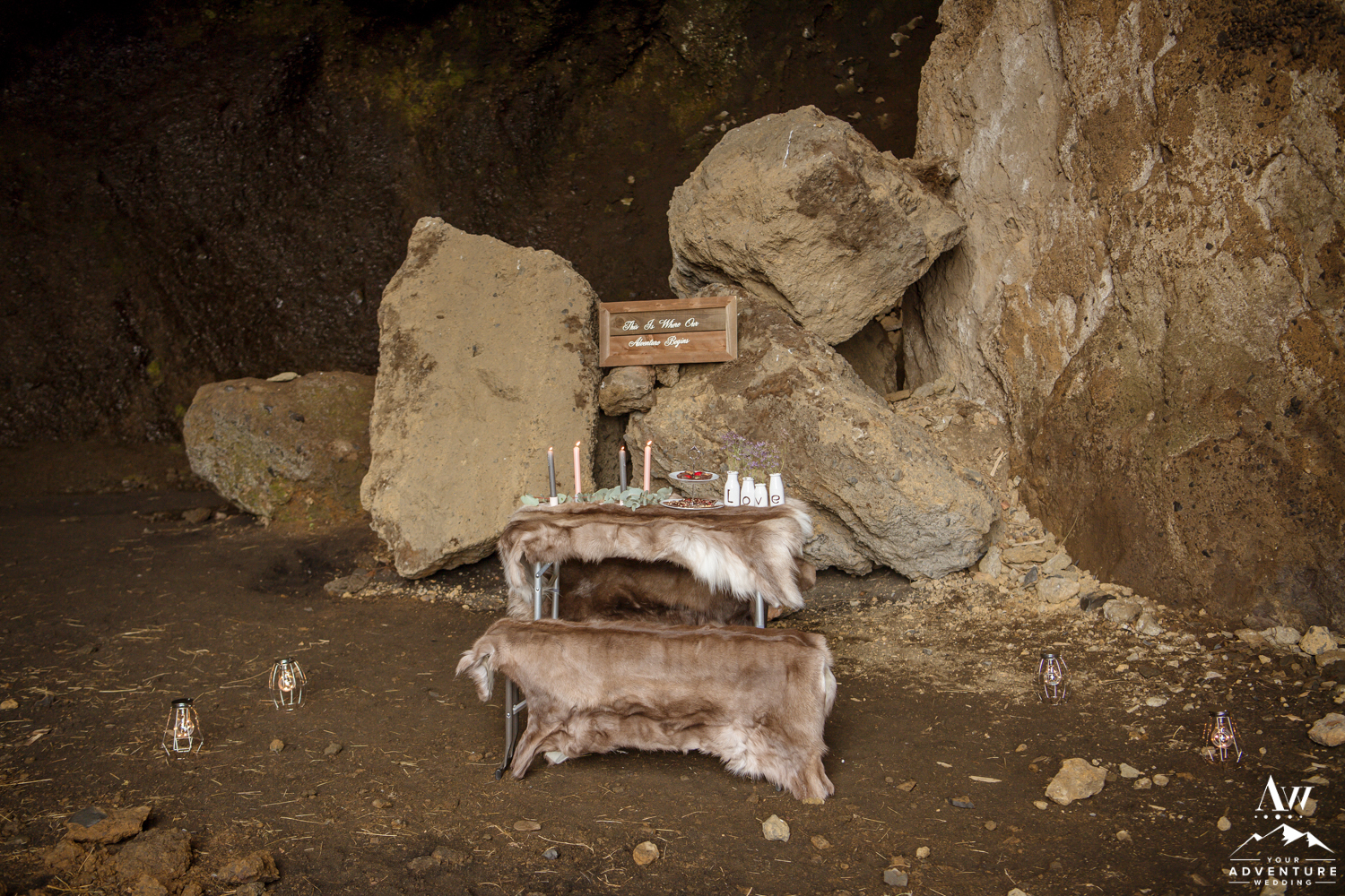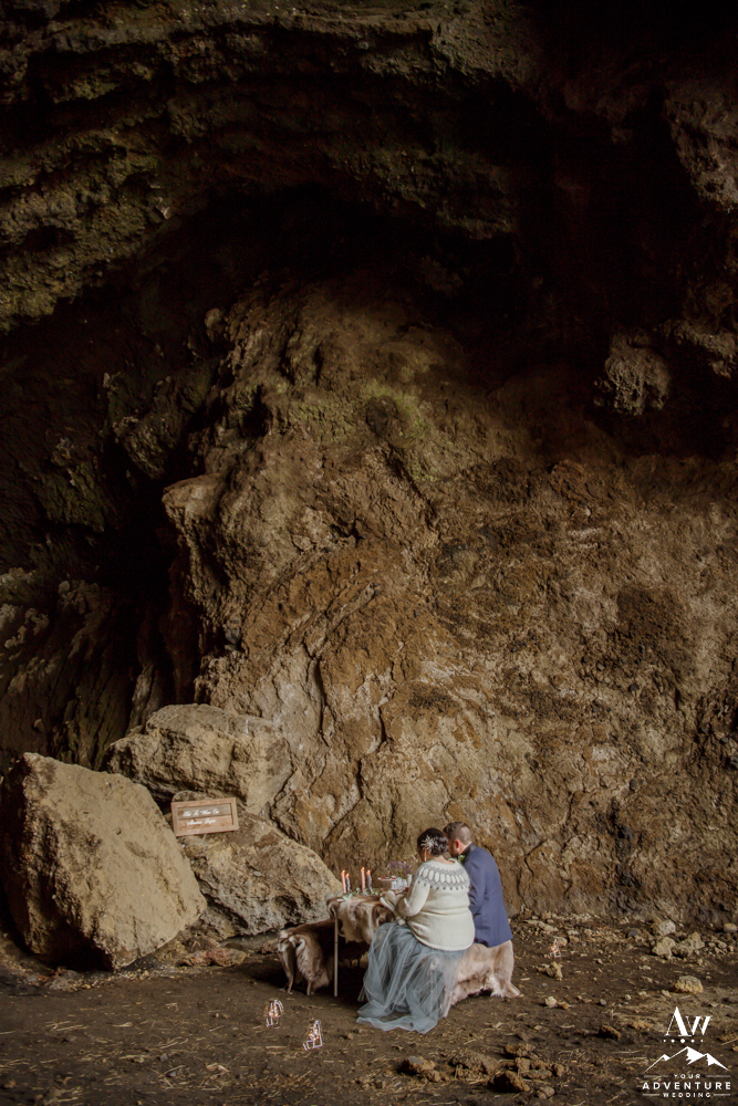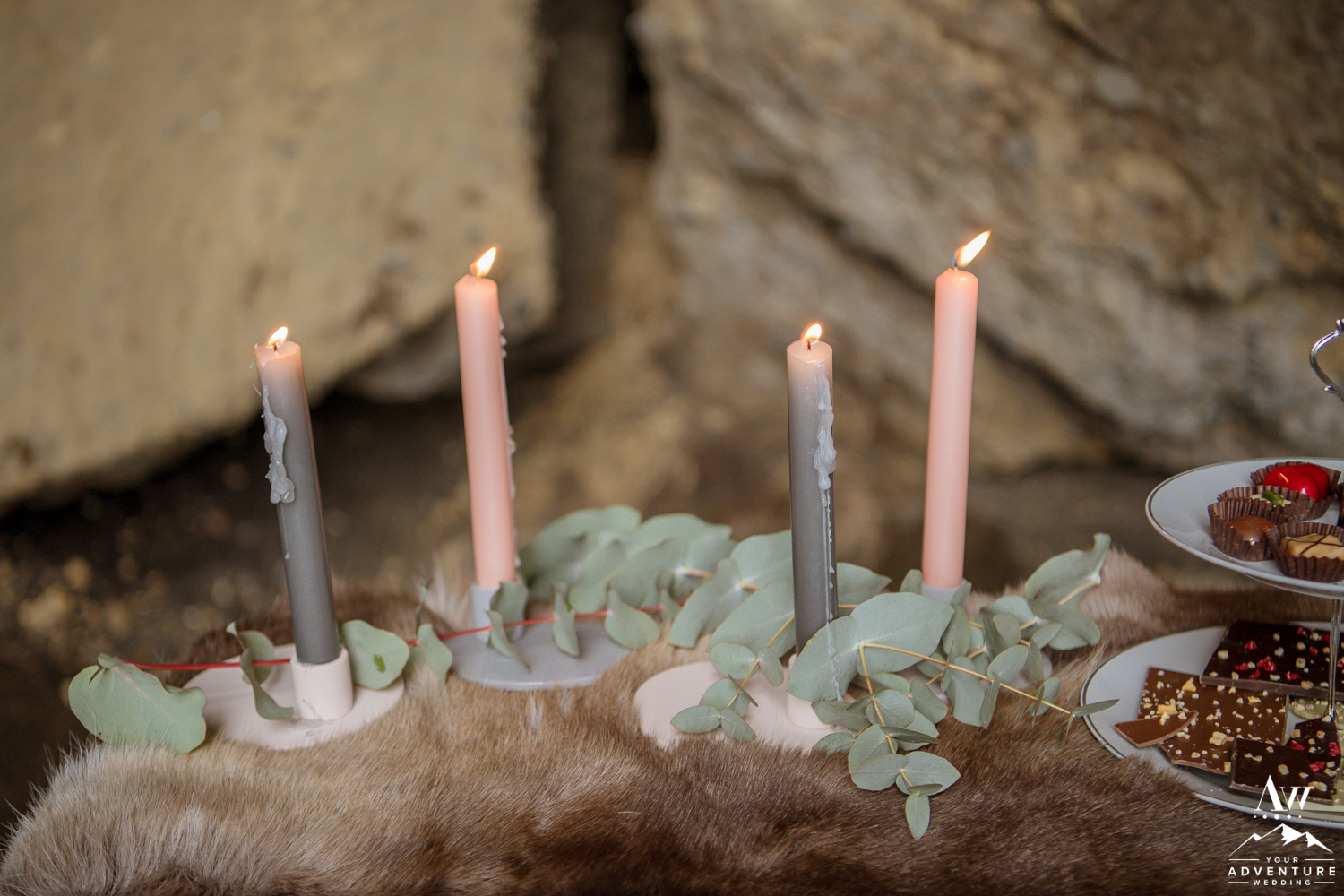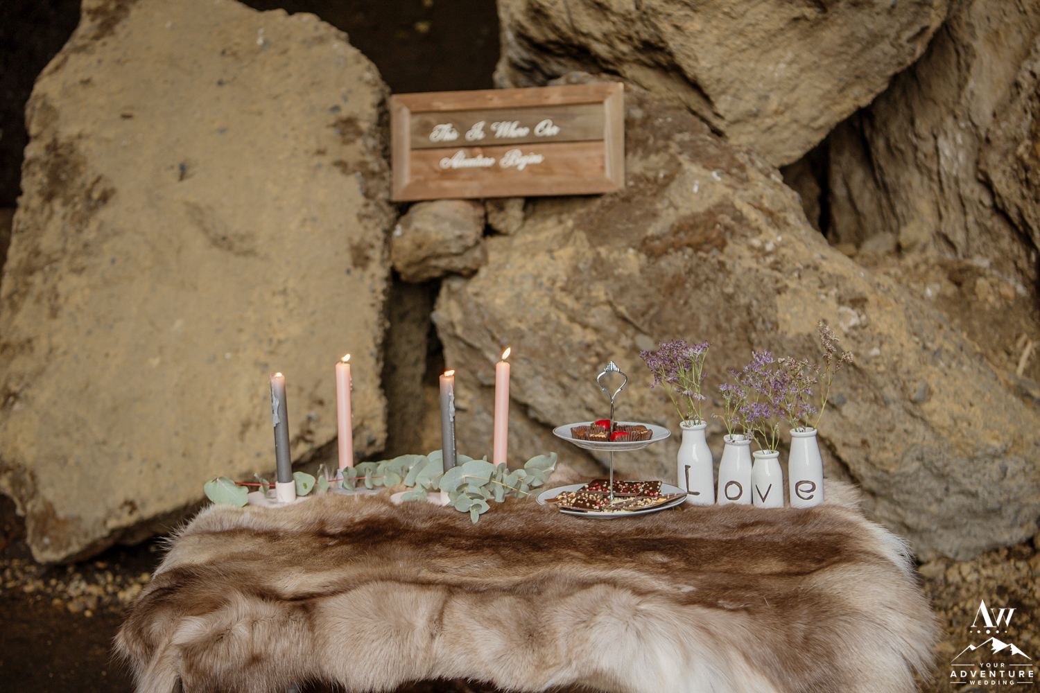 Having a luxury elopement in Iceland typically entails a gorgeously styled picnic lunch somewhere AMAZING! Heather and Dane indulged in a glorious picnic inside of a cave during their adventurous elopement in Iceland. They ate traditional Icelandic hot dogs and savored delicious artisan chocolates from a local chocolatier! The theme of the Luxury Winter Elopement picnic incorporated cozy reindeer furs, adventure, and the colors or gray and soft pink. It was so so so pretty!!