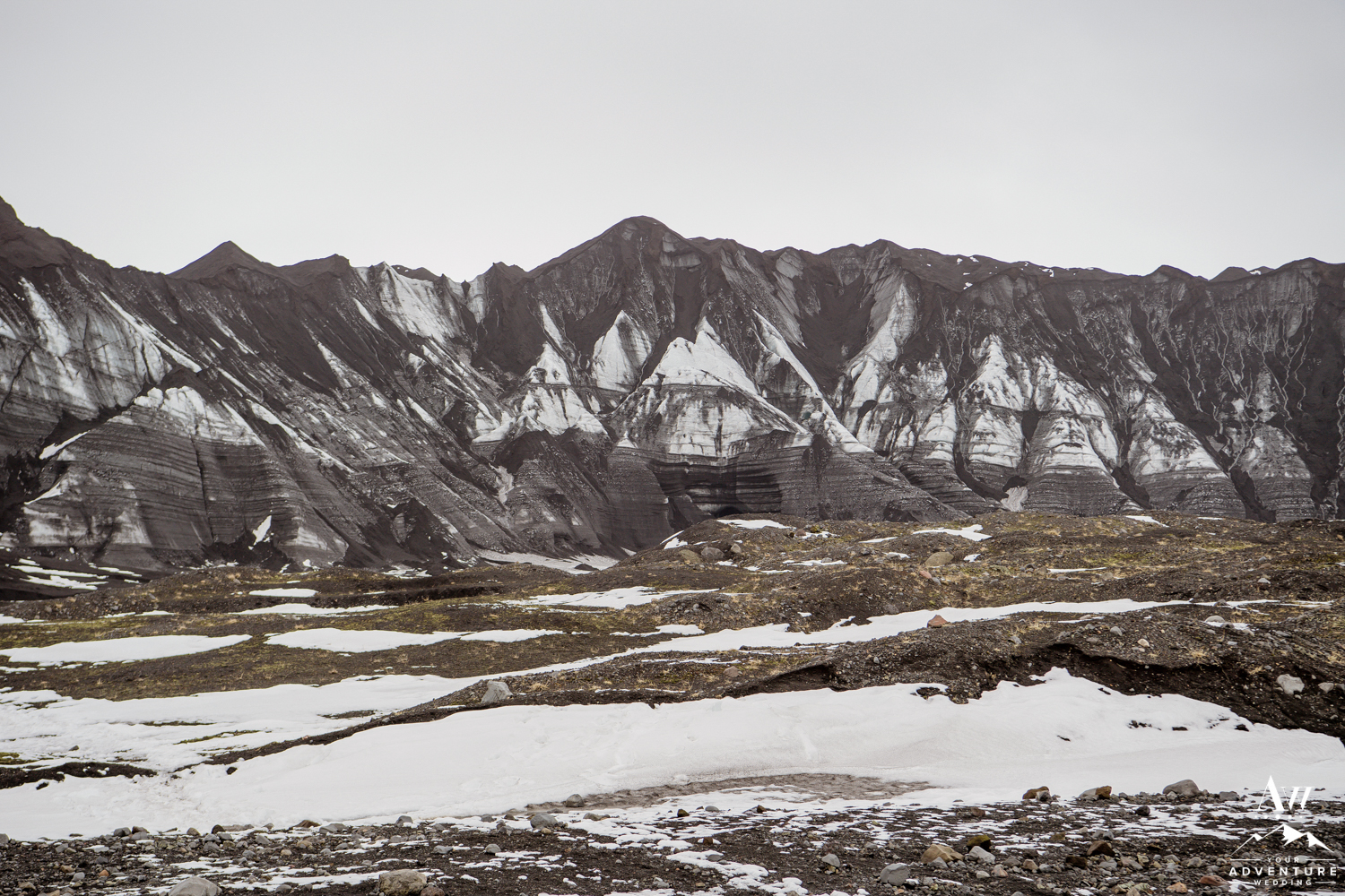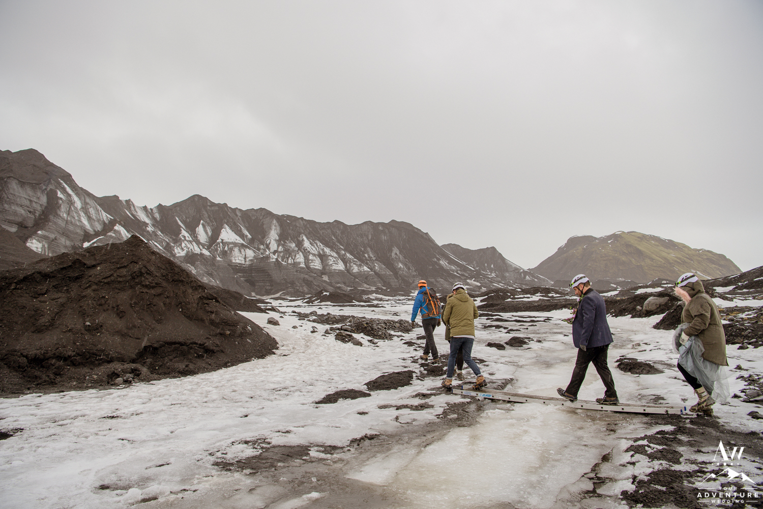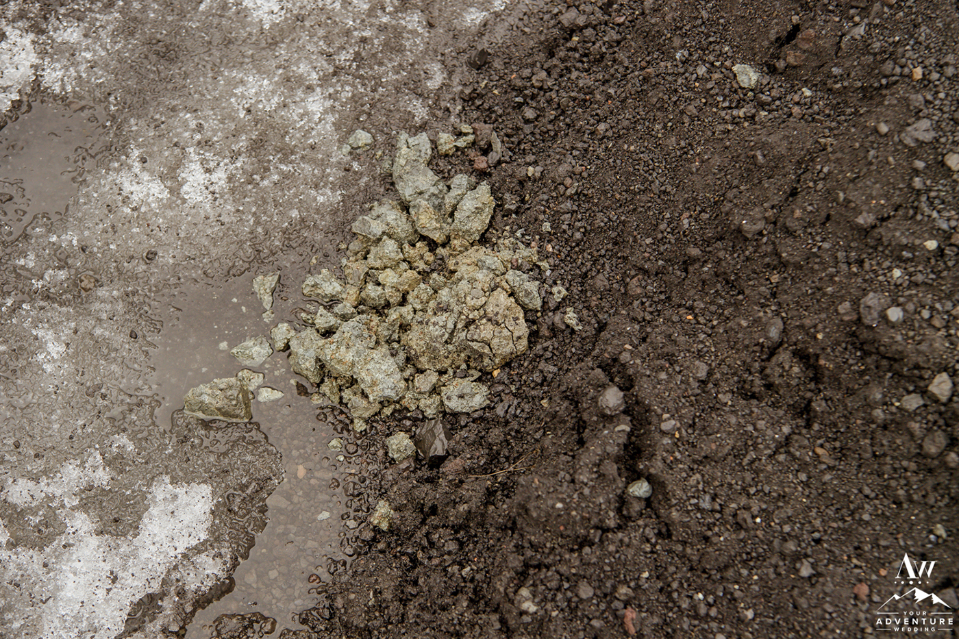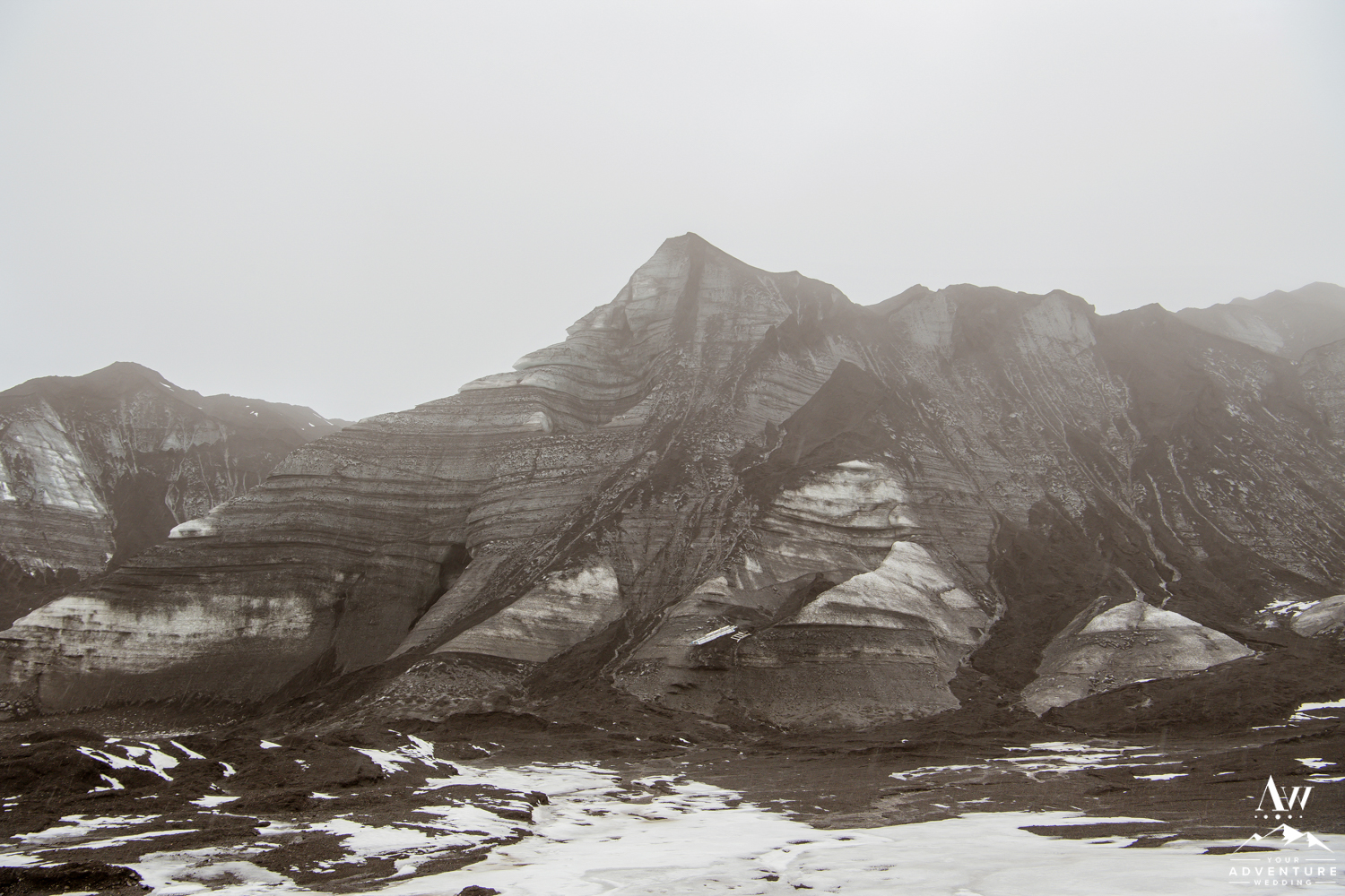 When you visit Iceland in April, there is a very good chance you can have the opportunity to journey to an ice cave during your adventurous elopement in Iceland. As one of Heather and Dane’s many Iceland wedding exploration spots they craved to visit a black glacier area and loved the idea of putting on crampons to hike up to an ice cave! It was a unique experience for them to have on their adventure wedding day!