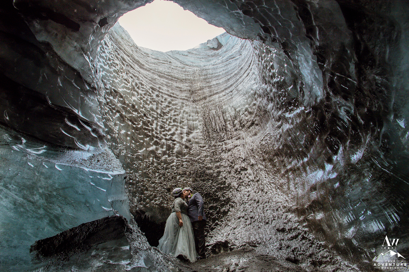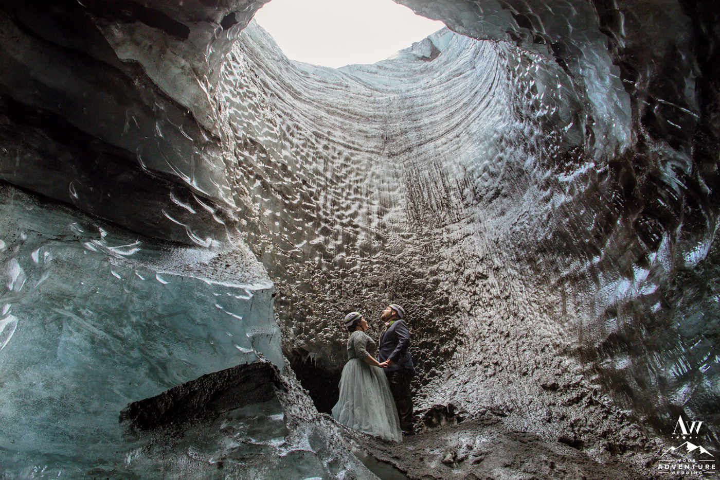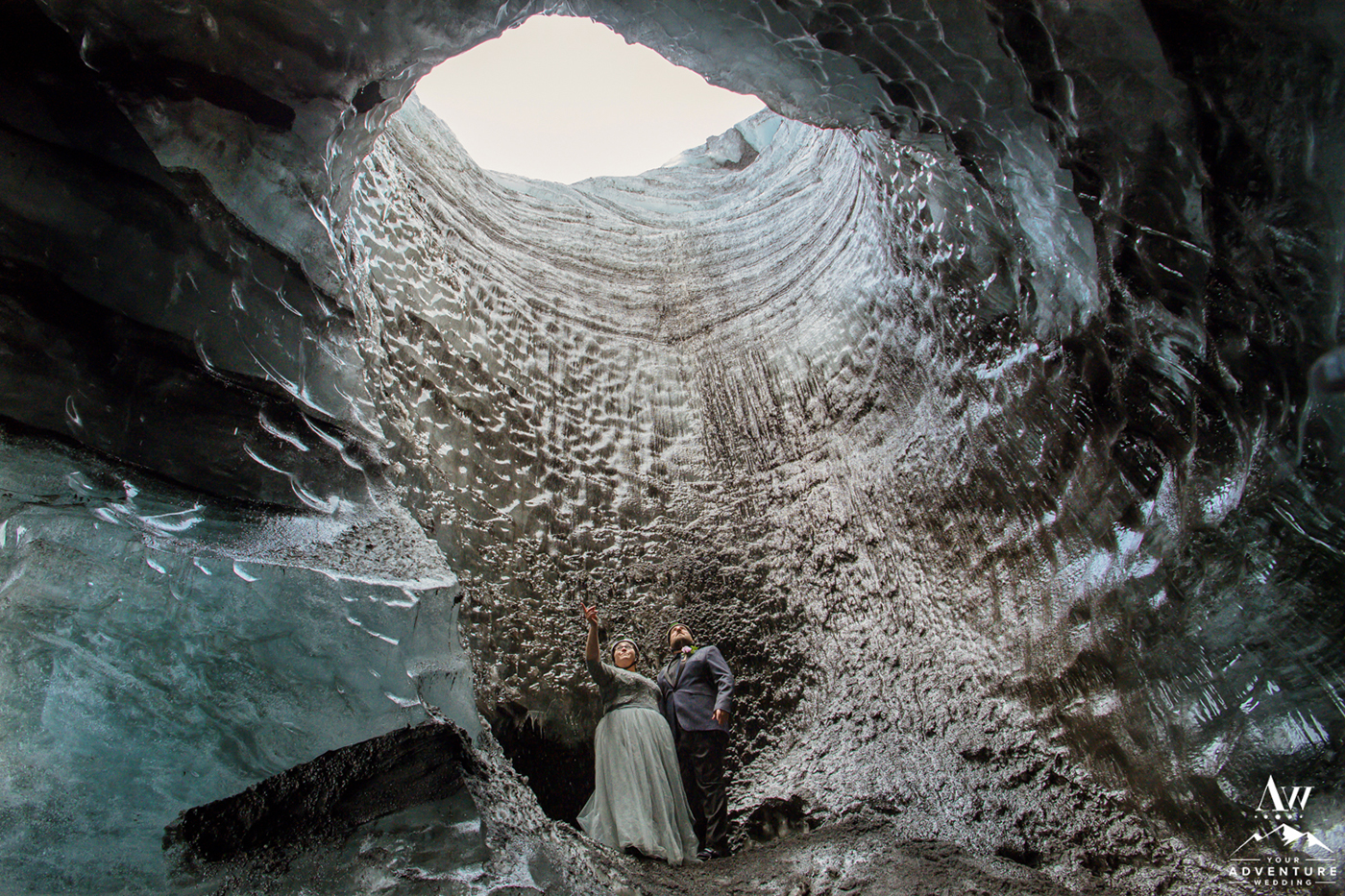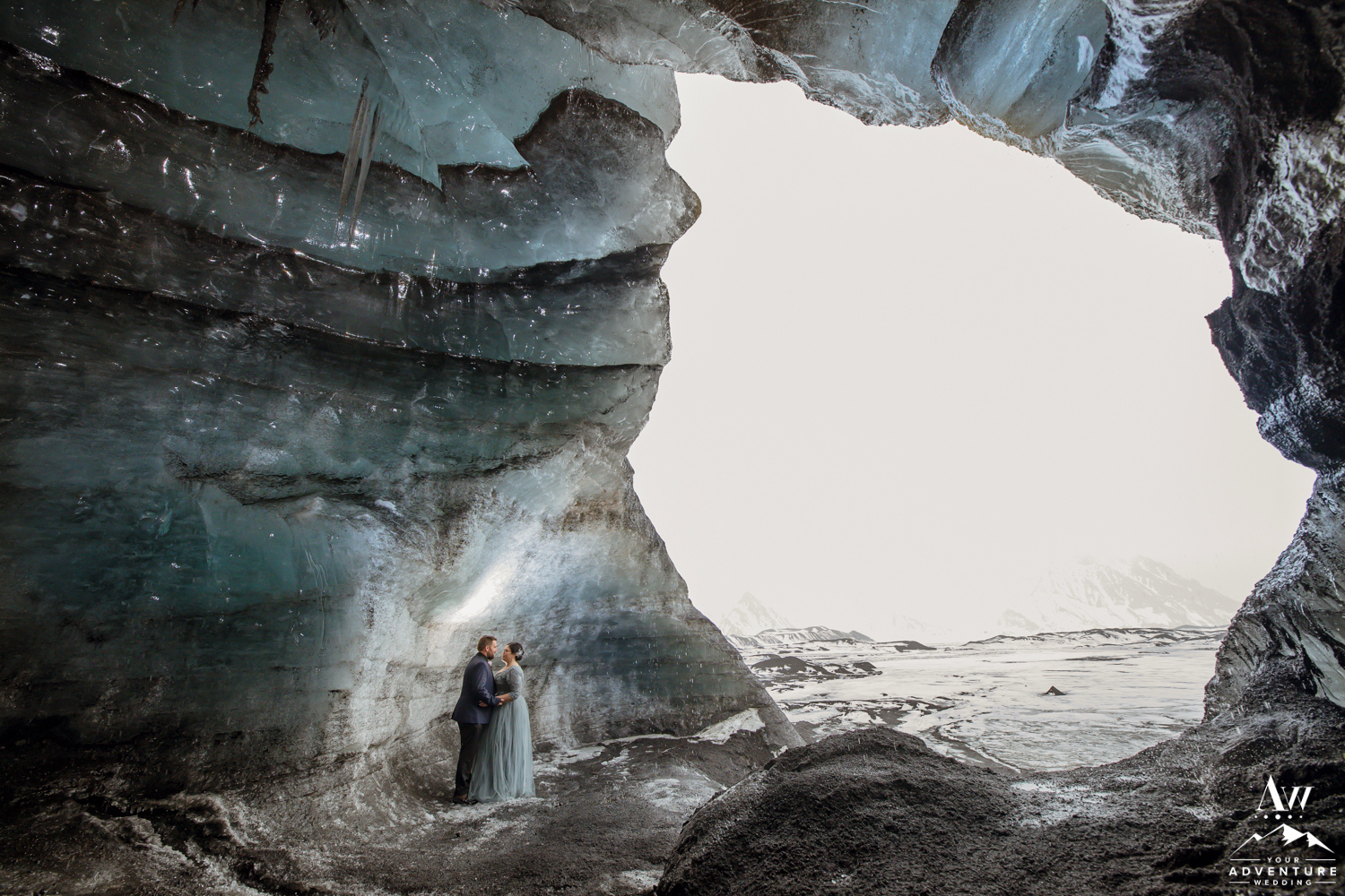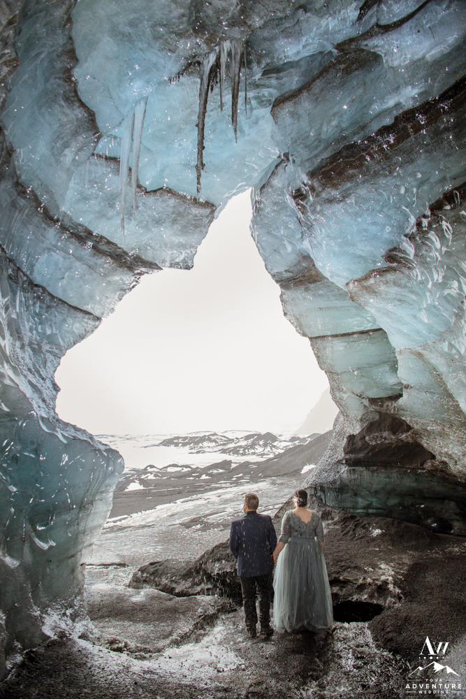 Exploring a natural cave during your Iceland wedding day is such a unique intimate experience!