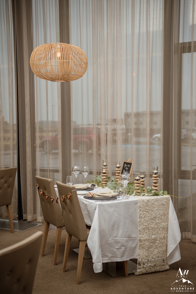 After such an epic day of adventuring around to so many private locations, ending your luxury winter elopement in Iceland with a styled reception for two is THE BEST! Treating yourself to sweet little details really makes you feel special and completes the day so well. The theme of Heather and Dane’s luxury reception for two was “You Are my Greatest Adventure” which included basalt rock candelabras, eucalyptus, and “Explore” napkin rings. They ended their night with delighting in a traditional heart shaped Iceland wedding cake called a Kransakaka. Our Iceland wedding planner team even topped it off with LOVE sparklers from our friends at TOPS Malibu.