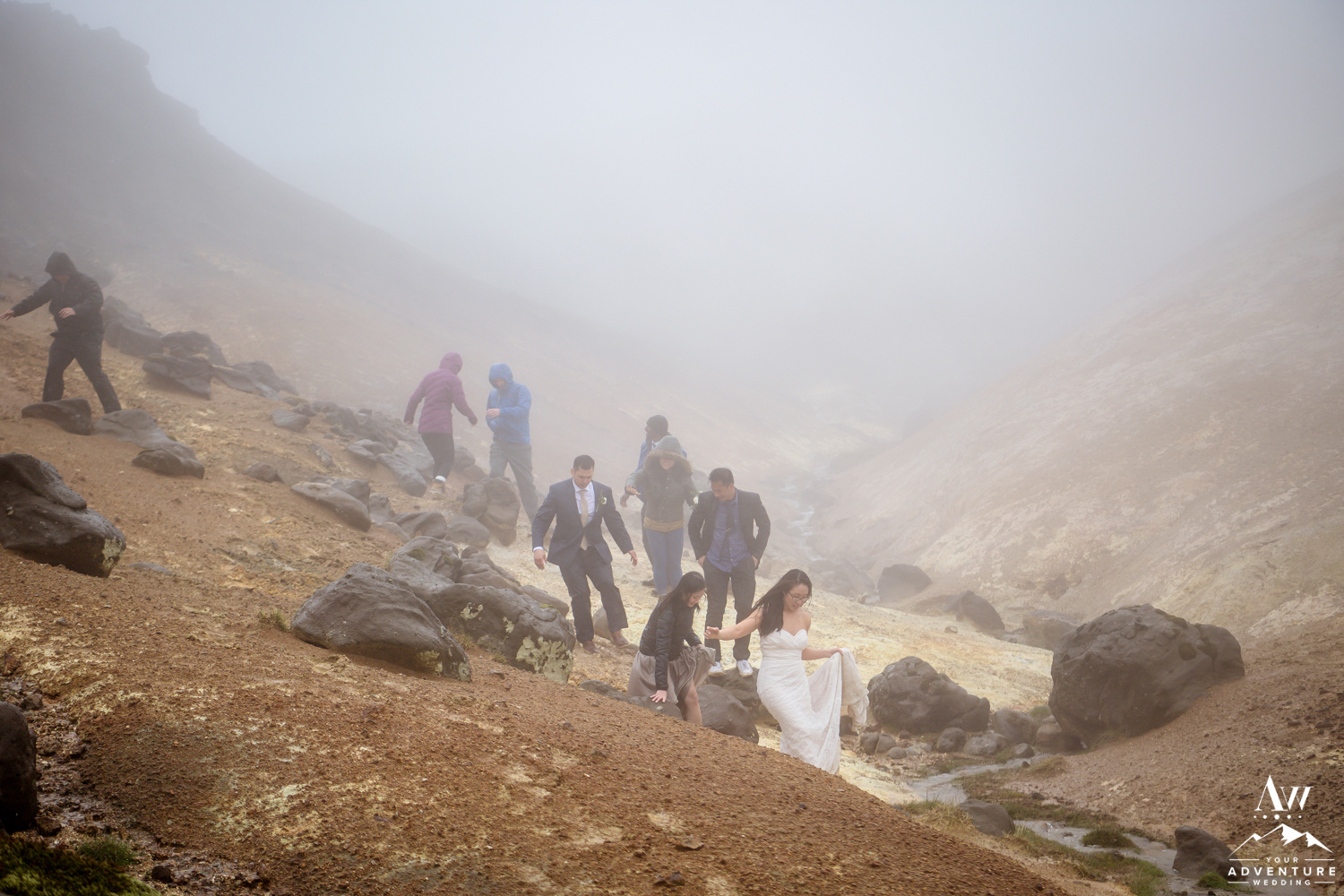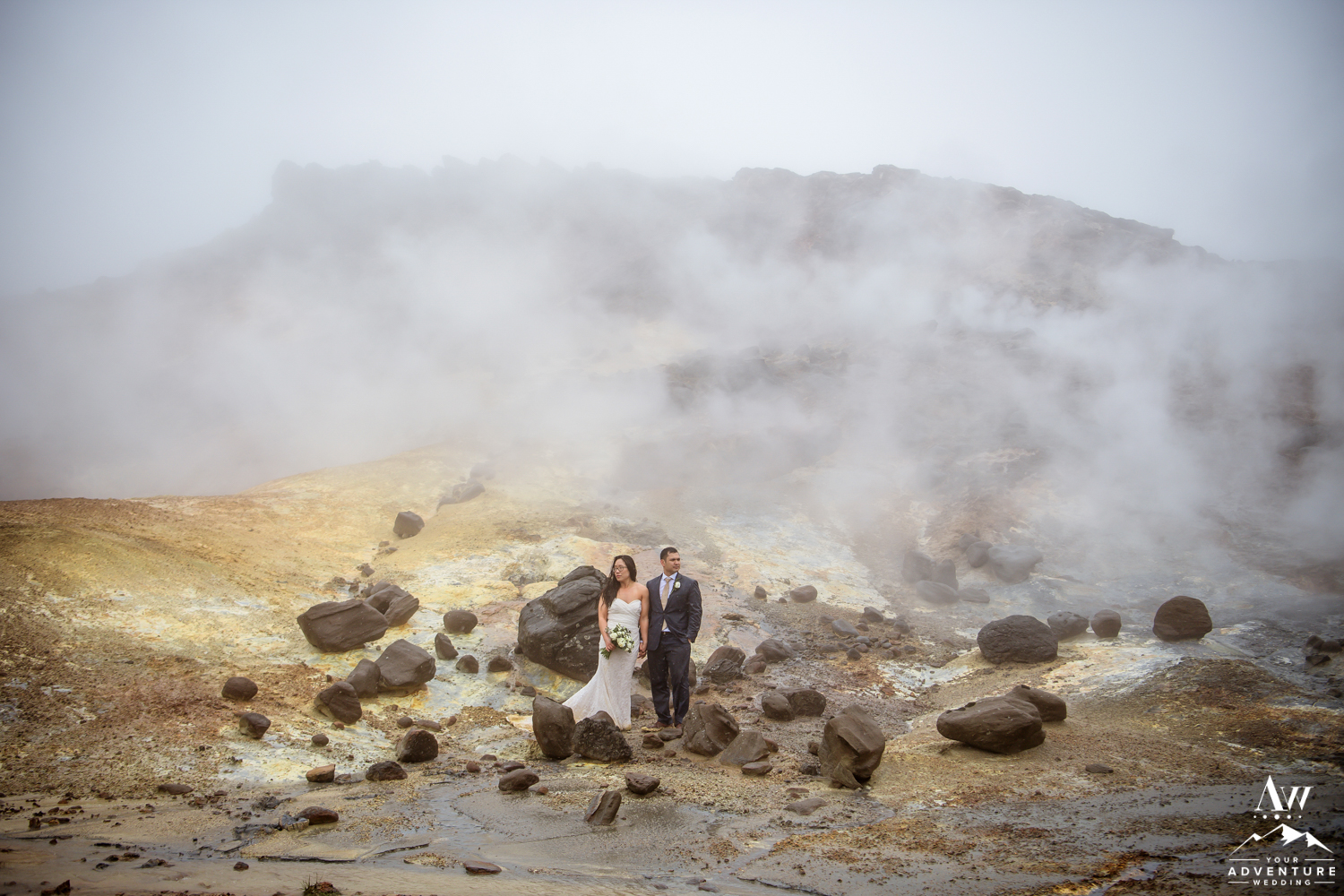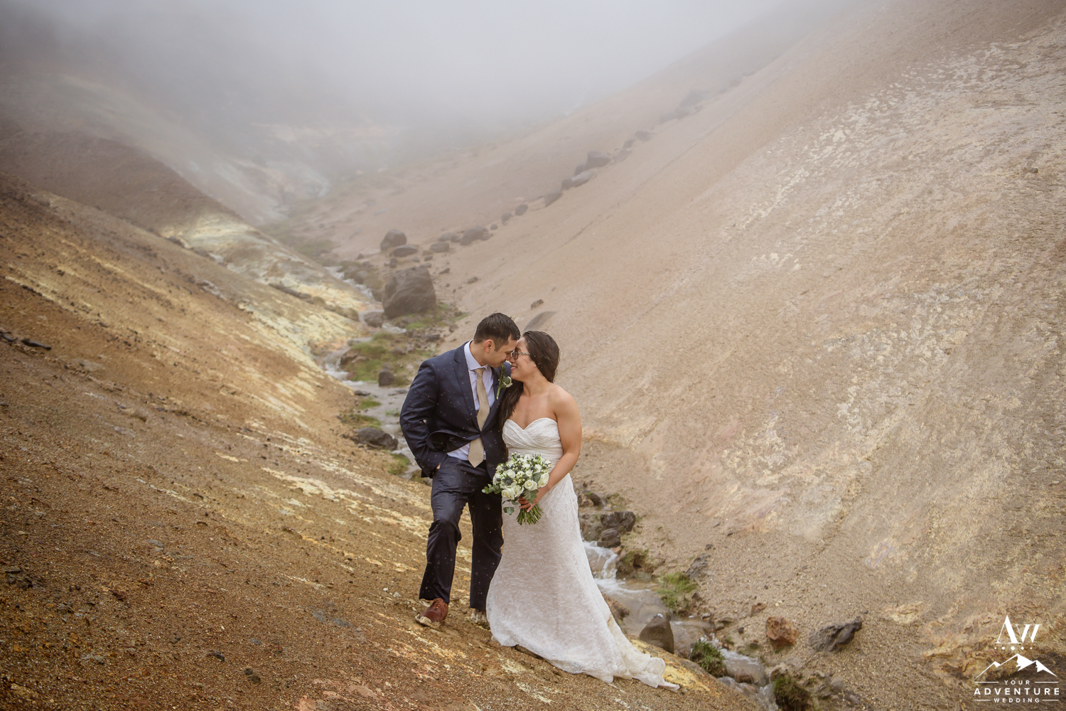You cannot have an adventurous wedding in Iceland without visiting some element of “fire and ice” it’s just not complete without incorporating it! Sarah and JB fell in love with one of our private geothermal areas our Iceland Wedding Planner team has access to. This was likely the heaviest rain they encountered all day but they freaking bounced through it like seasoned badasses and made it look oh-so romantic! Fun Fact: There had been so much rain that day that our geothermal area had sprouted a new waterfall (usually it’s just a faint trickle)! Love rainy Iceland wedding days!