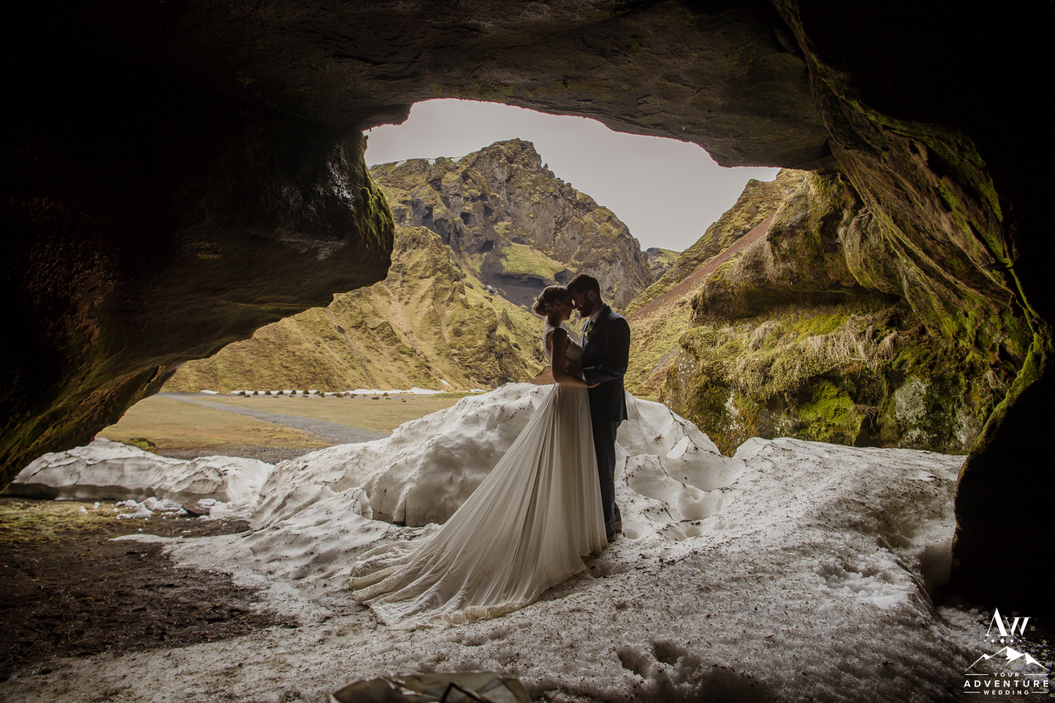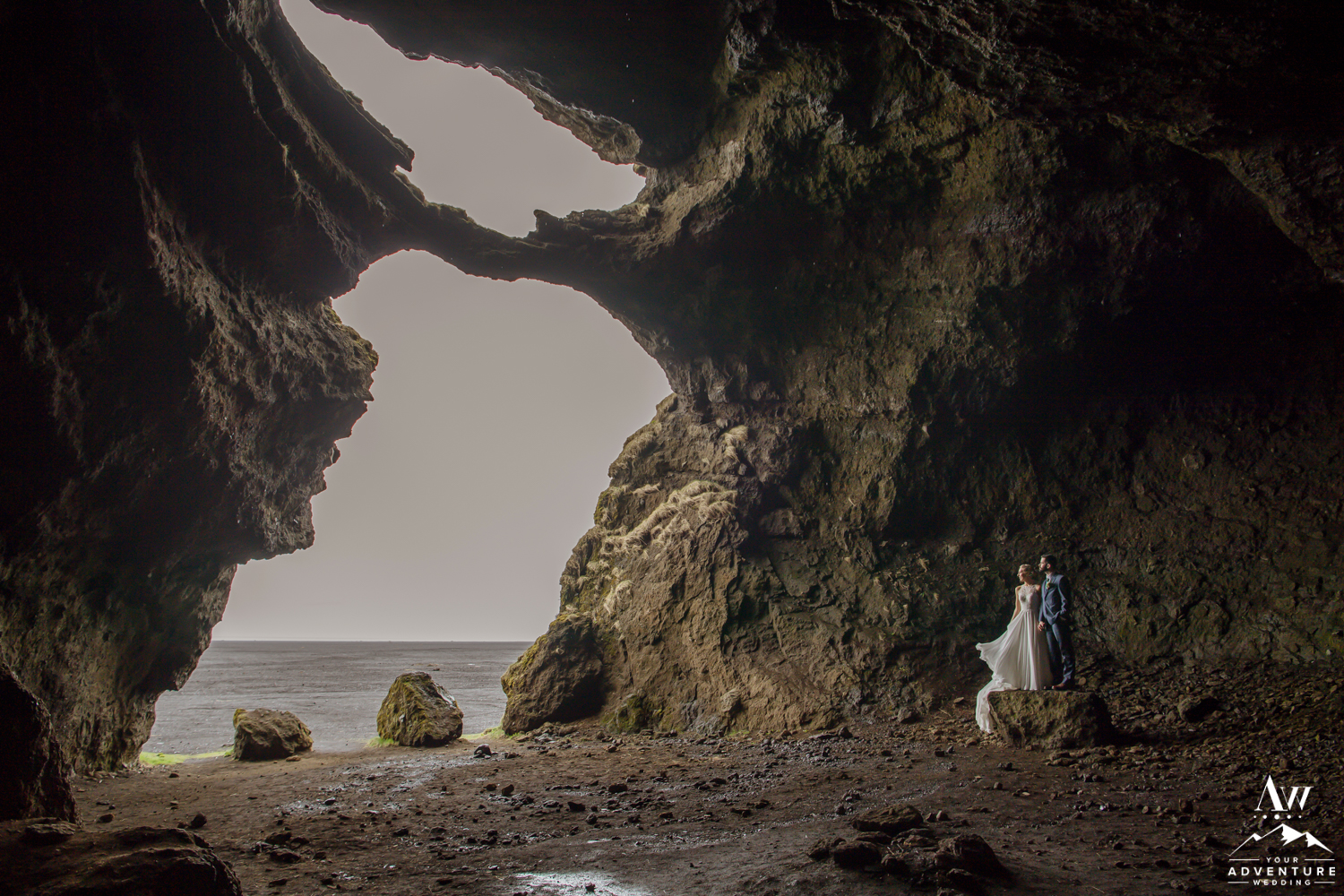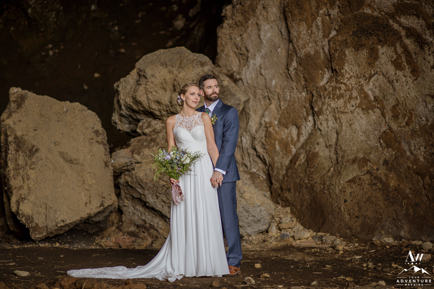 Having your Southern Iceland wedding adventure photos taken in a natural cave is unique experience. Many times you get sense of being a part of history, realizing how the cave was likely used to house people or animals away from the extreme weather conditions. With Jacalyn and Michael also being interested in caving throughout their relationship they enjoyed having their intimate Iceland wedding photos taken in this beautiful natural cave!