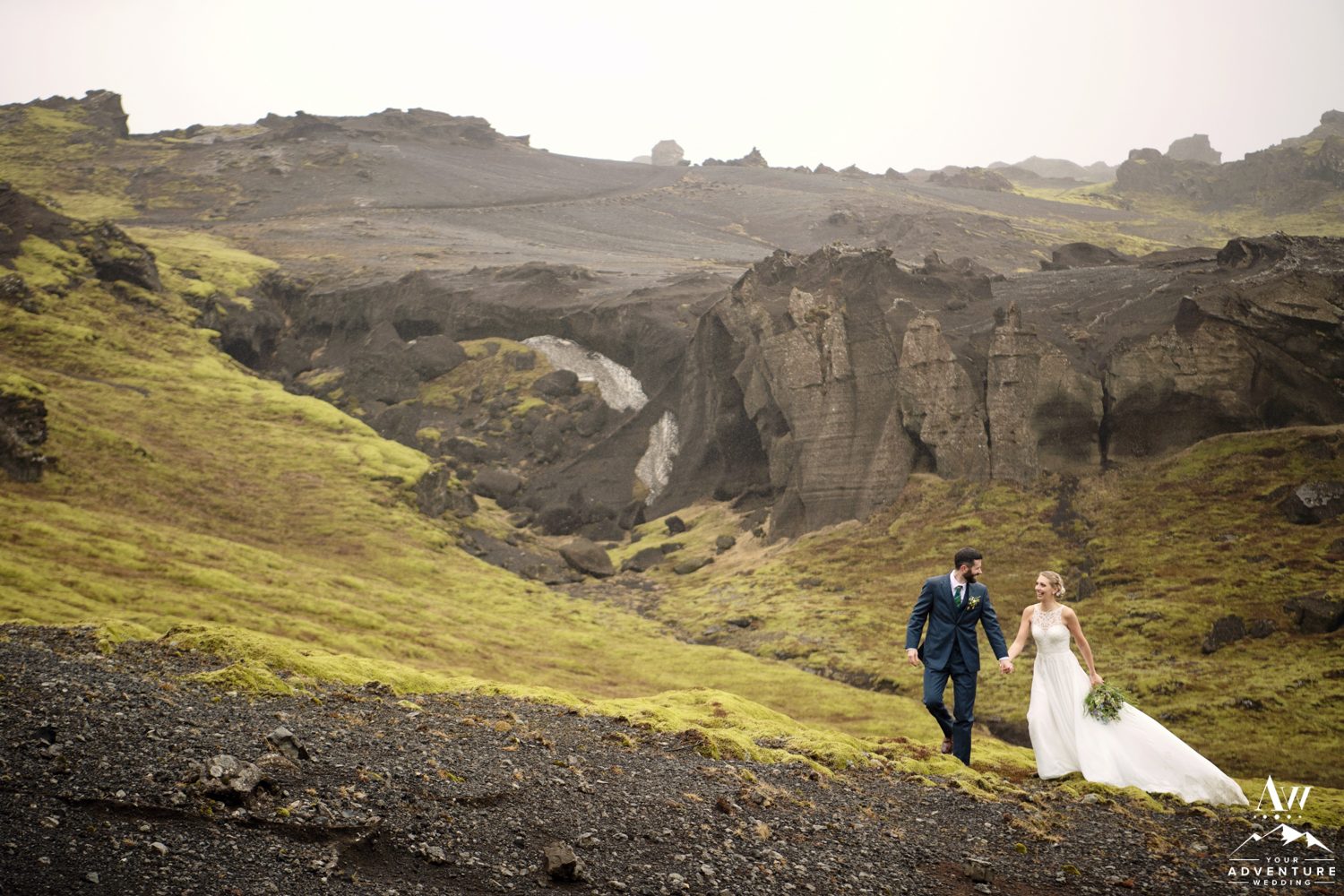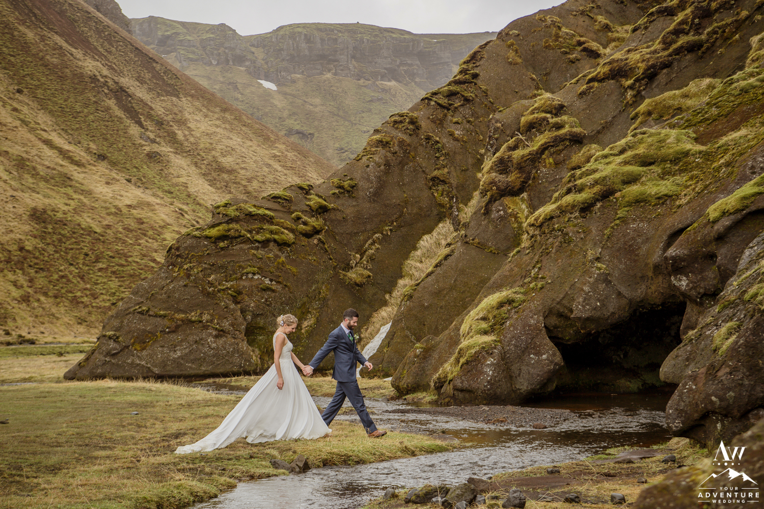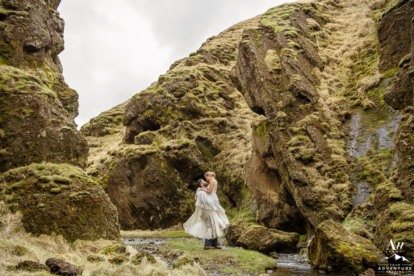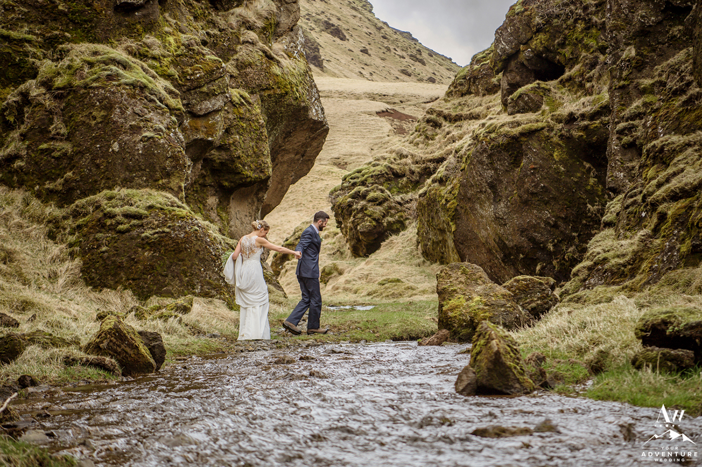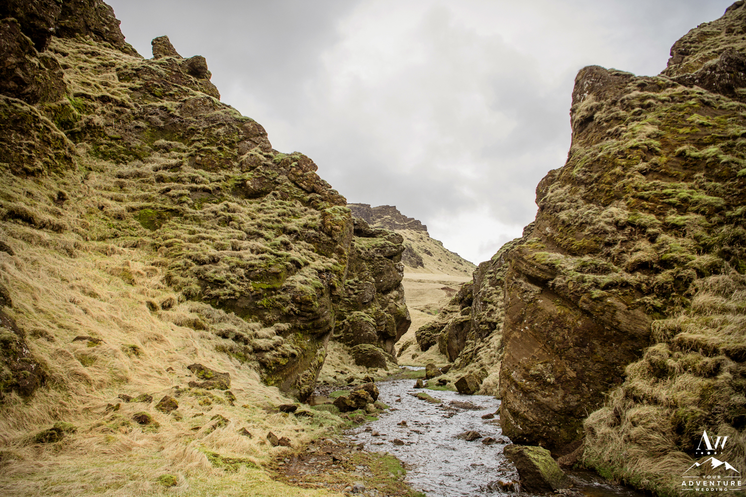 Canyons are typically created when a glacier recedes. Canyons can be wide, narrow, long, and vary in height and colors. One of our favorite Iceland wedding locations is a narrow canyon which opens up to an incredibly beautiful wide canyon. The area feels very intimate and alive! An ideal adventure wedding location stop for Jacalyn and Michael to explore together!