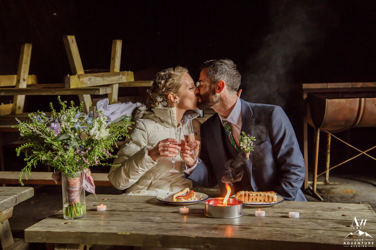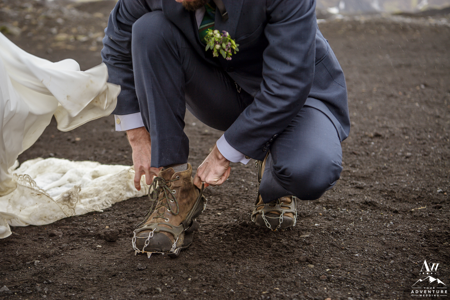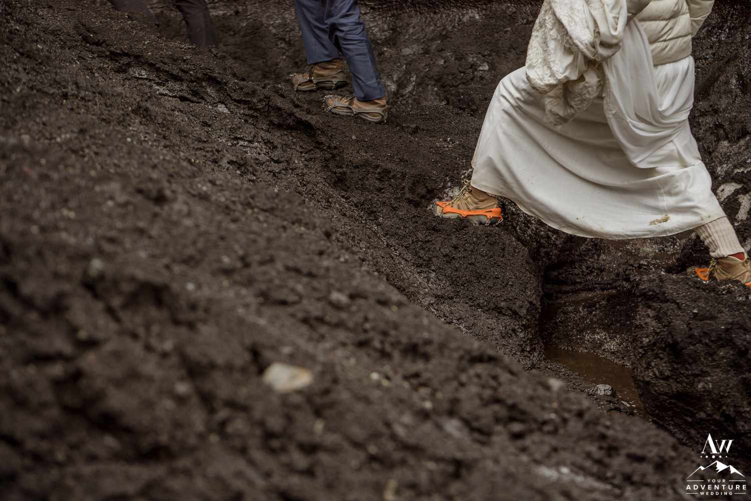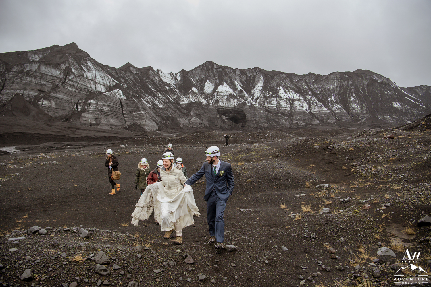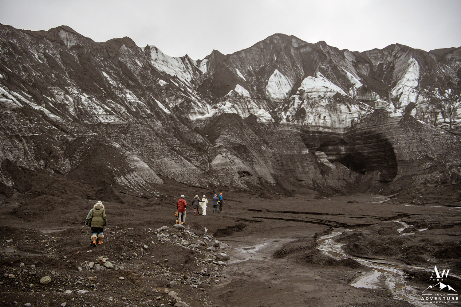 Planning a picnic lunch in a cave is always a fantastic idea rain or shine. In Jacalyn and Michael’s case it shielded their group from experiencing a freak serious hail / sleet storm! Not to mention that having a hot meal (AKA, Traditional hot dog bbq) is always a great option so that you catch a second wind despite the weather becoming challenging. It can really make a huge difference in the attitude and the momentum of Southern Iceland wedding adventure!
