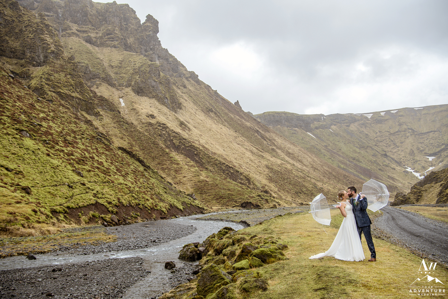 Hiring an adventurous wedding photographer in Iceland can be a tricky decision if looking outside of our Iceland Wedding Planner team. Mainly because most adventure wedding photographers cannot properly prepare or endure the crazy weather conditions (IE, heavy rains, extreme gale force winds, hail/sleet, or blizzard like conditions) and still create magical Iceland wedding photos. Our Iceland wedding photography team though, is always prepared and well versed. So when the weather turned on Jacalyn and Michael, they along with the photographer embraced it as a super fun part of the story that was being created!