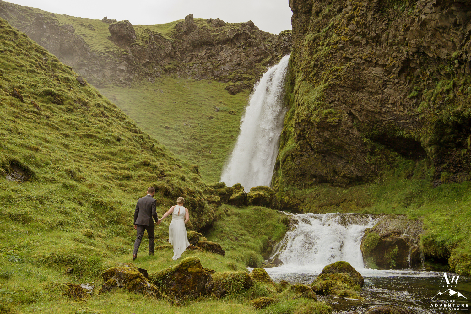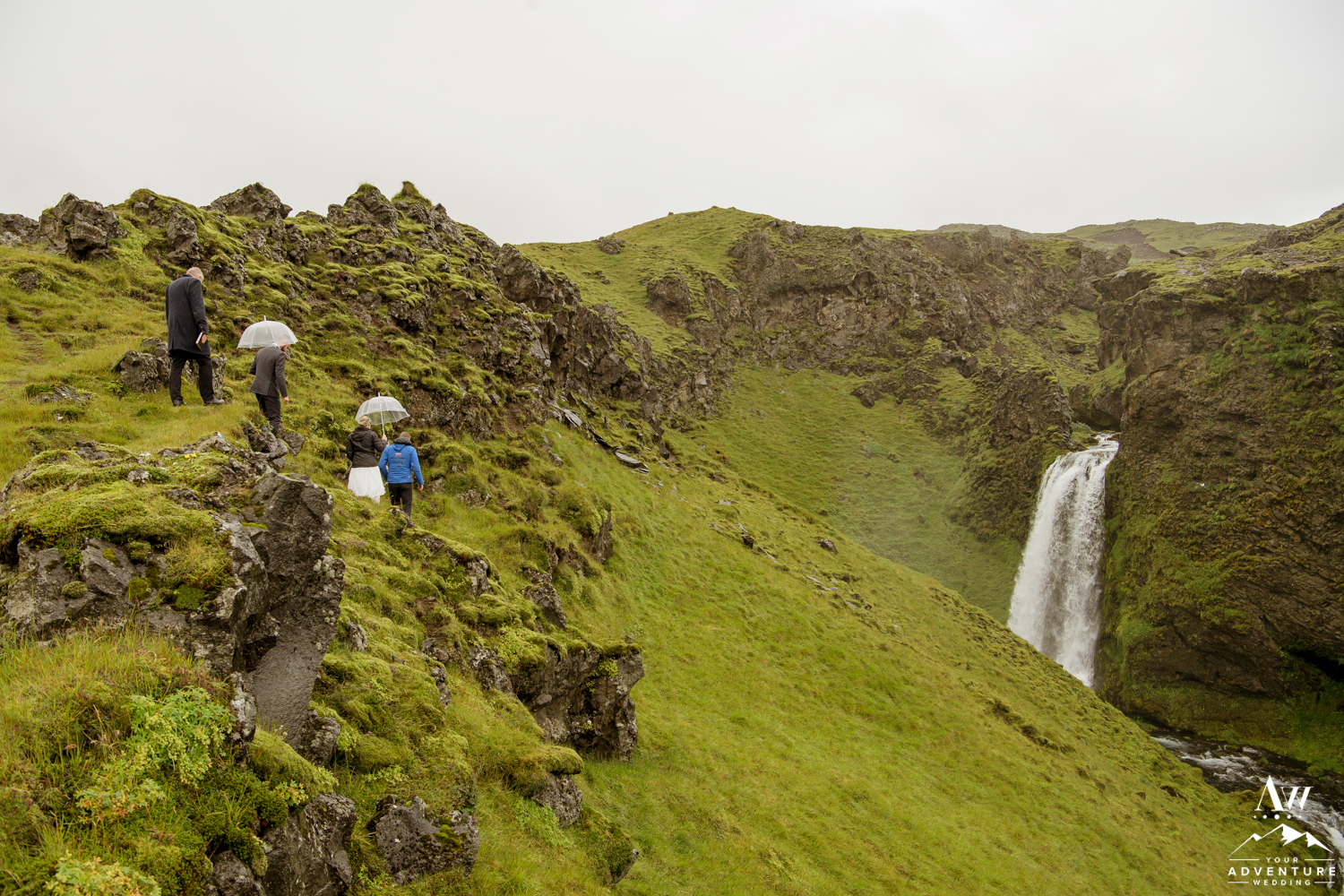 Adventure weddings happen rain or shine. You two need to be rugged enough to endure the crazy and ever-changing Icelandic weather. As we arrived to the start to the hike of the waterfall Sarah and Landan were doing to say “I do” at, it was raining and they freaking not only embraced it, but LOVED it! Hiking to your Iceland wedding ceremony location really gives you a connection with nature and a satisfying feeling of being badass #couplesgoals!