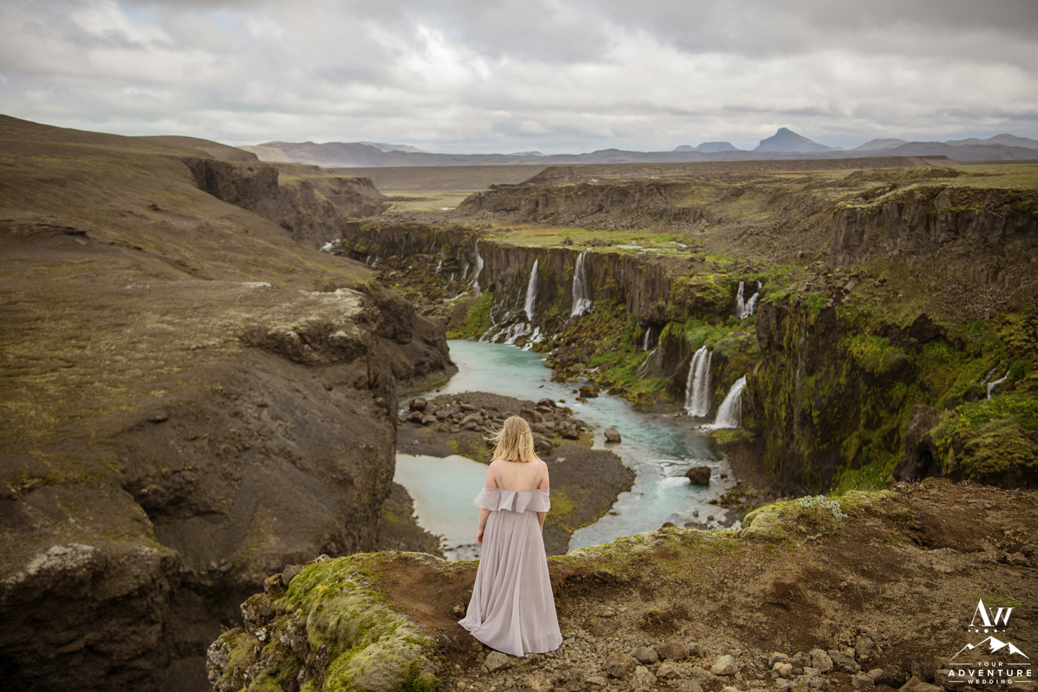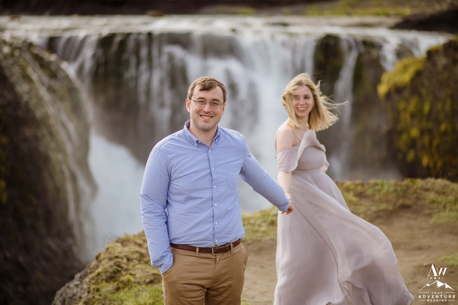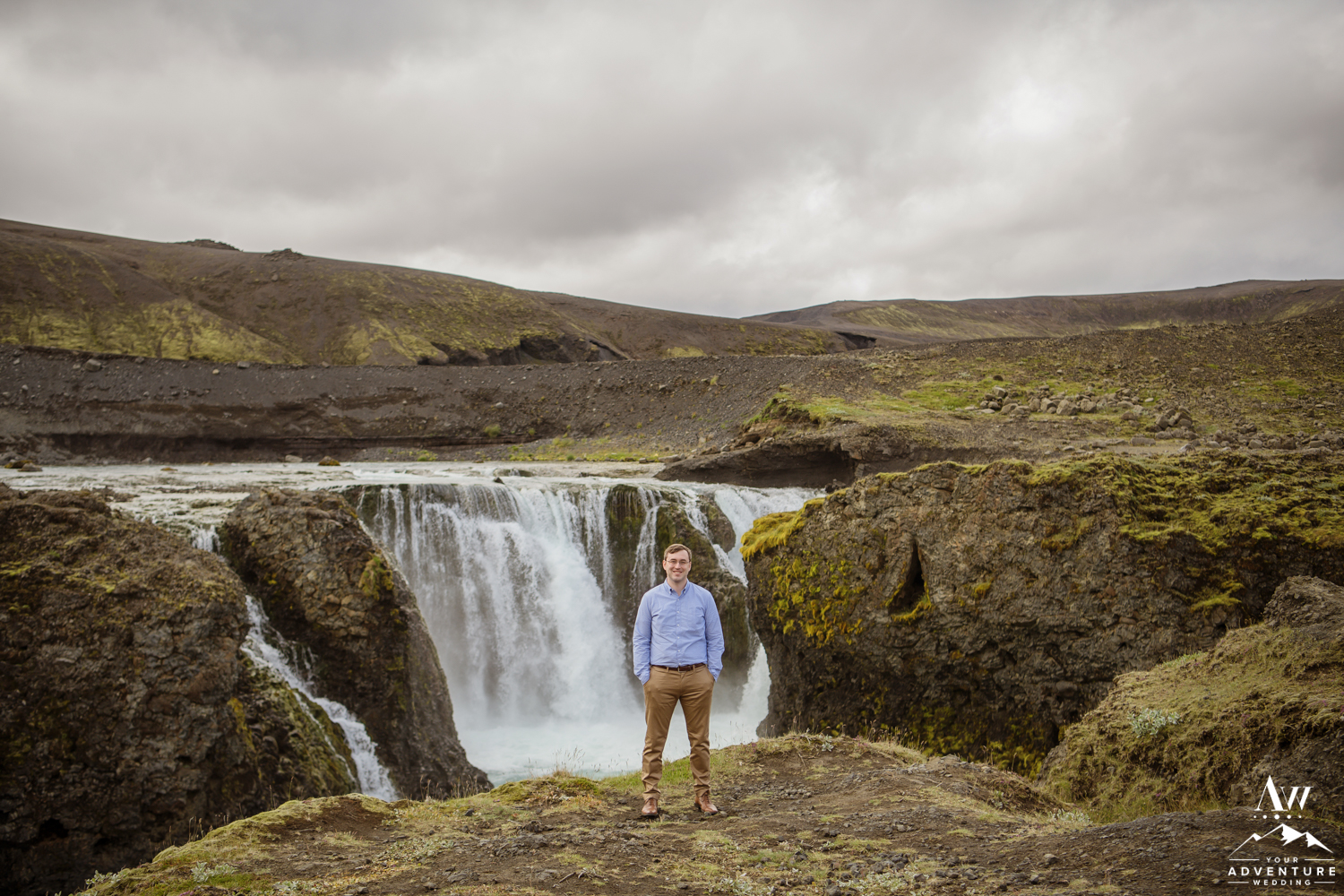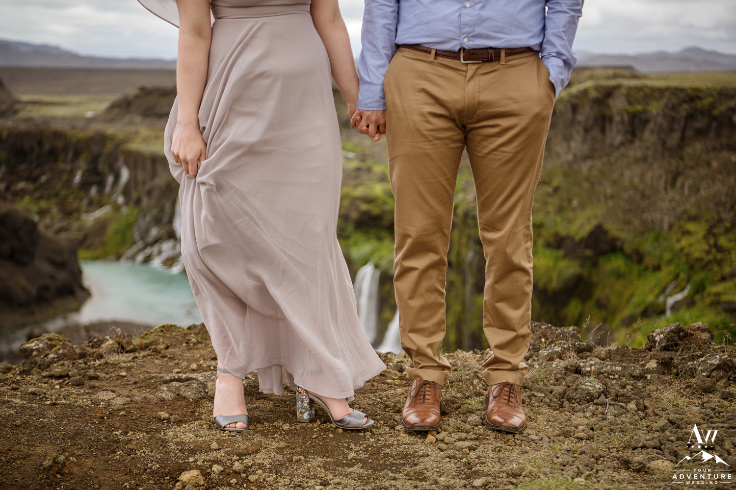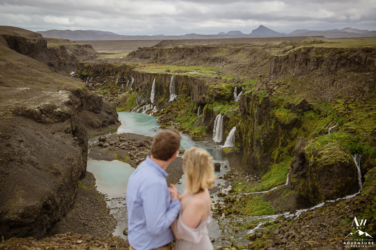 As soon as Rachel and John left last year after their August cave elopement in Iceland, they wanted to come back. Iceland is forever in their hearts. To continue their obsession for the landscape, they are both followers of our Iceland Wedding Planner Instagram account. Our team weekly goes out to scout new Iceland wedding locations (follow our Insta-Stories if you find yourself curious). One week Rachel was blown away by an area we fondly refer to as our Jurassic Park Waterfall.