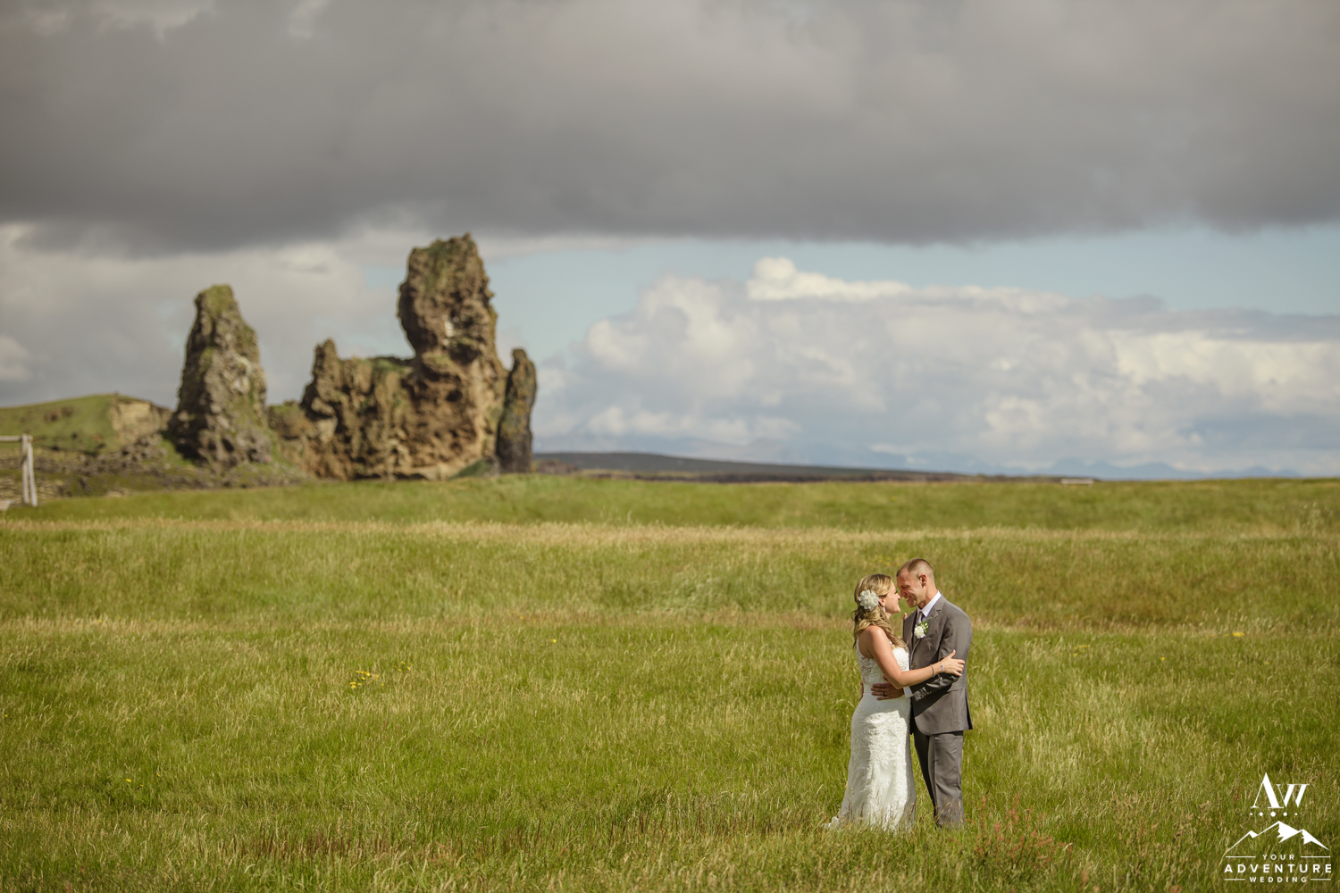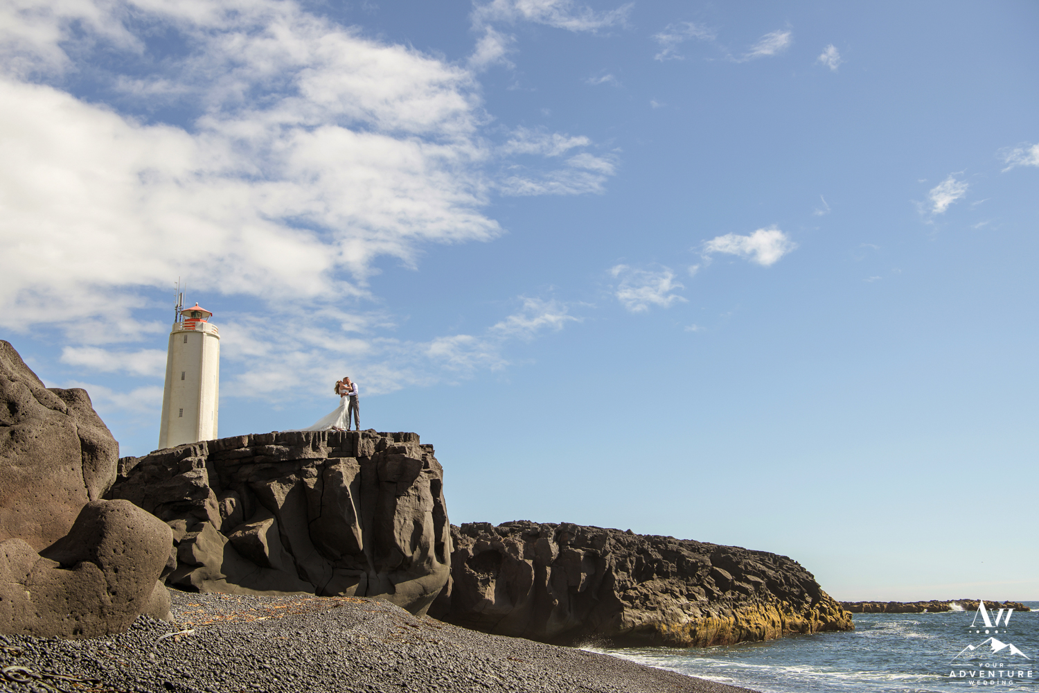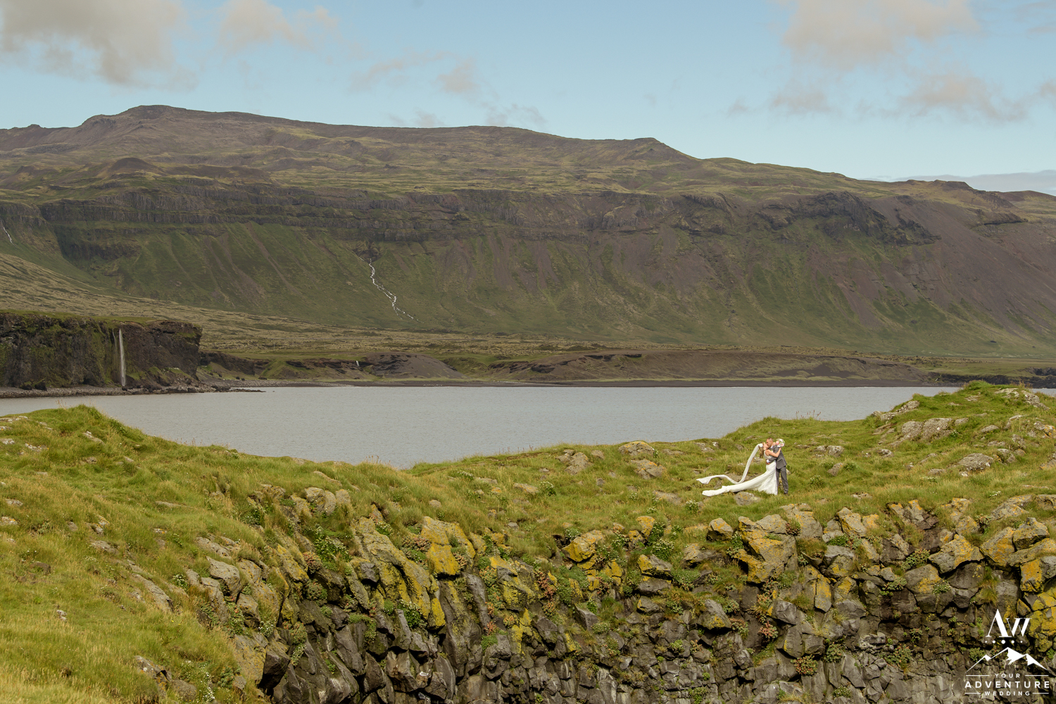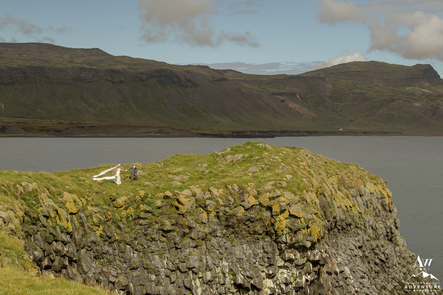 There are many lighthouses throughout the Snaefellsness Peninsula to explore. One of our personal favorites and a bit less touristy is Malarrifsviti. The area is very dramatic, with the black sand, rocks, and sea cliffs, making it an ideal backdrop for Iceland wedding photos. Nearby to this beautiful place, is the famed Londrangar Basalt Cliffs (amazing for bird watching in August)!