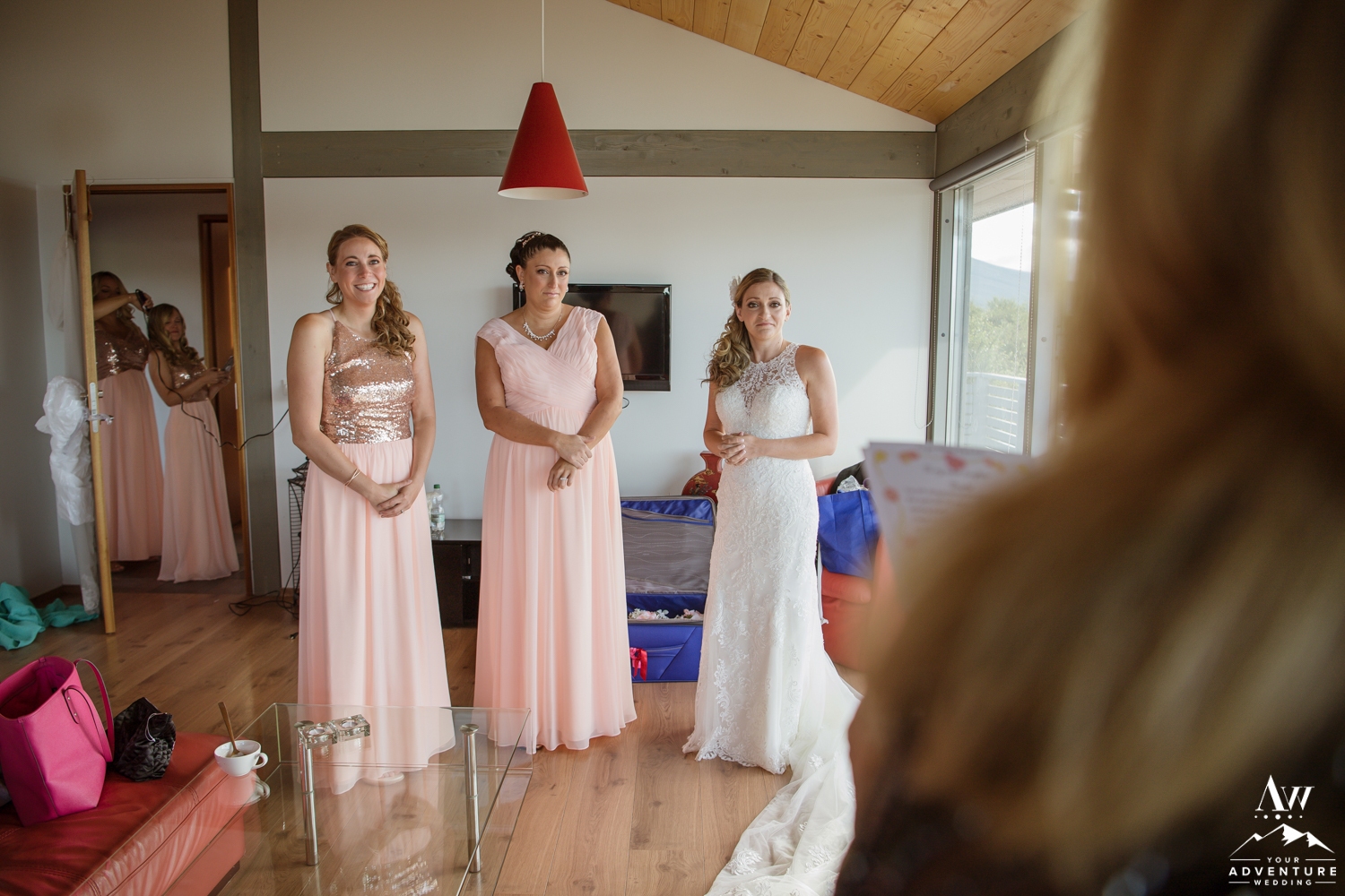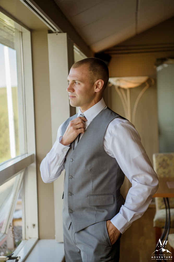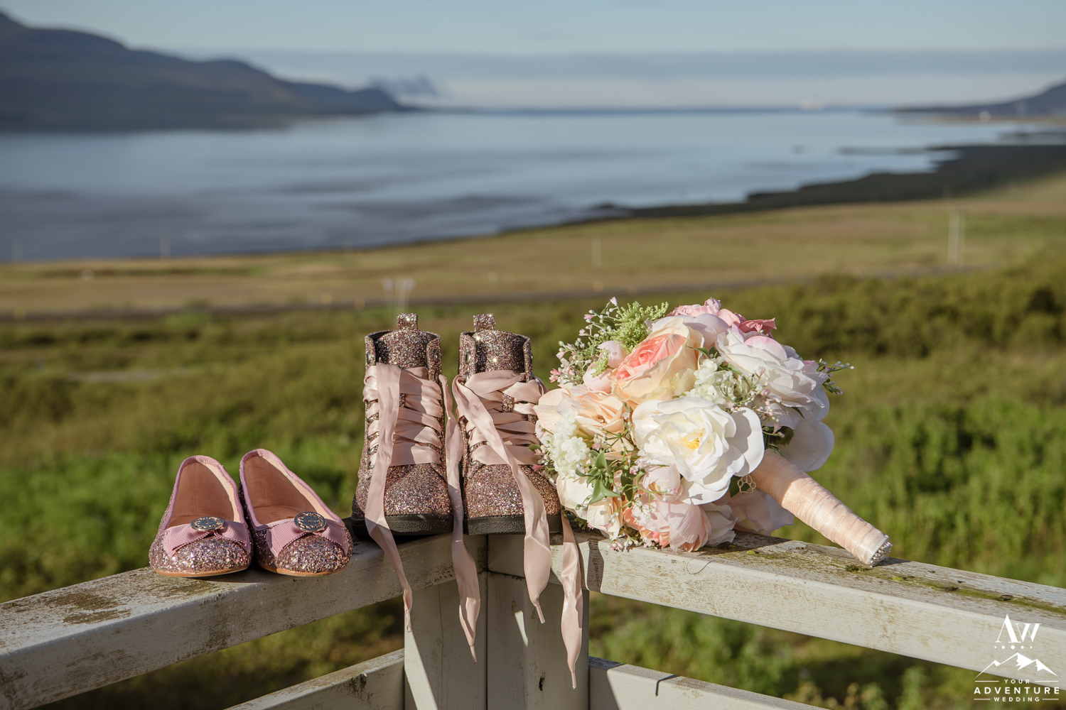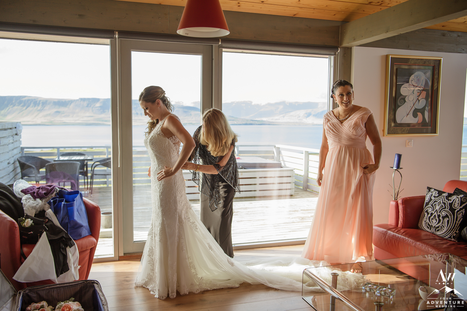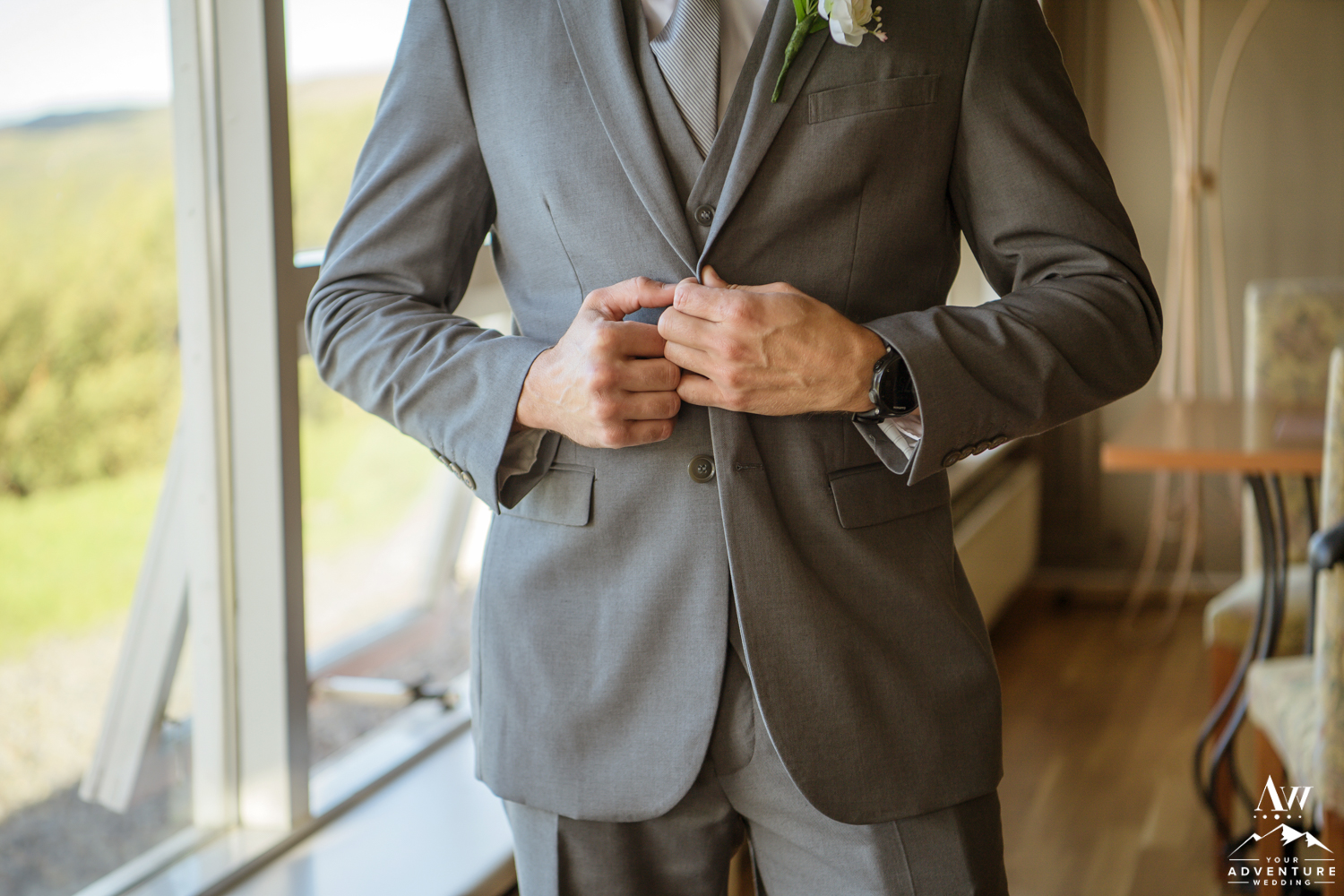 Brooke and Ricky had rented out the Villa Romance at Hotel Glymur. It offers an incredible view of the whale fjord (Hvalfjordur) and it’s own private hot tub! When you embark on a full day adventure wedding with us, it is likely you will begin your morning around 5am with our Iceland wedding hair and makeup team coming to your hotel room or villa. Our Iceland wedding photographer also arrives this early as well to ensure there is plenty of time to capture all of the amazing wedding details (like the welcome bag, wedding dress, suit, etc!)