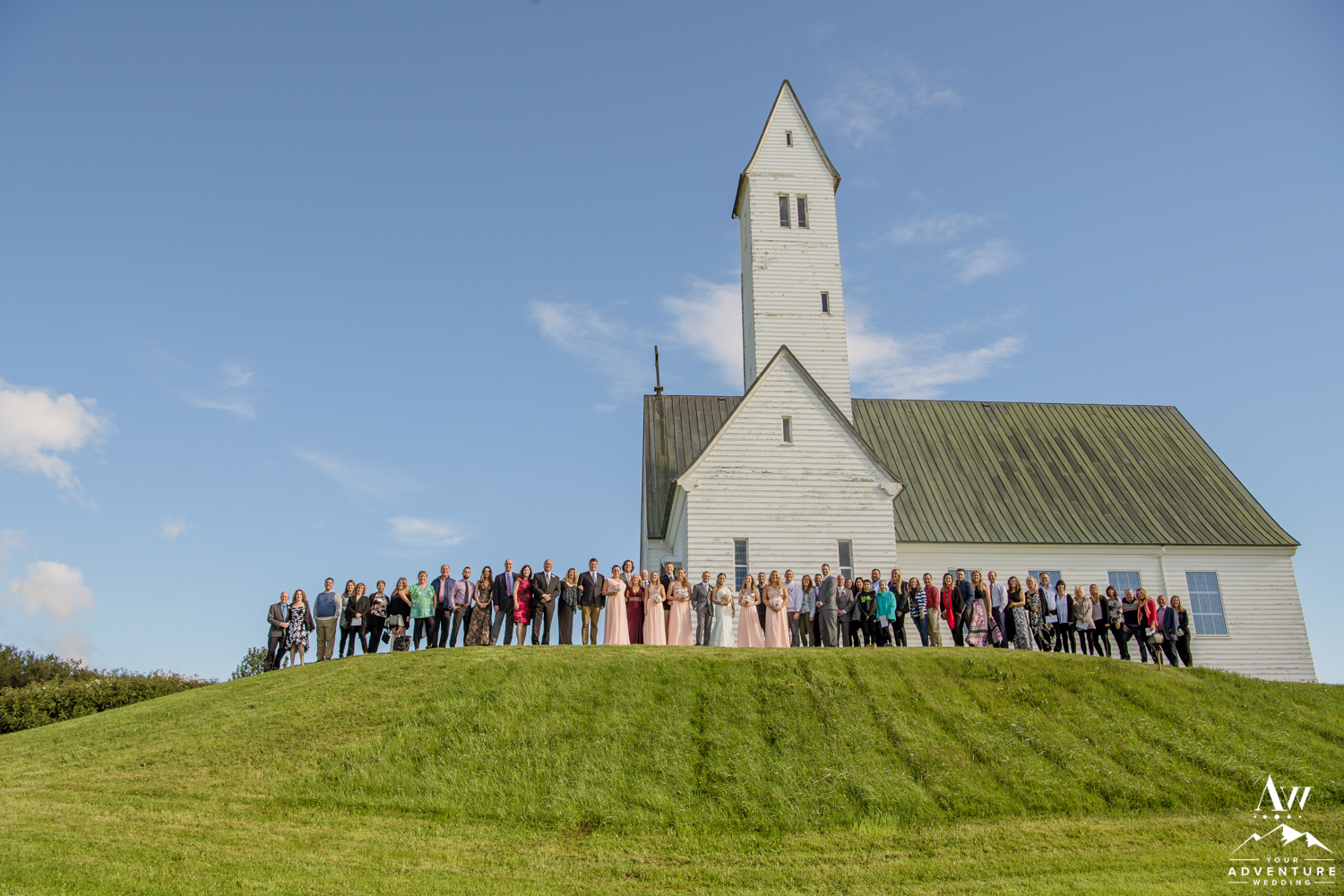 Our team does not often take on couples who wish to be married in a church. That is unless they are CRAZY AWESOME like Brooke and Ricky and will embark on an adventure day afterwards. With having so many guests varying of abilities, they wanted to ensure their ceremony was super accessible and that their guests would be dry. So to avoid any issues with challenging weather conditions (extreme wind or rain) Brooke and Ricky opted to hold their Iceland wedding ceremony at the church down the hill from Hotel Glymur. It is called Hallgrímskirkja Saurbæ.