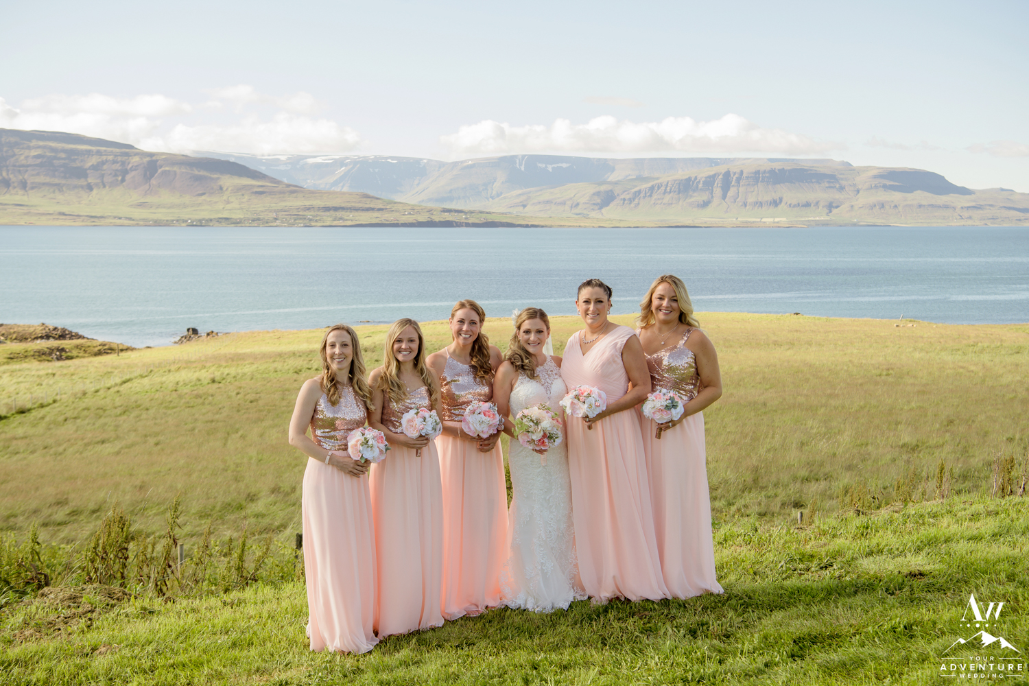 The ceremony concluded and the Iceland Wedding at Hotel Glymur photographer, decided it would be best to get out of the church and into the glorious sunshine that was happening that gorgeous August morning! Hvalfjörður makes a gorgeous backdrop for Iceland wedding photos.