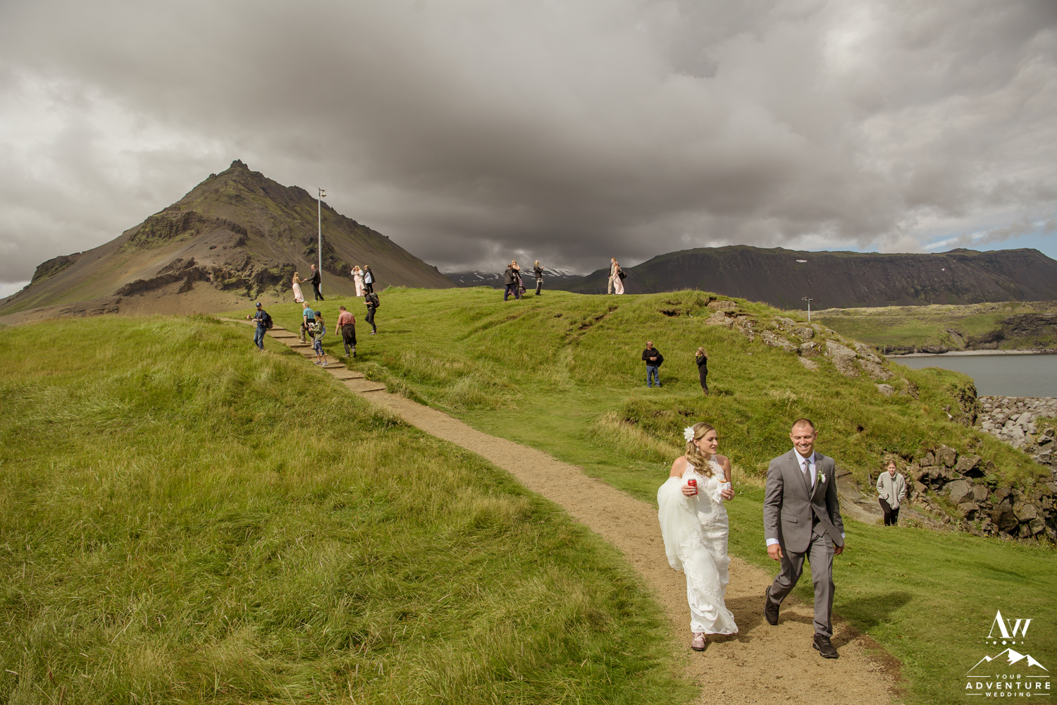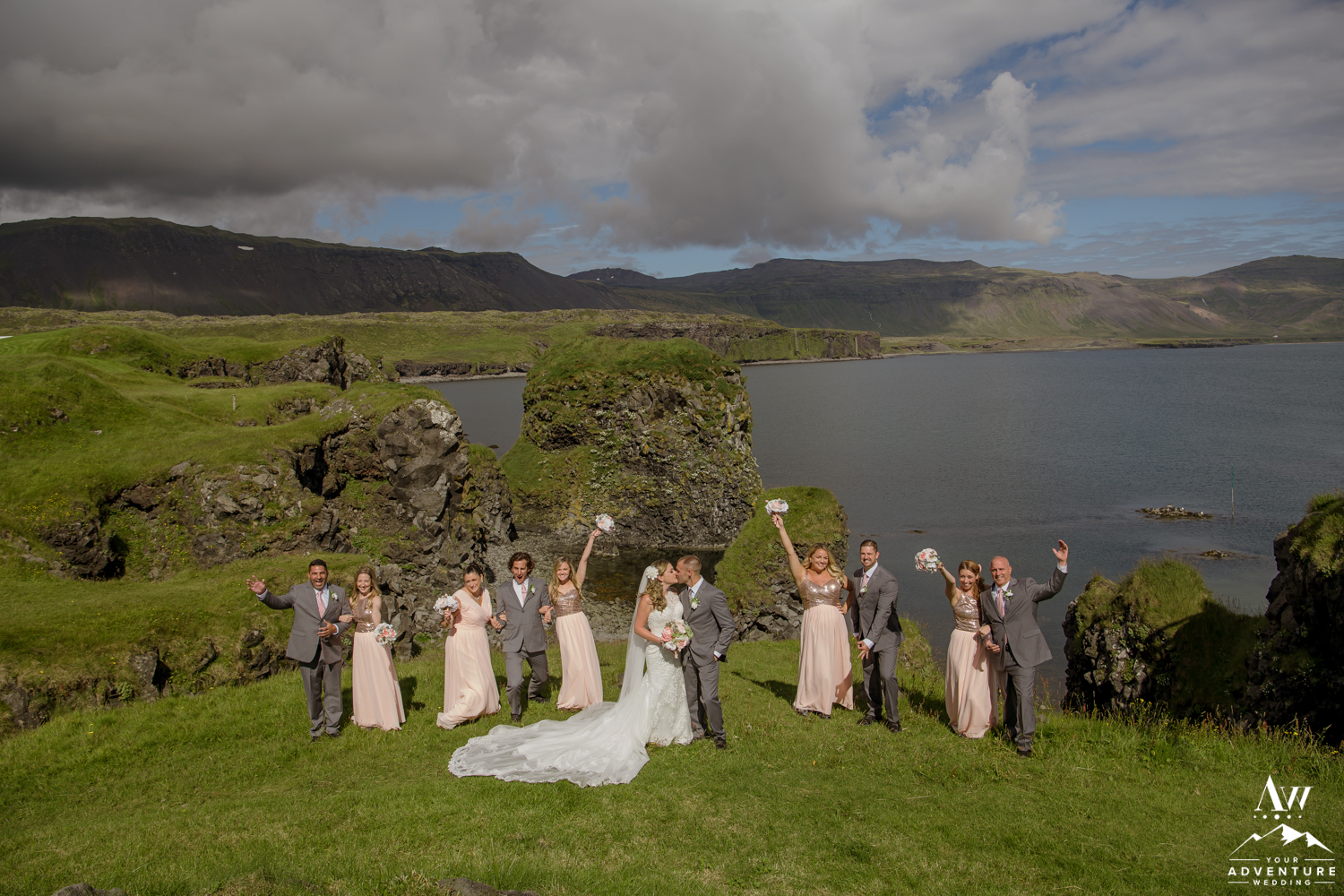 Our Iceland Wedding Planner team does not typically do wedding adventures in tourist locations either, but we make exceptions if a couple has a strong desire to bring their group to explore it. Arnarstapi is found in the lovely Snaefellsness Peninsula. It’s a natural reserve area that boasts history and endless beauty. This was also the location where our team crafted a traditional hot dog bbq lunch for their group to delight in!