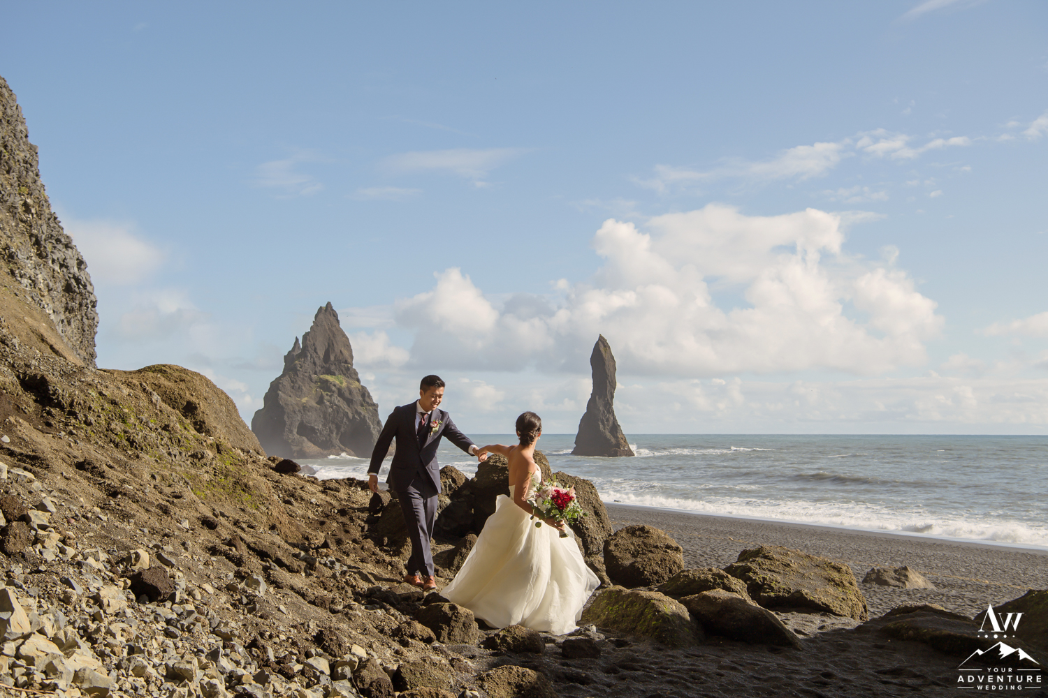 If you want to have wedding photos on the famed black sand beach of Reynisfjara, we encourage you to be safe and check tide times before venturing there. This is one of the most dangerous beaches in the world. Reynisfjara is another heavily populated tourist location, but again, Lily and Ray were inspired to share the Iceland wedding location with their guests. After all, the tones and textures of this magical place are really special!