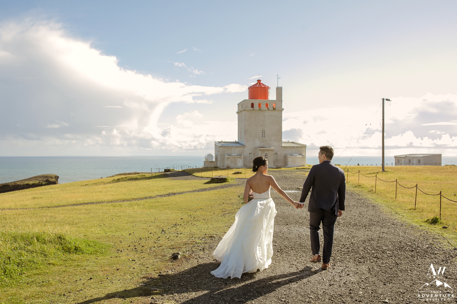 Heading to the top of Dyrholaey to see the lighthouse is a fun and seeing the sea arch from the “public” side is charming. Note: When doing a luxury wedding Iceland super jeep wedding, our team has access to the private beach side.