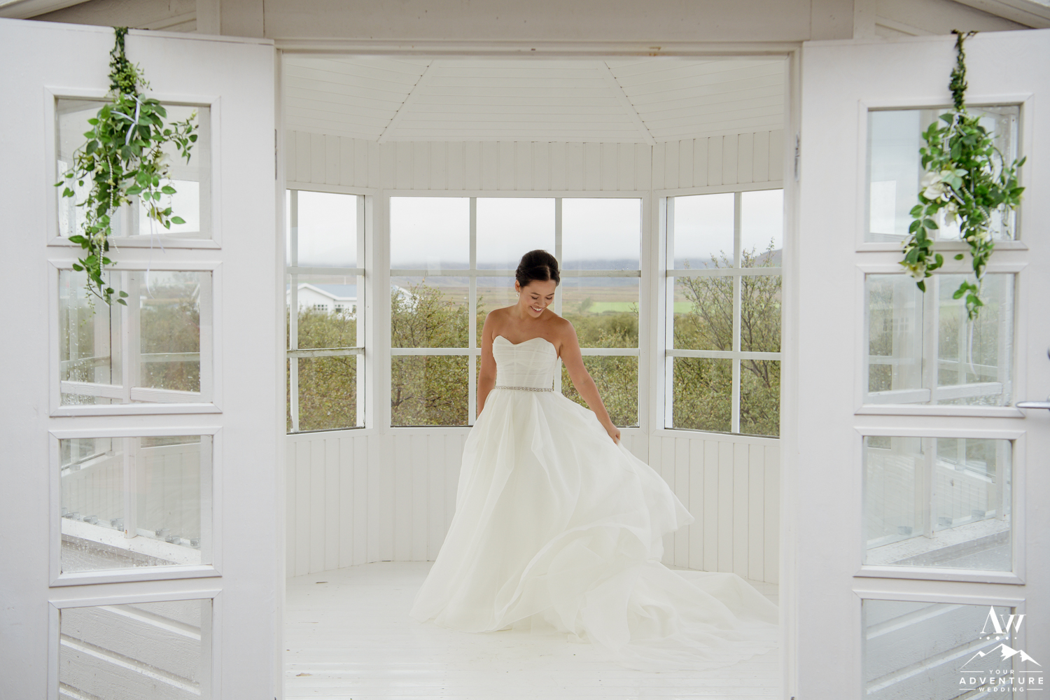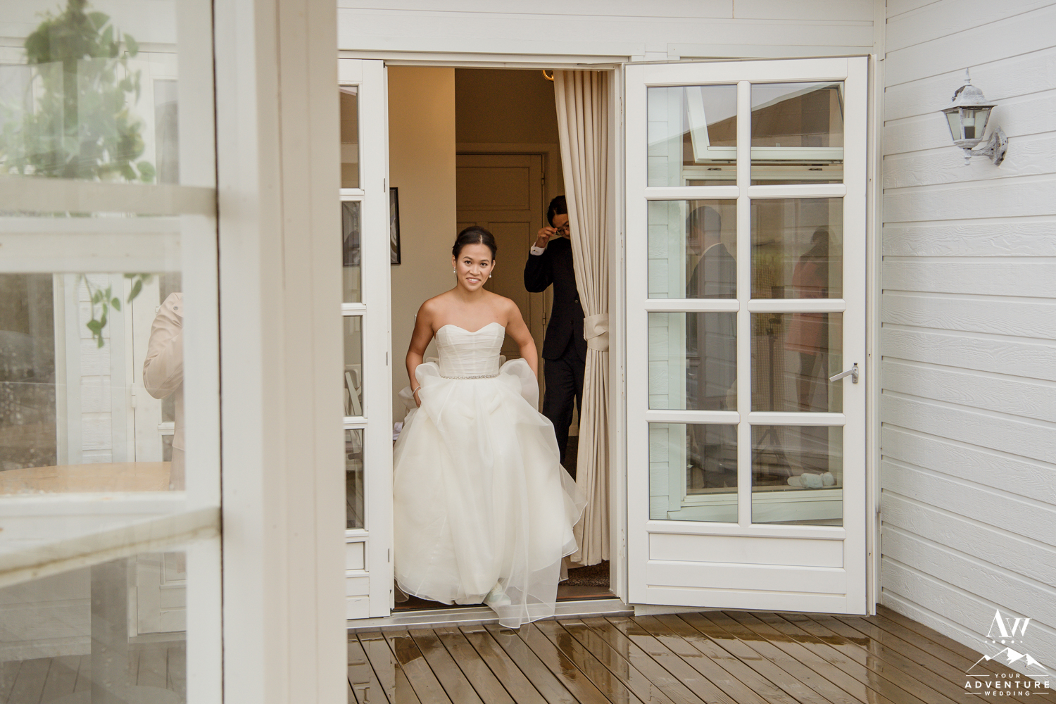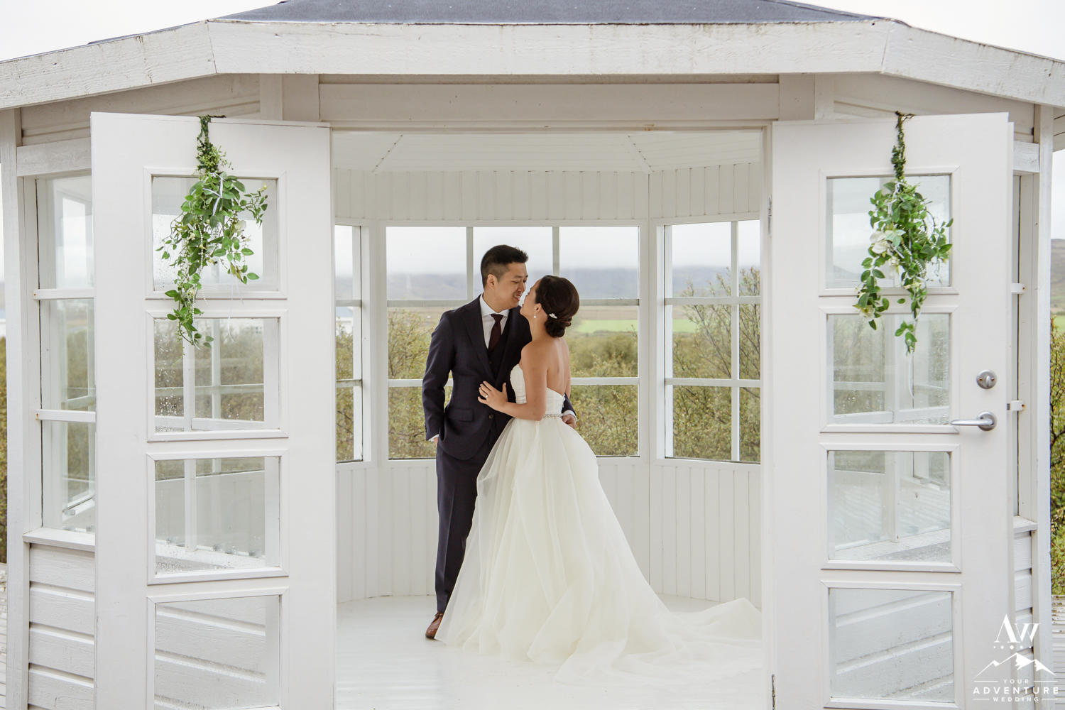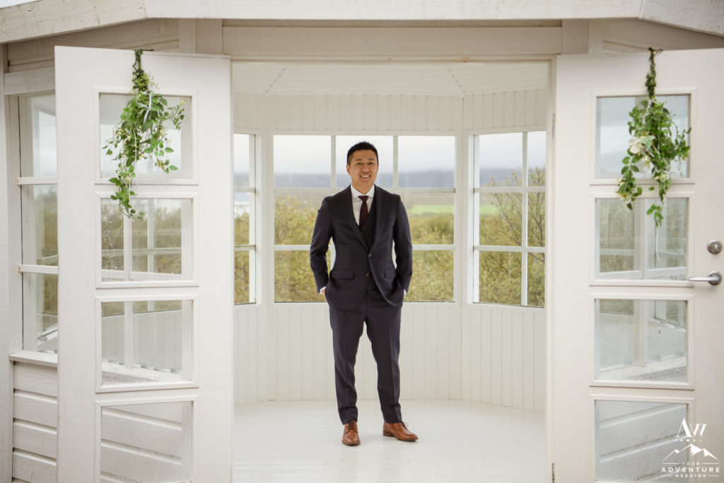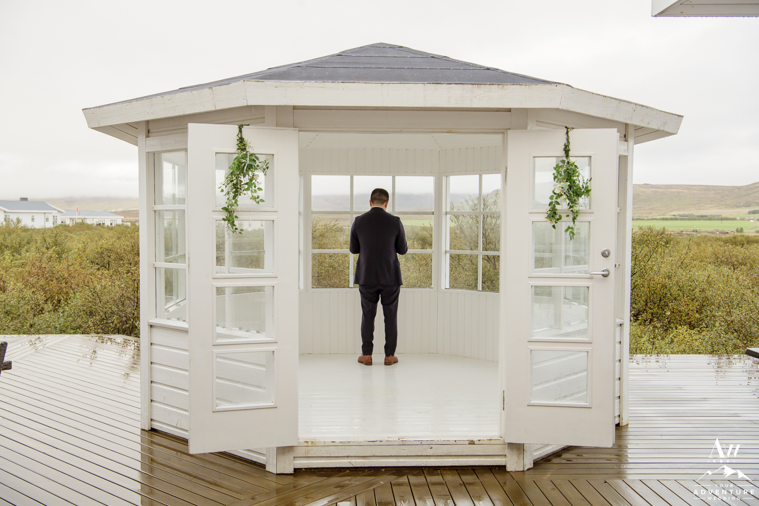 From super thoughtful wedding welcome bags to Lily having 2 stunning Iceland wedding dresses, Badgley Mischkas tennis shoes, and then Ray’s super handsome details too! By renting out the house with the gazebo, you have so many amazing photo opportunities and after party options 😉 In fact, we did Ray and Lily’s “first look” in it and it was such a private and special moment before they began their adventurous luxury wedding Iceland!