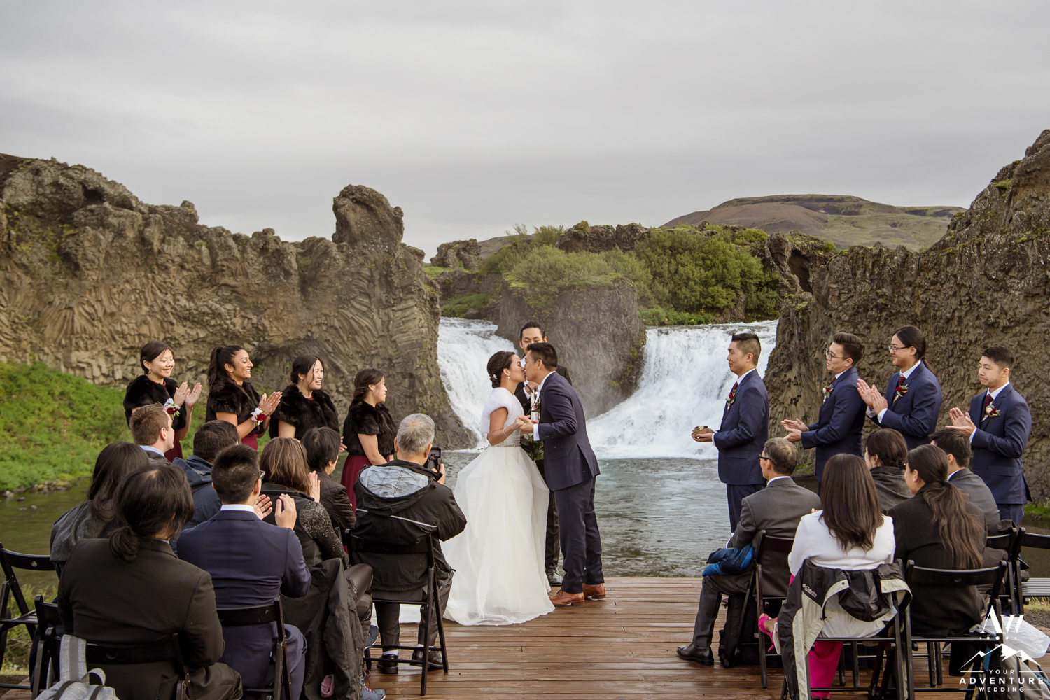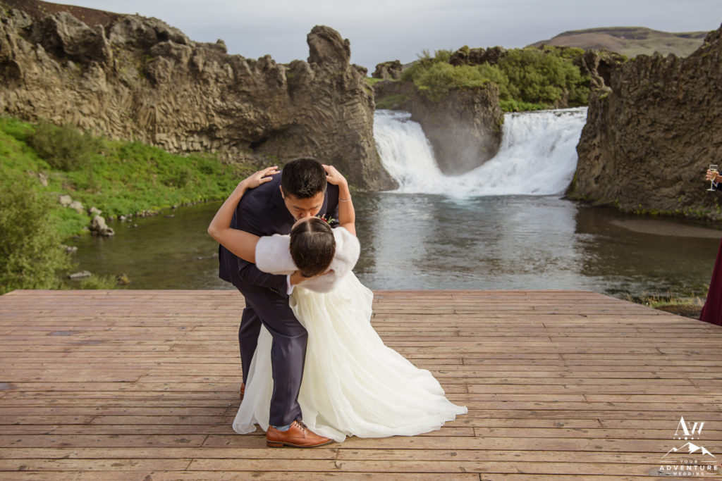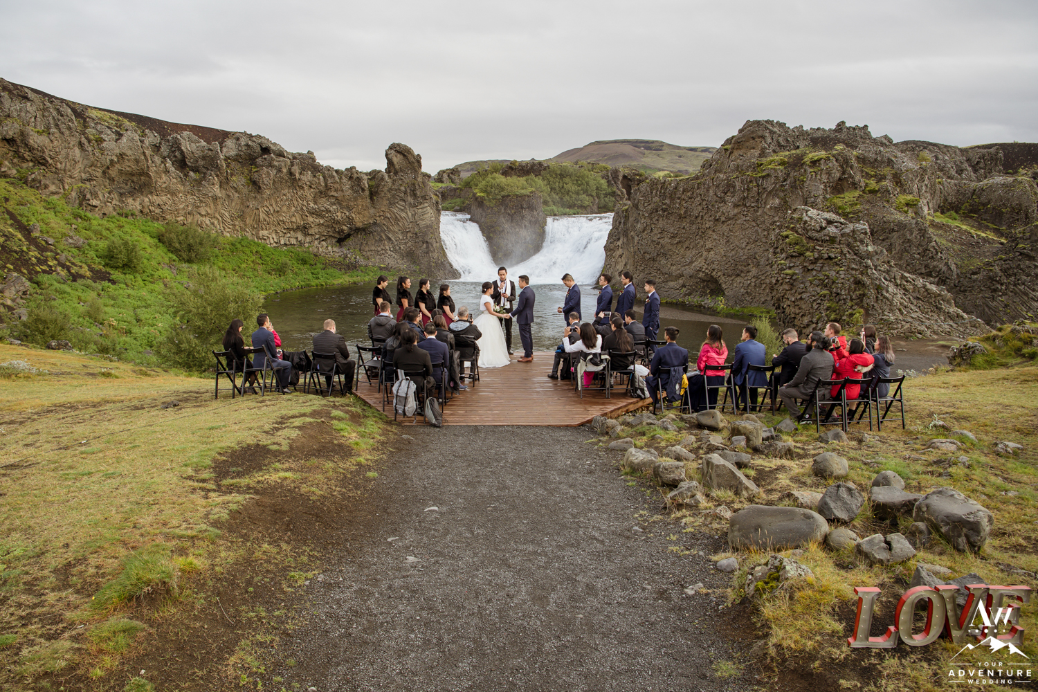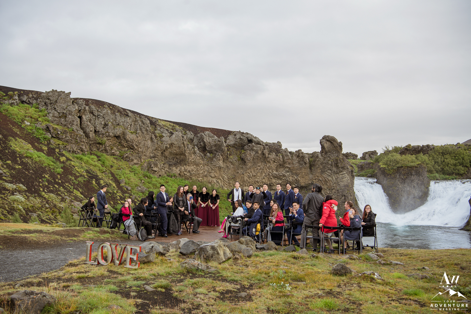 What adventure wedding would be complete without having a traditional hot dog BBQ for lunch and hiking?! None! Our team was onsite upon arrival of Ray and Lily’s Iceland wedding group, with special permission to hold a hot dog BBQ at a hidden waterfall. The guests thoroughly enjoyed the traditional luxury wedding Iceland experience! Afterwards, the group embarked on a short 15 minute hike to a hidden canyon waterfall as part of the adventurous wedding day agenda.