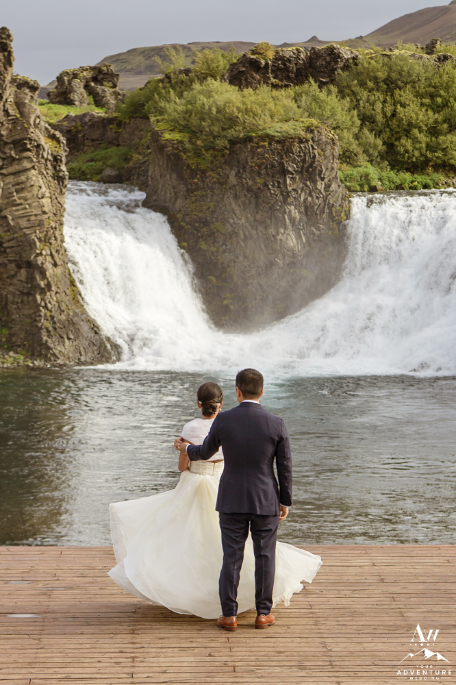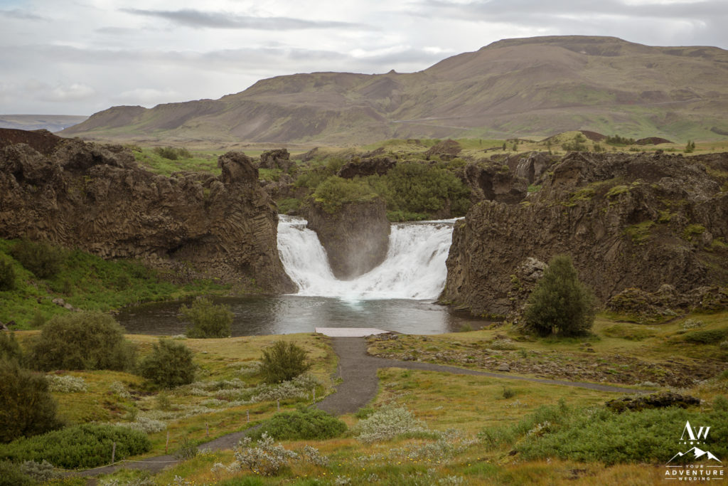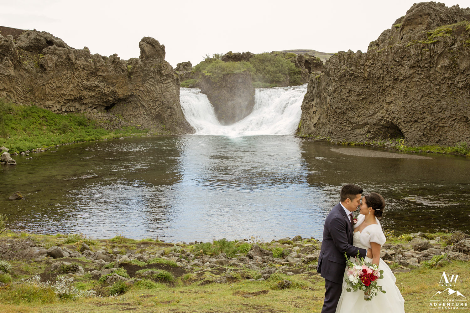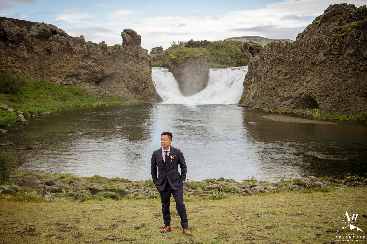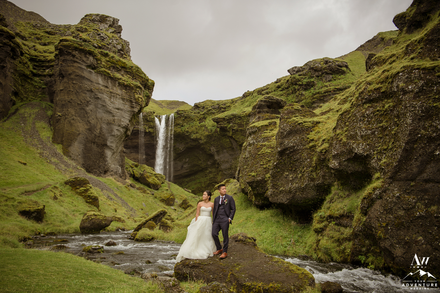 What adventure wedding would be complete without having a traditional hot dog BBQ for lunch and hiking?! None! Our team was onsite upon arrival of Ray and Lily’s Iceland wedding group, with special permission to hold a hot dog BBQ at a hidden waterfall. The guests thoroughly enjoyed the traditional luxury wedding Iceland experience! Afterwards, the group embarked on a short 15 minute hike to a hidden canyon waterfall as part of the adventurous wedding day agenda.