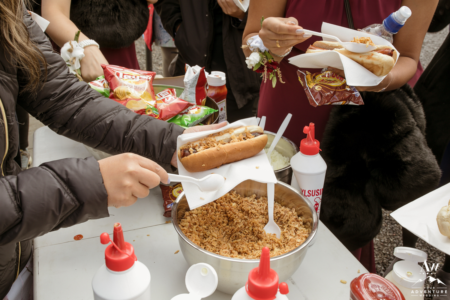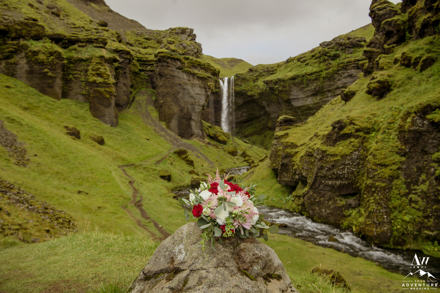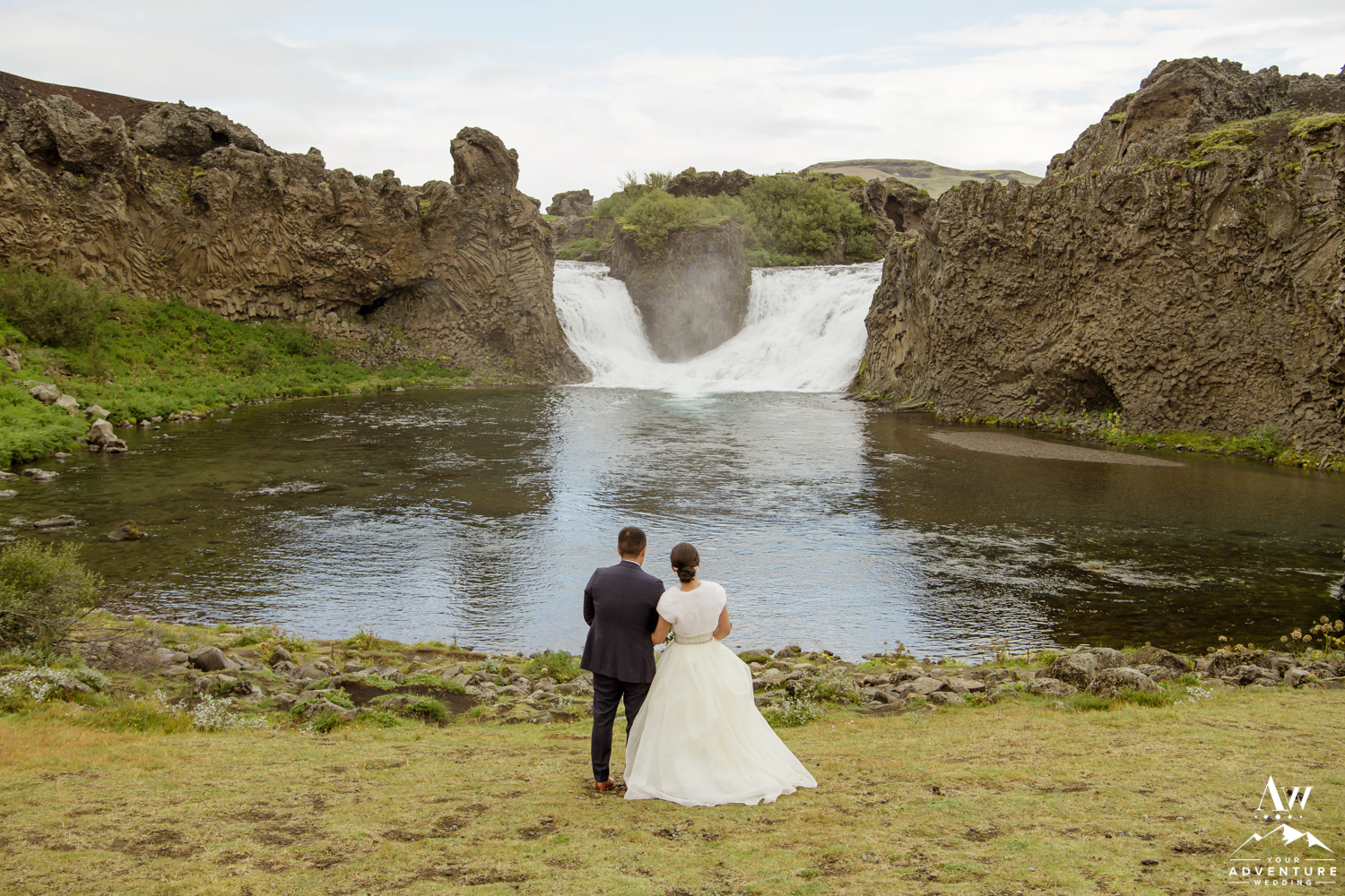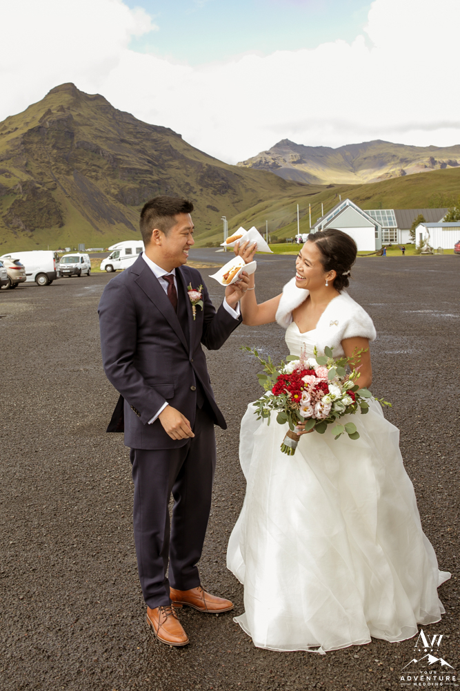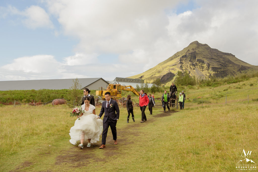 What adventure wedding would be complete without having a traditional hot dog BBQ for lunch and hiking?! None! Our team was onsite upon arrival of Ray and Lily’s Iceland wedding group, with special permission to hold a hot dog BBQ at a hidden waterfall. The guests thoroughly enjoyed the traditional luxury wedding Iceland experience! Afterwards, the group embarked on a short 15 minute hike to a hidden canyon waterfall as part of the adventurous wedding day agenda.